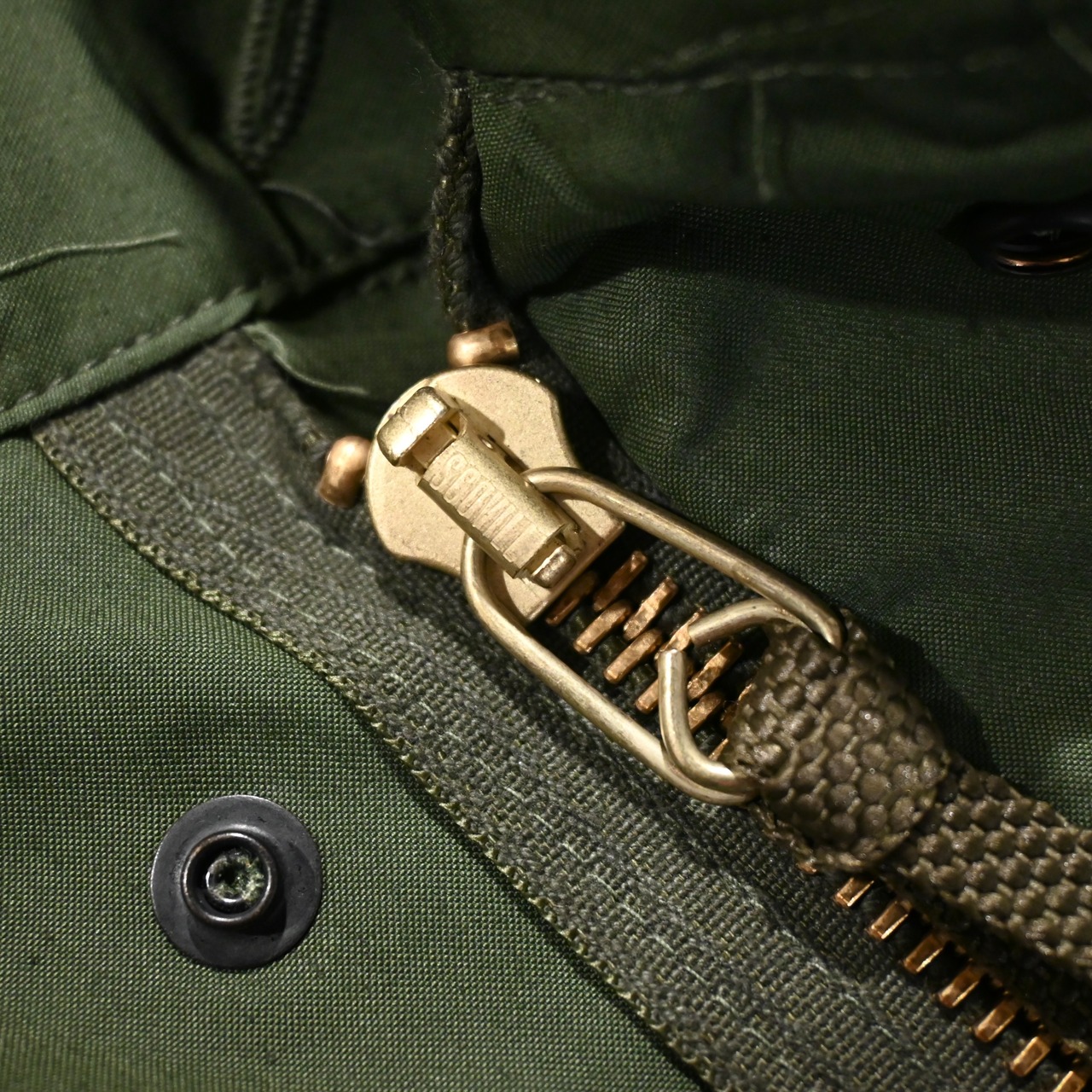 年々球数の減っているM65フィッシュテールの中でもお探しの方が多いSサイズの保管状態の良いデッドストックです。フロントはブラスジップが使用されています。