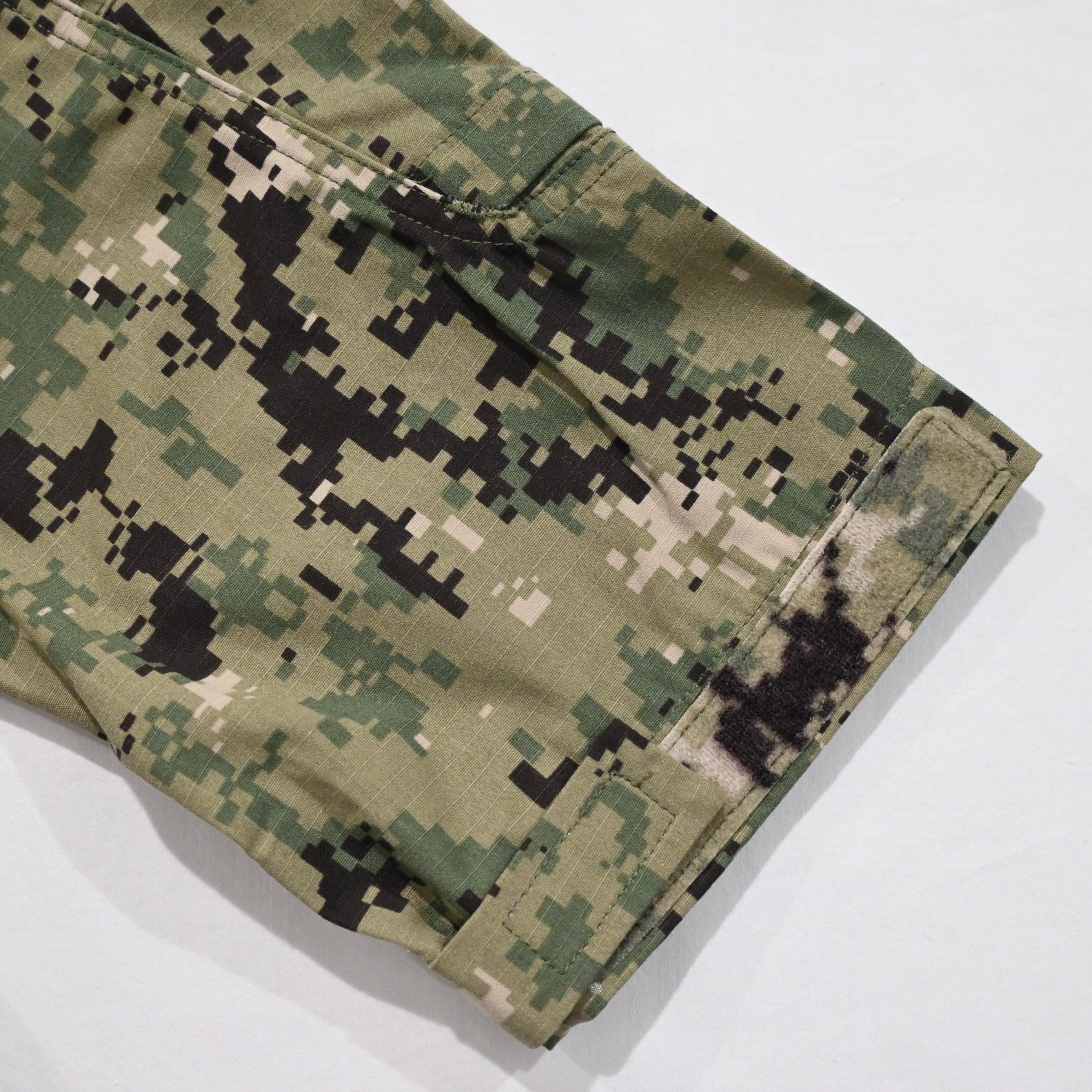 デジタルカモと、斜めに配置されたポケットが特徴的なアイテムです。デザイン性の高さだけでなく、モダンミリタリーならではの機能面の高さも魅力的です。