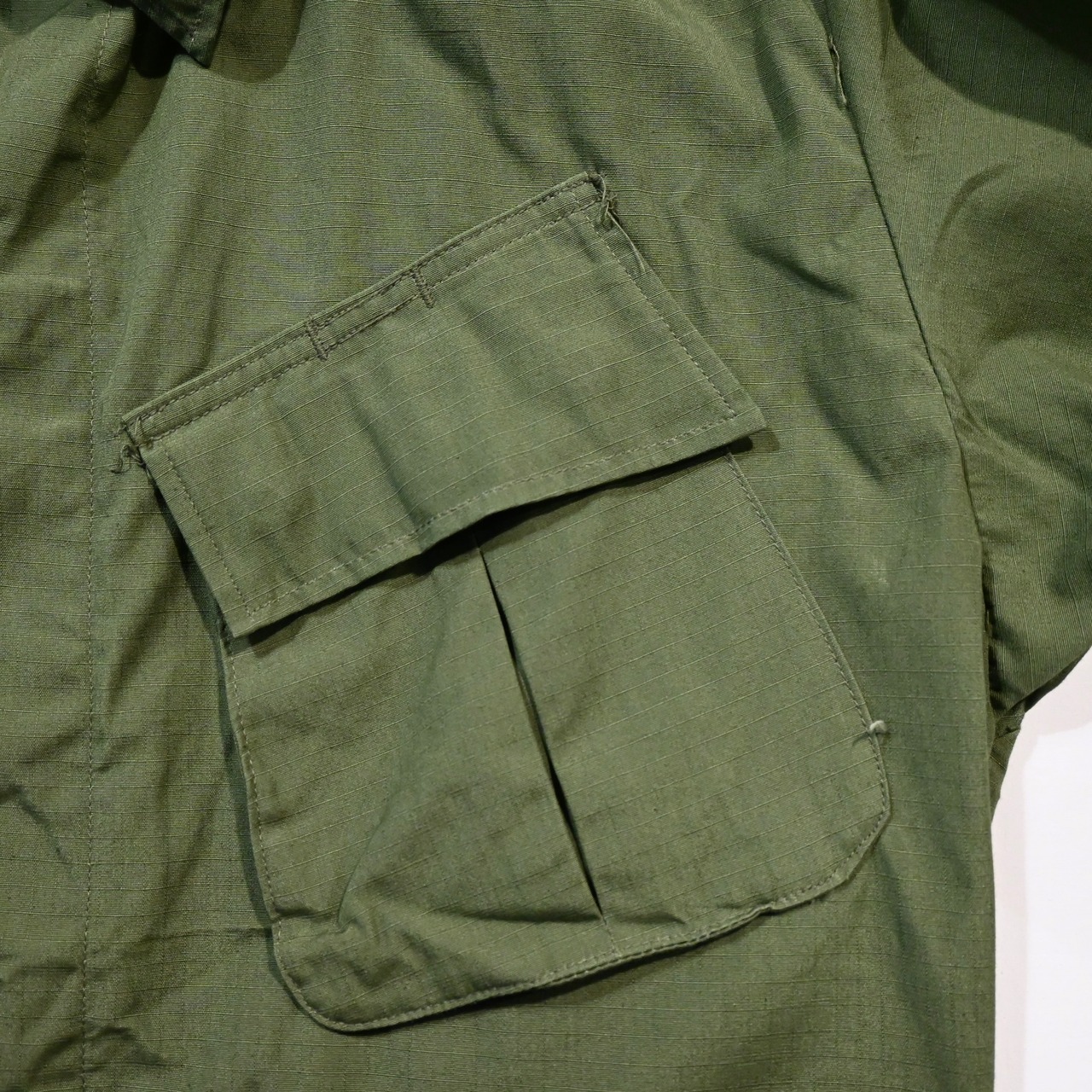 ミリタリーアイテムの中でも人気の高いジャングルファティーグのデッドストックです。袖にはVガゼットのつくタイプです。