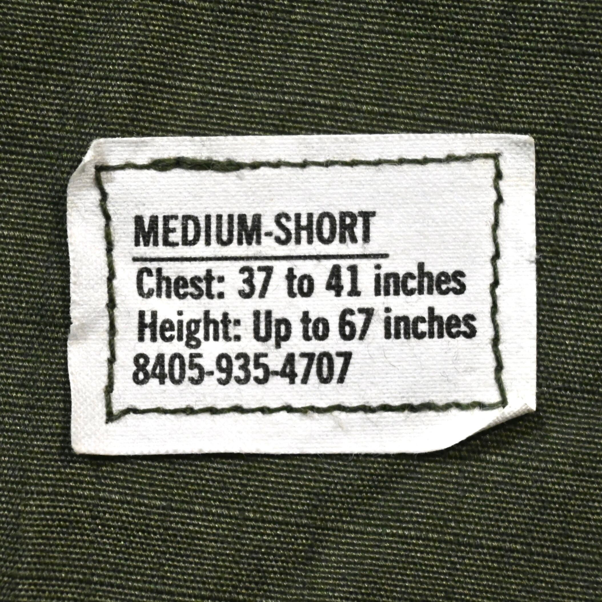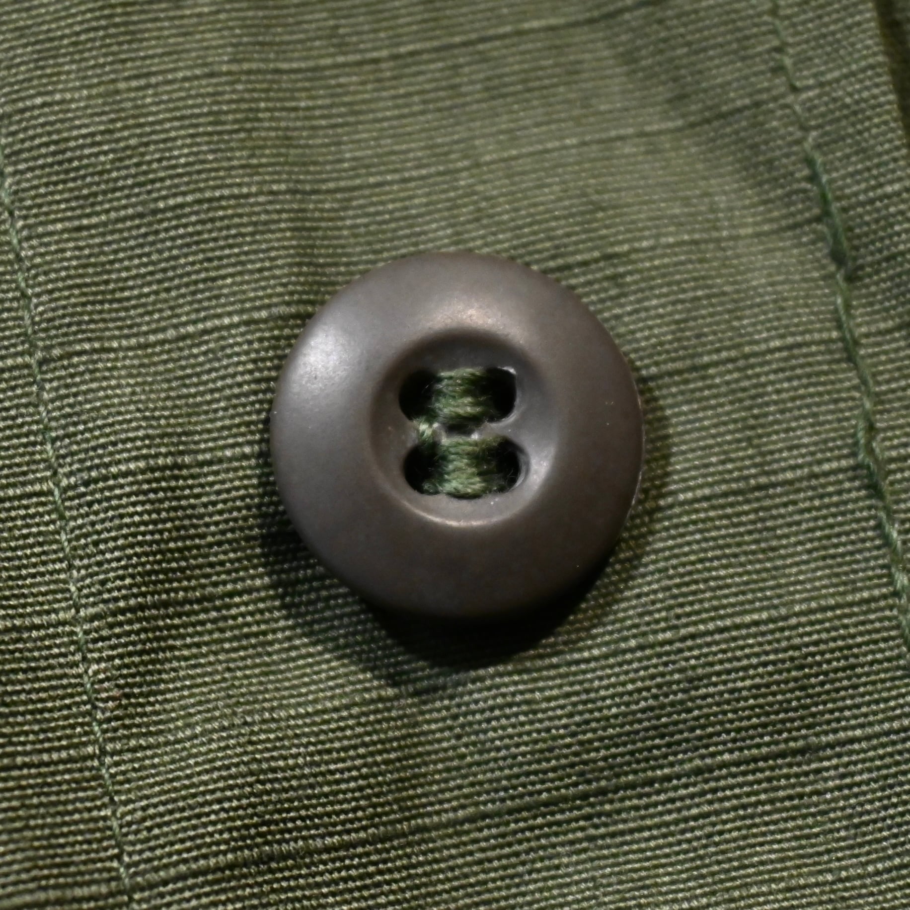 ミリタリーアイテムの中でも人気の高いジャングルファティーグの希少なショートサイズのデッドストックです。袖にはVガゼットのつくタイプです。