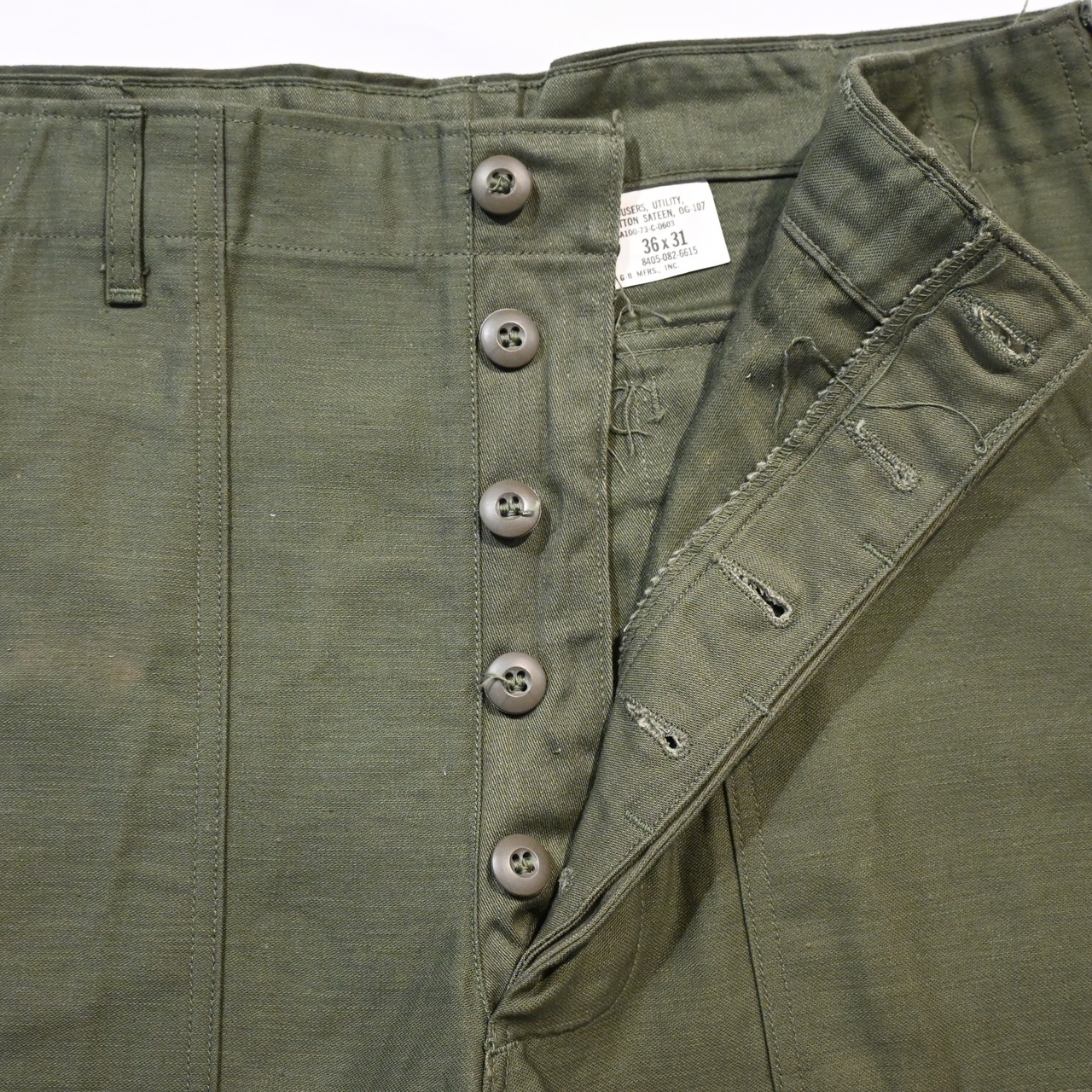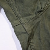 フロントはボタンフライのタイプで、BDUの艶なしボタンが使用されています。フロントポケットはダブルステッチです。