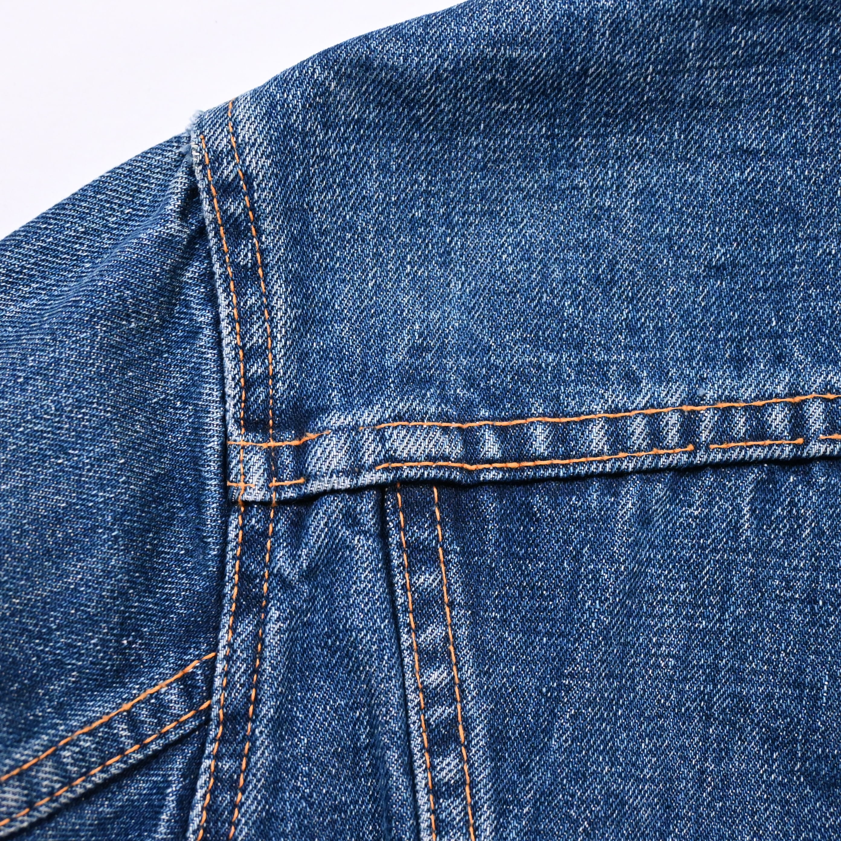 紙パッチもしっかりと残っており、オレンジのステッチとインディゴの色のバランスが魅力的なアイテムです。