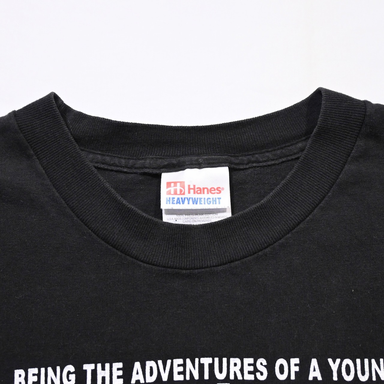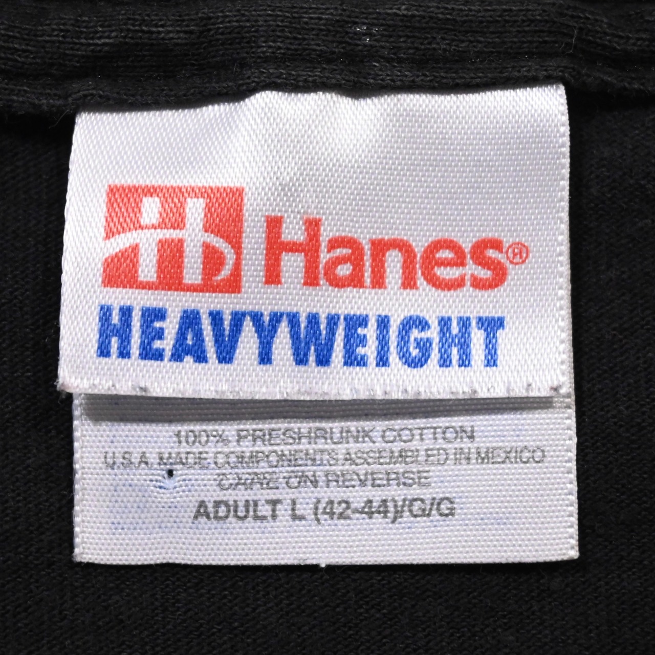 ヘインズのヘビーウェイトのボディで、しっかりとした生地感と身幅は広めです。