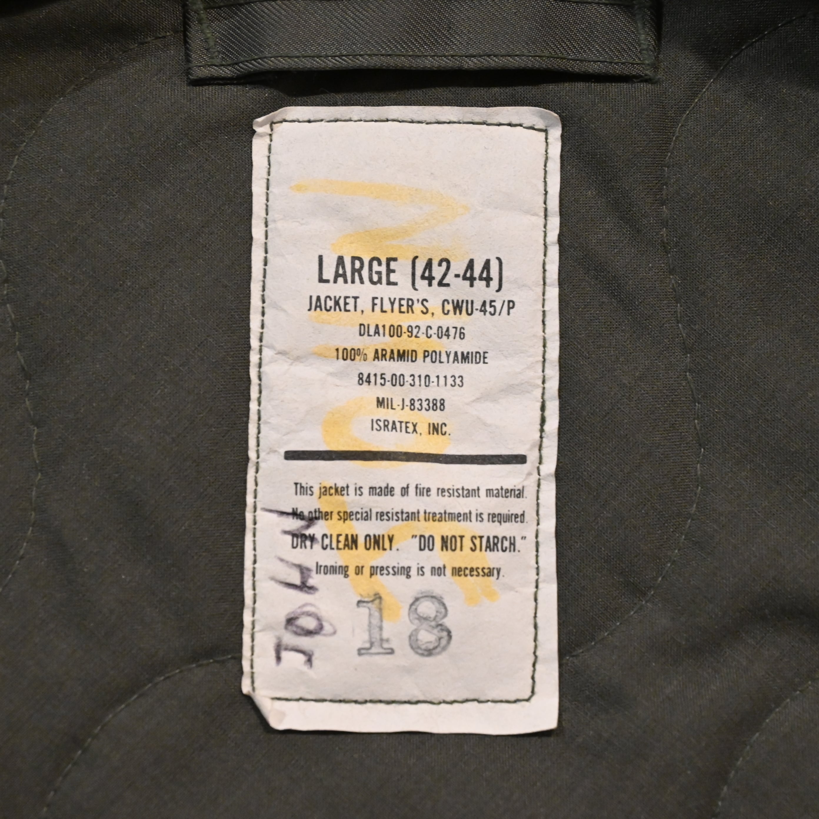 70年代後半から採用されているアメリカ軍のフライトジャケットです。使用感もなく、縮みも少ないミントコンディションです。