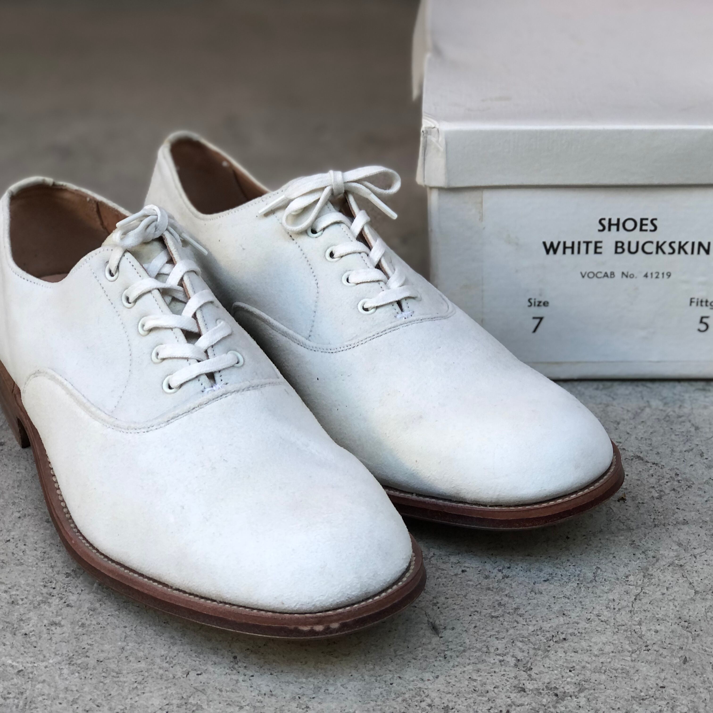 70's Dead stock White buckskin shoes by Sanders イギリス軍 ロイヤルネイビー オフィサーシューズ サンダース