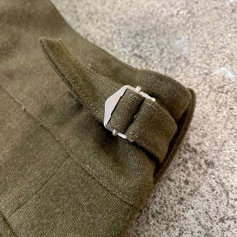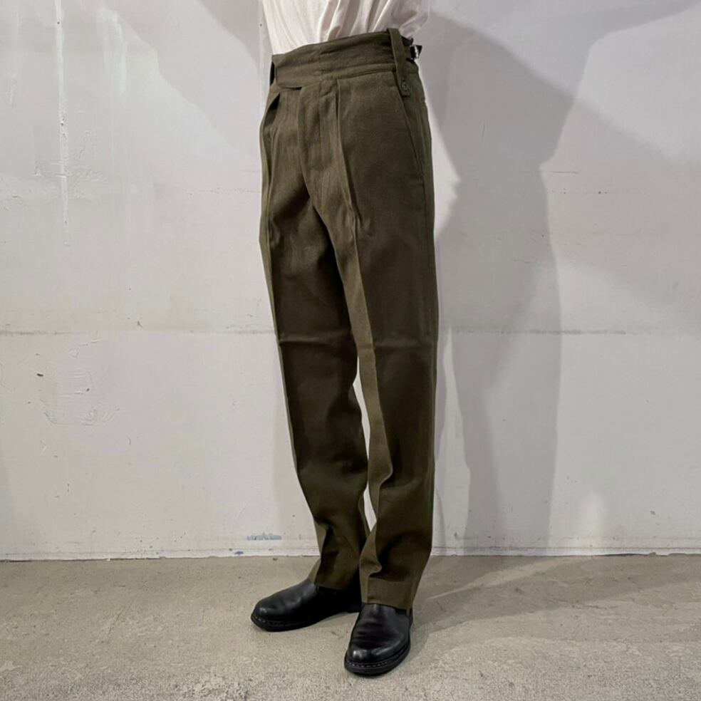 イギリス軍の準礼服と呼ばれるドレスパンツです。ワンタックでセンタープレスが入っており、無駄を省いたデザインと綺麗なテーパードのシルエットは秀逸です。
