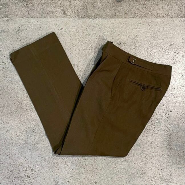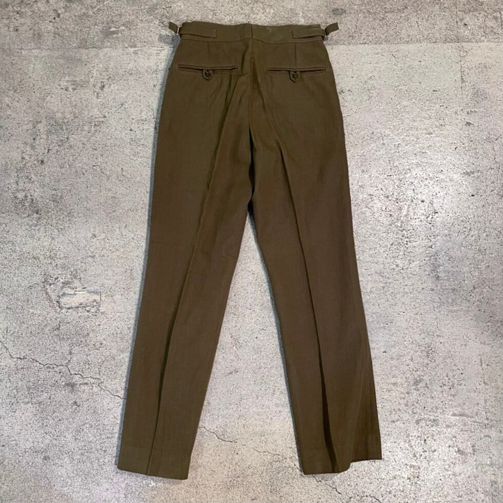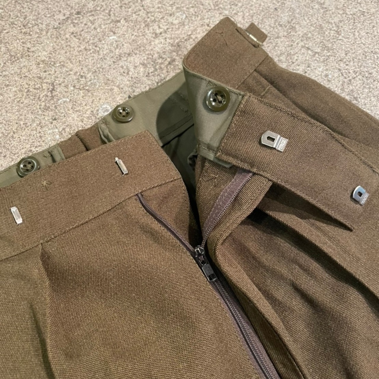 イギリス軍の準礼服と呼ばれるドレスパンツです。ワンタックでセンタープレスが入っており、無駄を省いたデザインと綺麗なテーパードのシルエットは秀逸です。