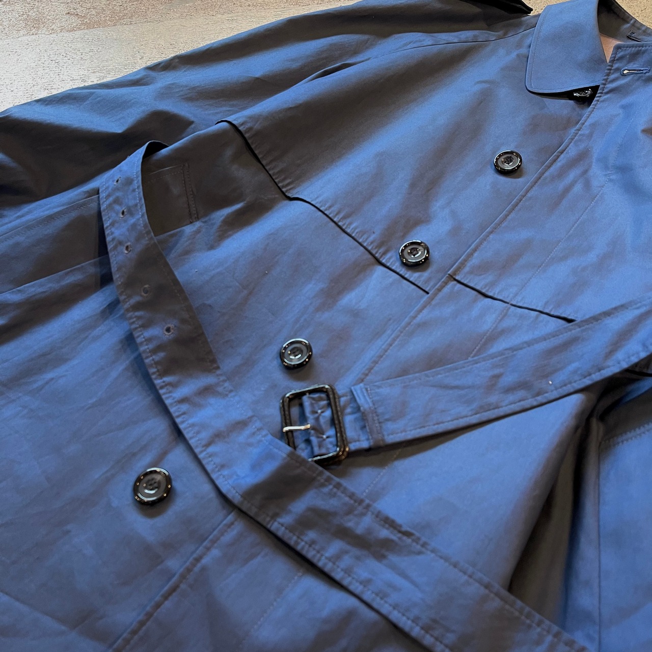 発色の良いブルーとトレンチコートの男らしさのあるディティールとのバランスが秀逸です。