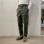 ミリタリーアイテムの中で人気の高いM47パンツの後継モデルと言われているパンツです。カラーは光沢感のあるオリーブでテーパードがかかったシルエットです。