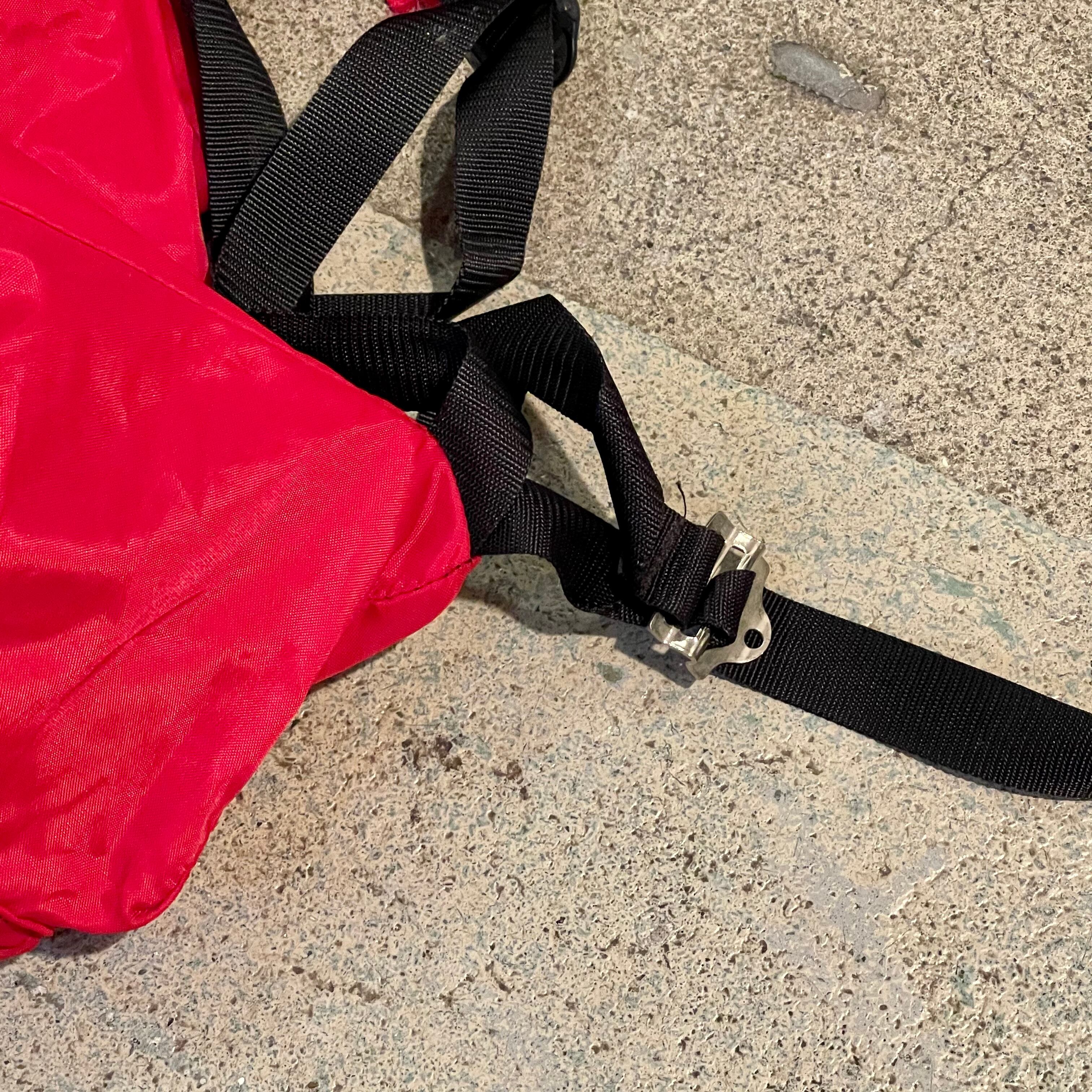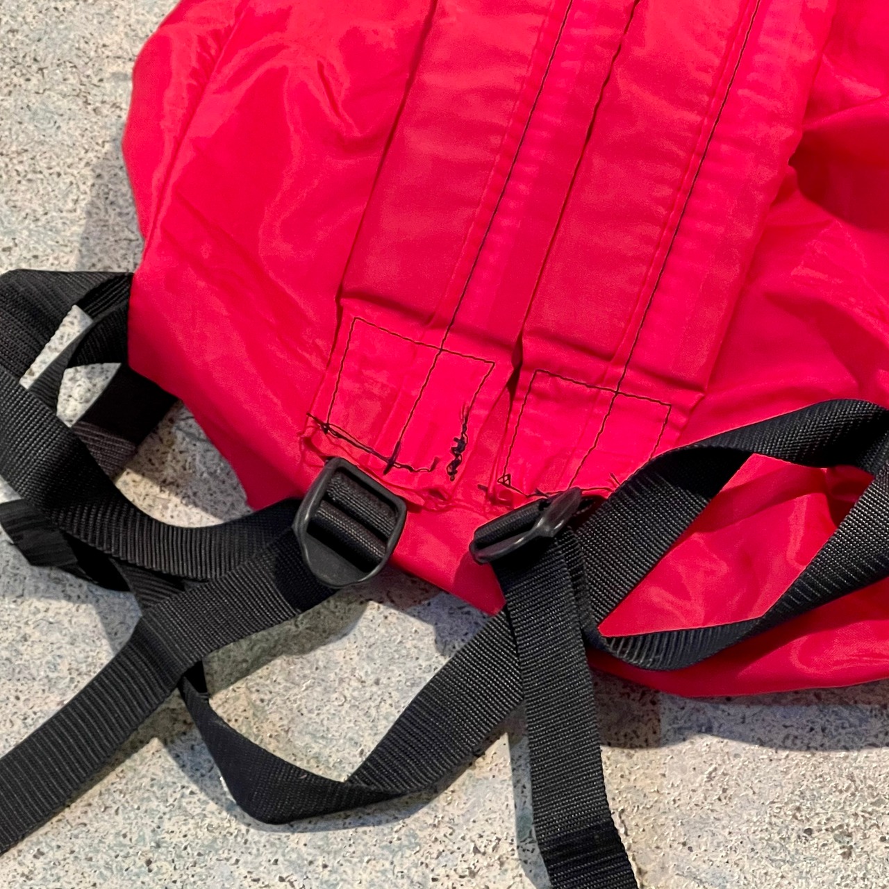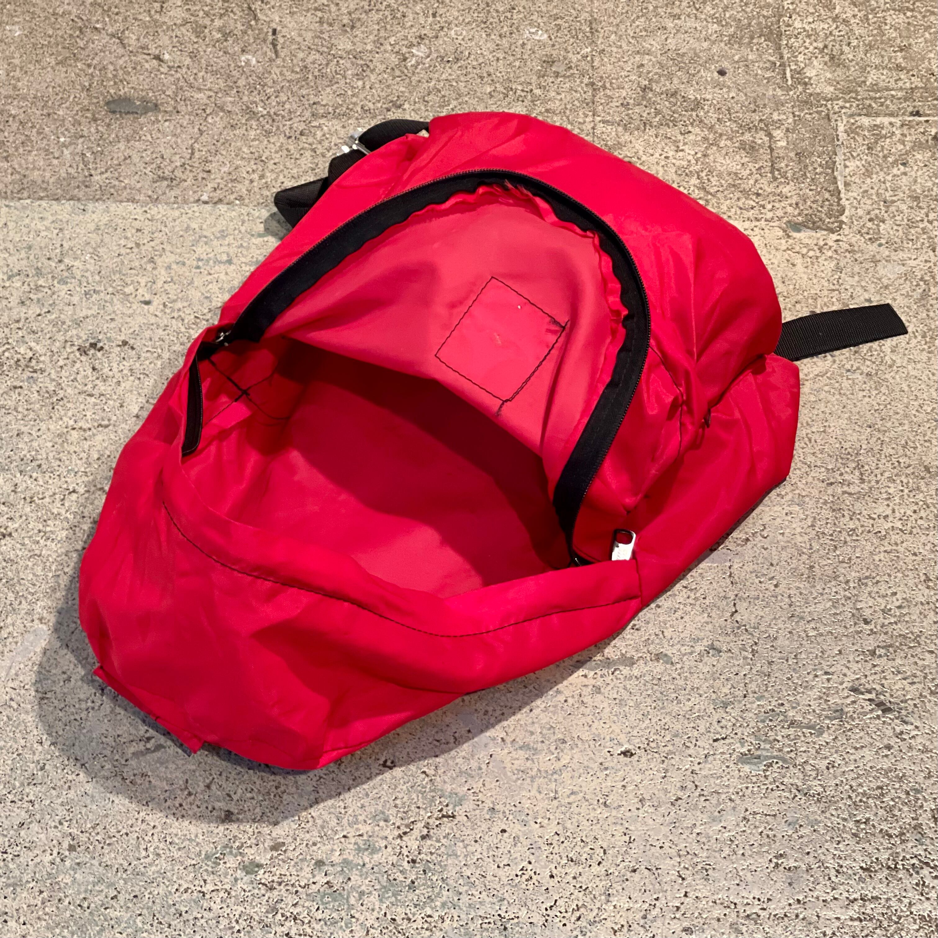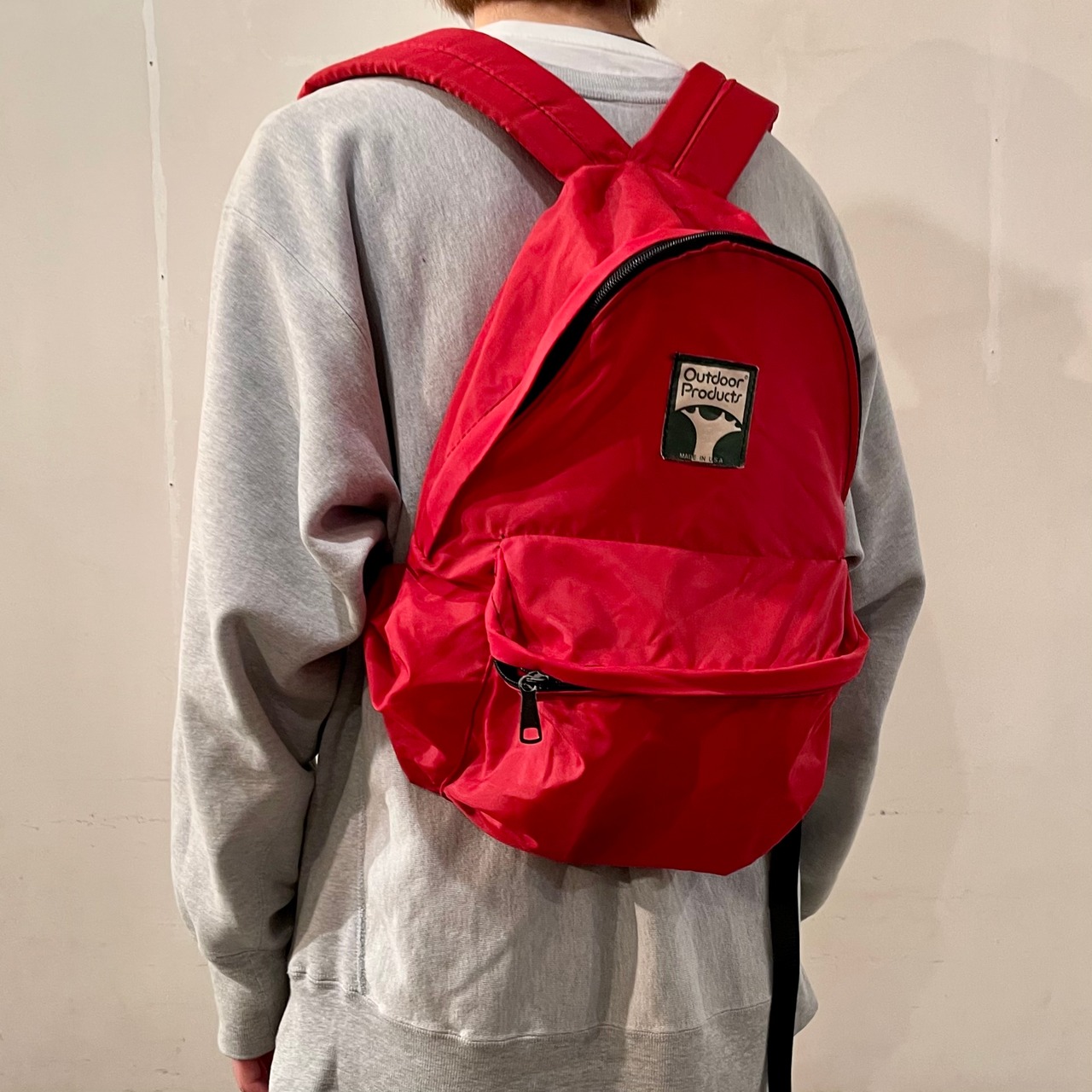 年代物のバックパックの中では珍しい小ぶりのタイプで、カラーは発色のいい赤色です。