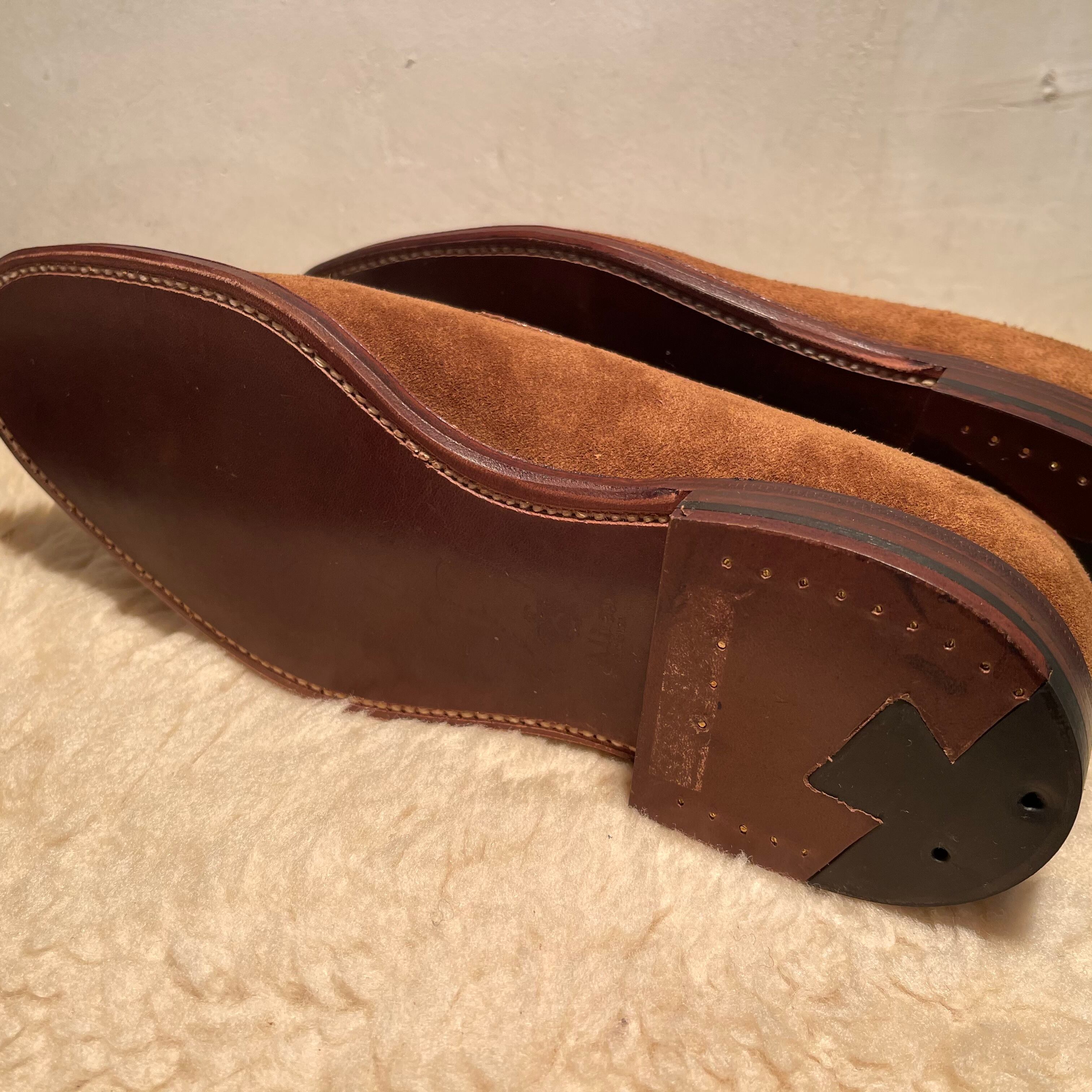 オールデンのプレーントゥローファーで、ラストはプラザラストです。