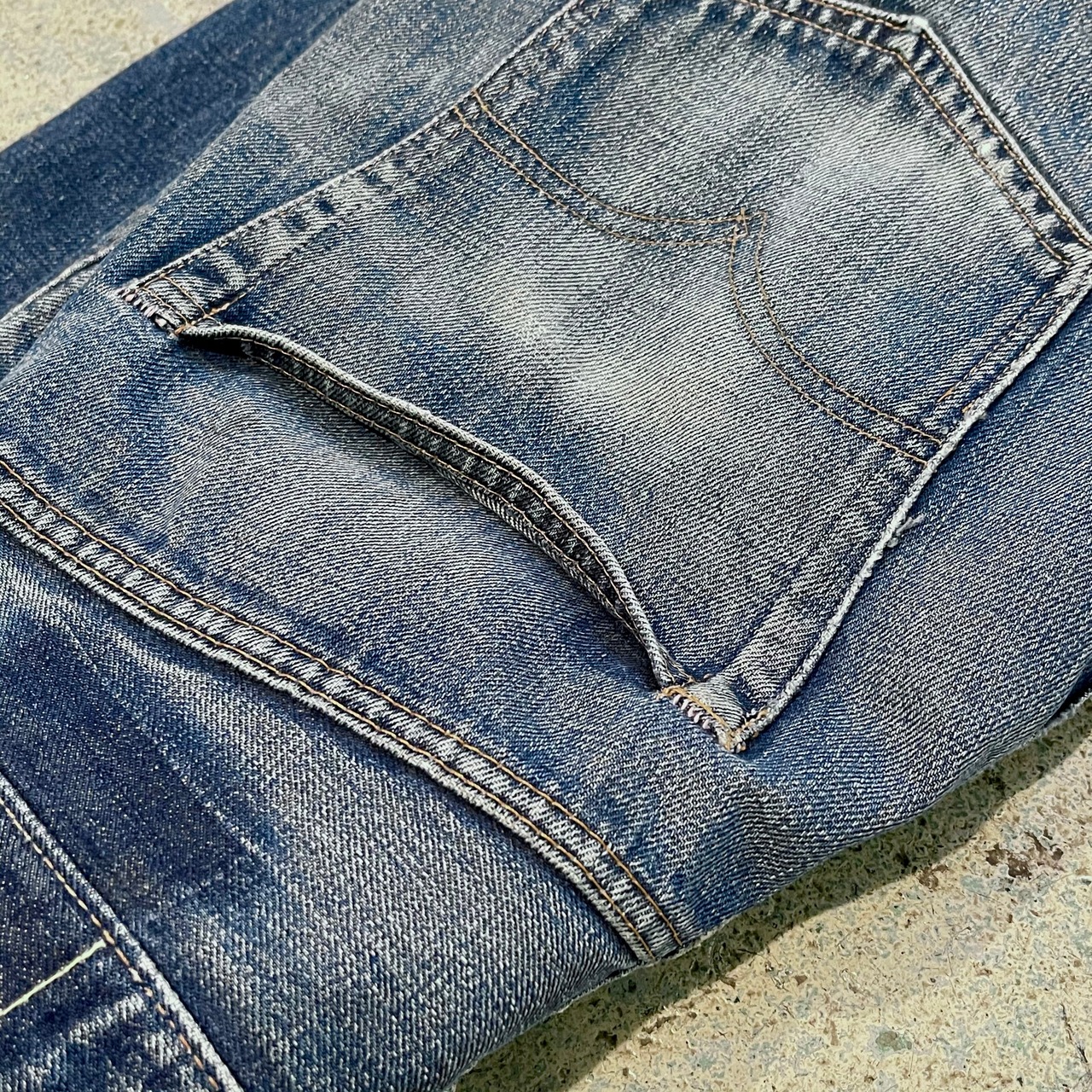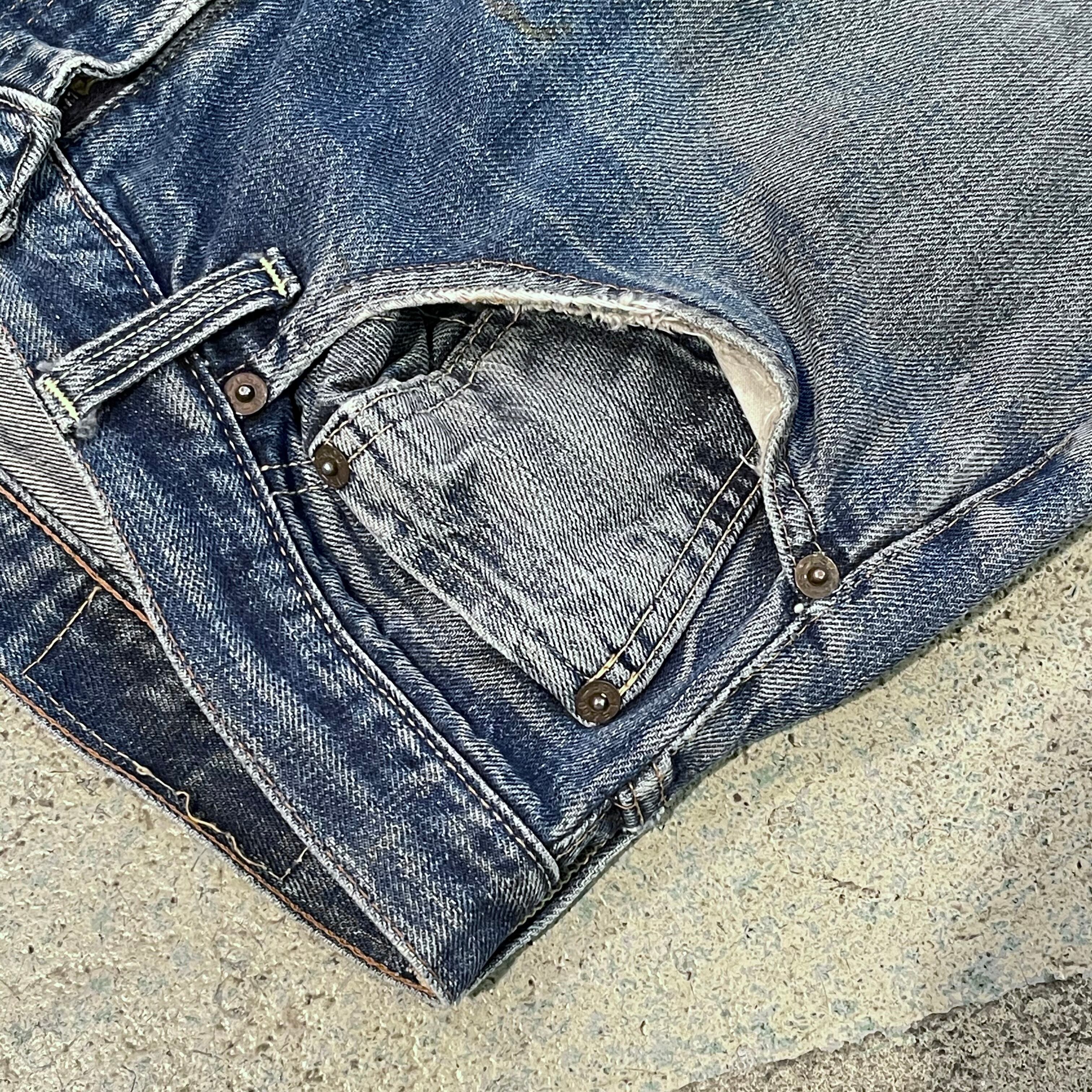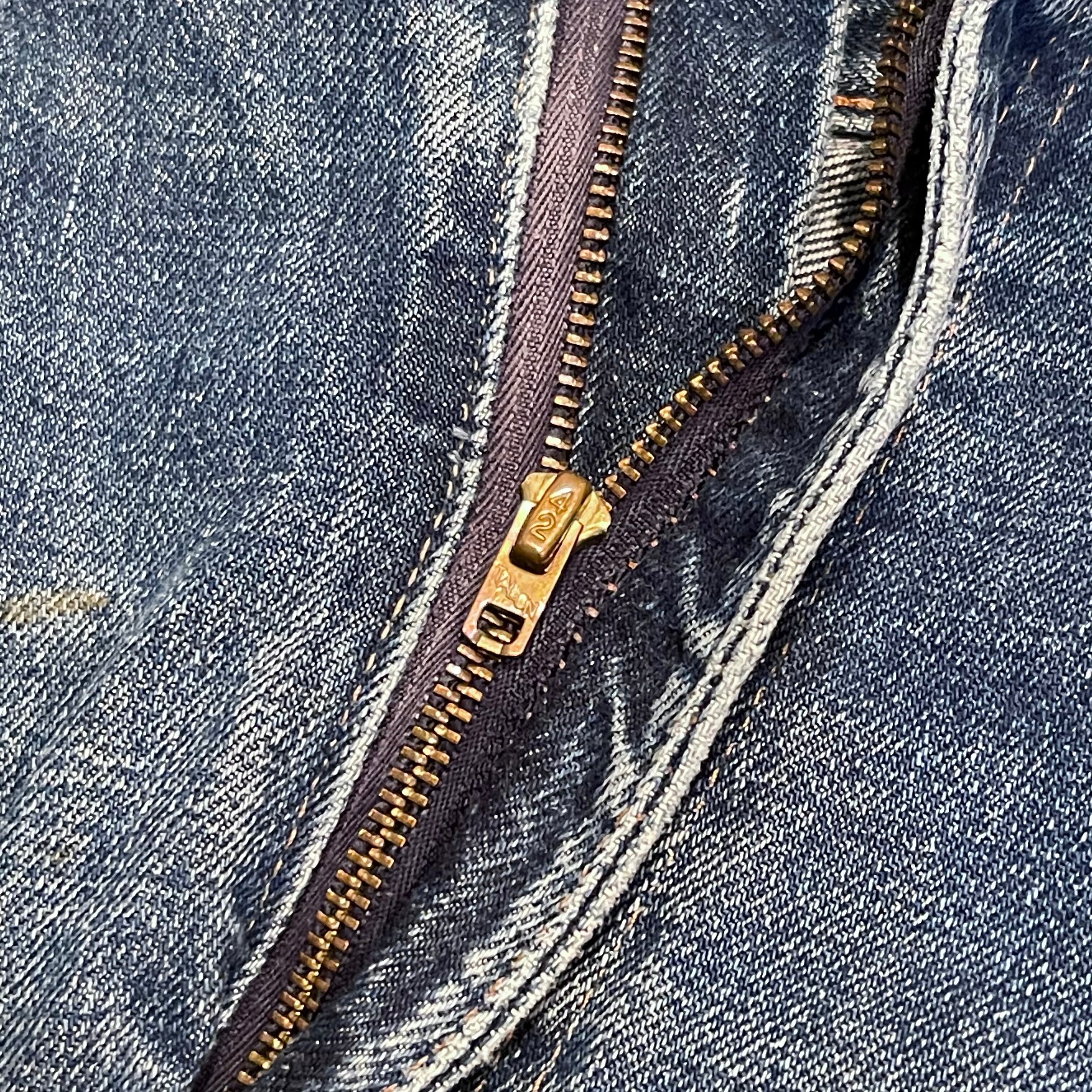 42TALONジップでバックポケット裏側がシングルステッチです。タブが切り取られているため正確にはわかりませんがおおよそ70年代のものであると思われます。