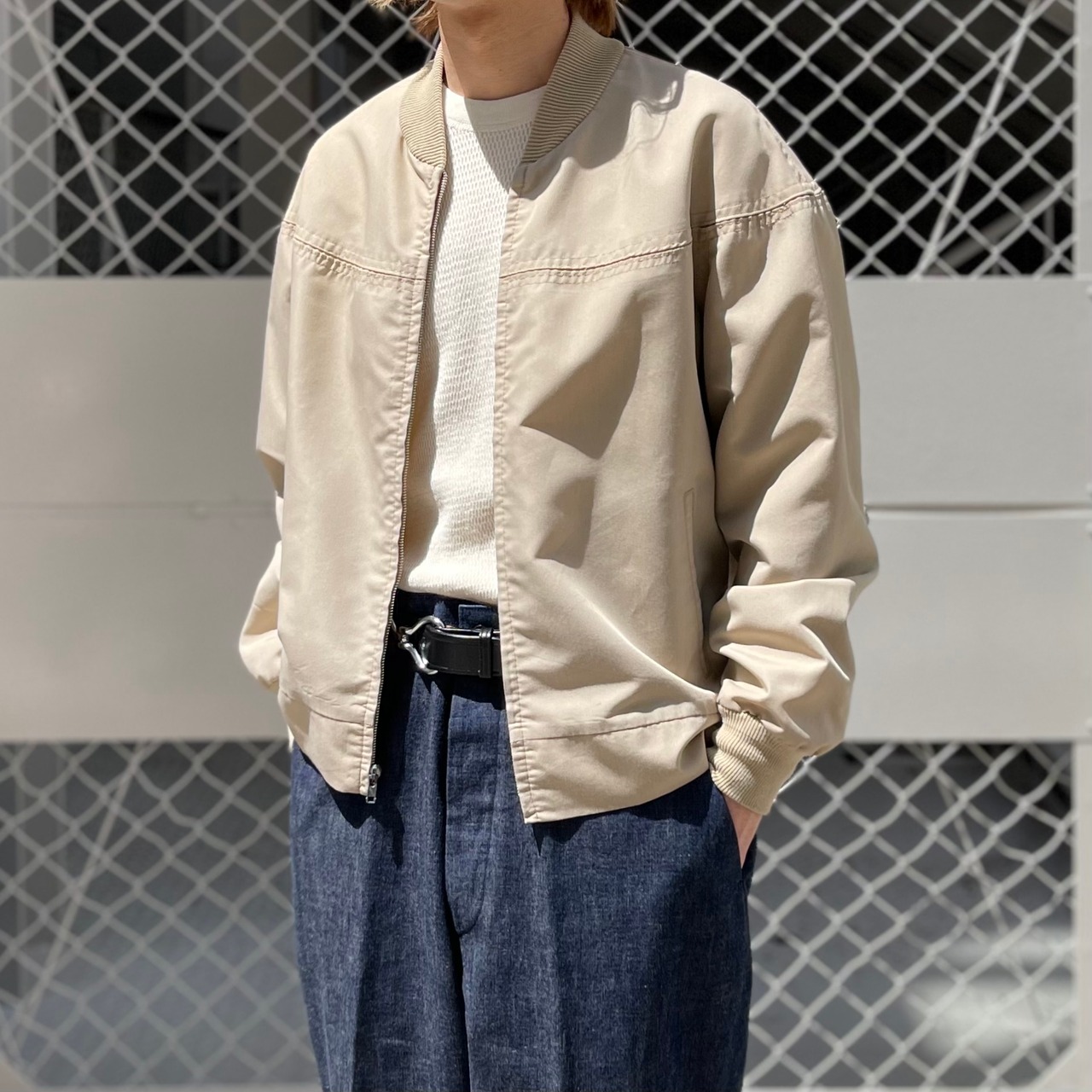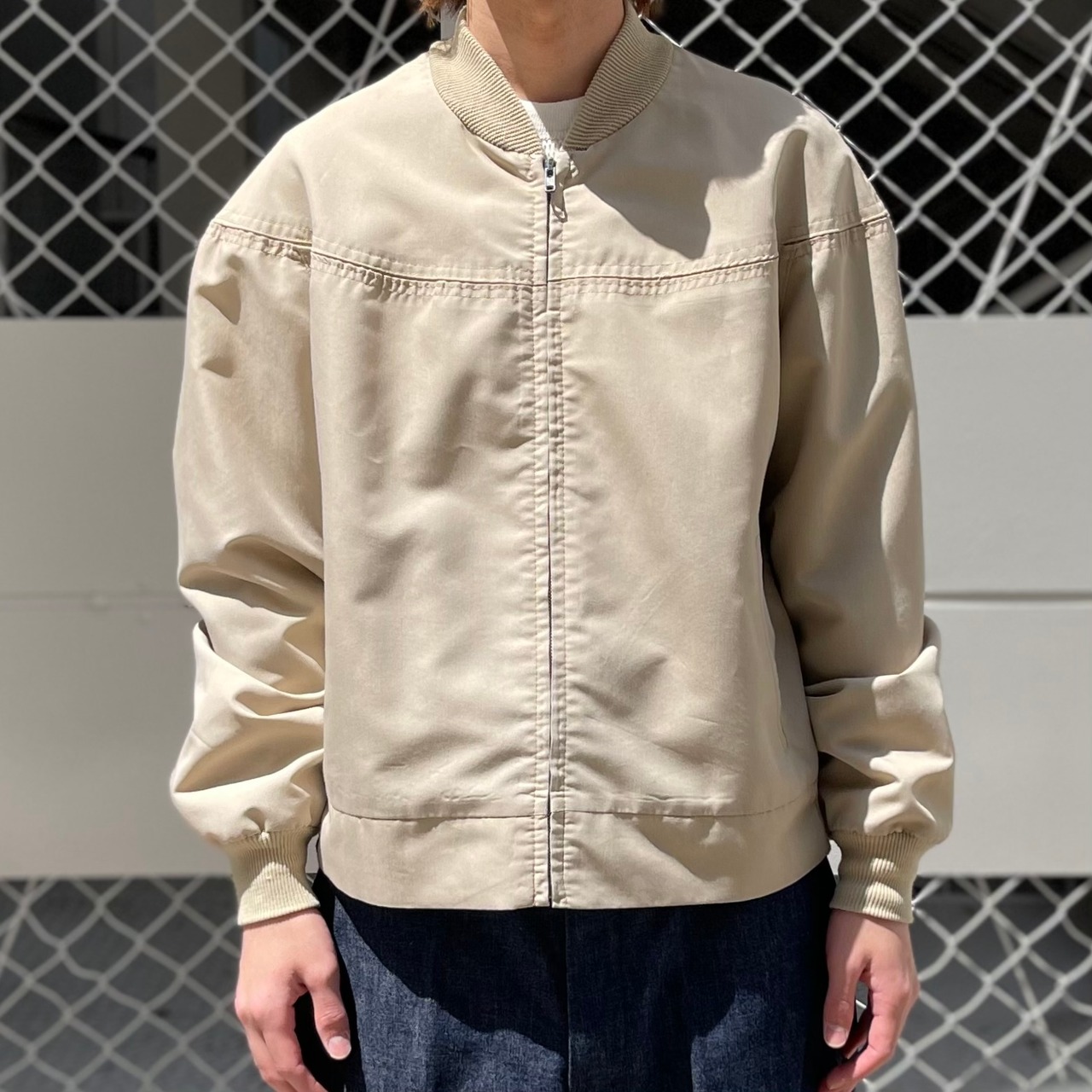 シアーズのインブランドであるアウターウェアのものです。生地感がかなり薄く、シャツジャケットのような感覚で着用していただける春におすすめです。
