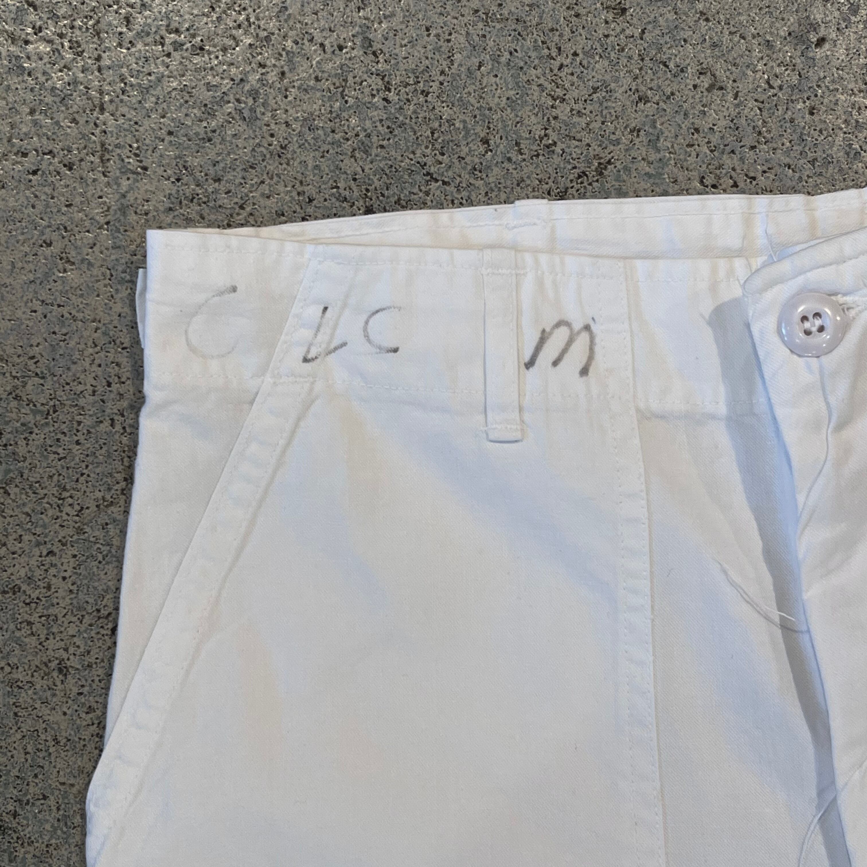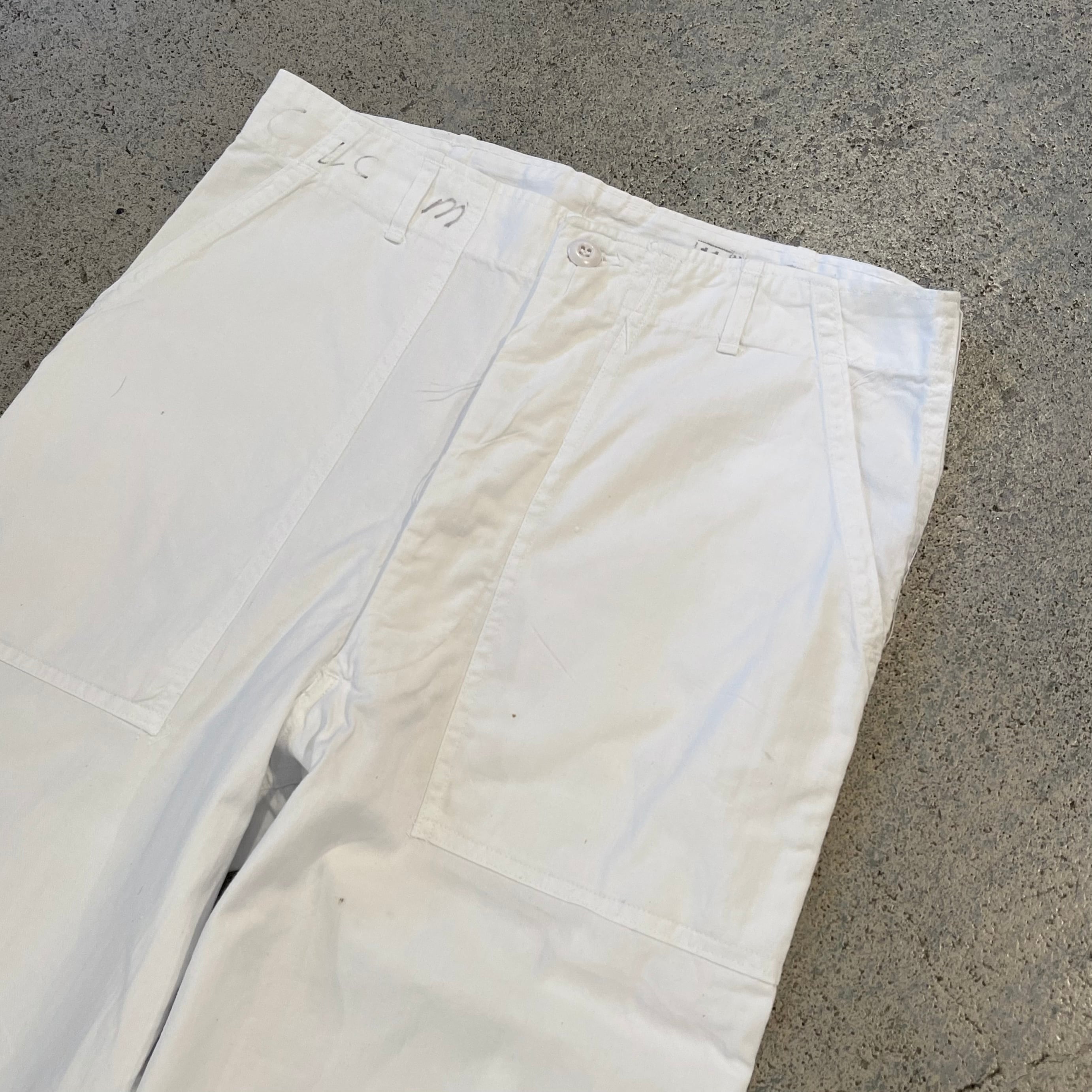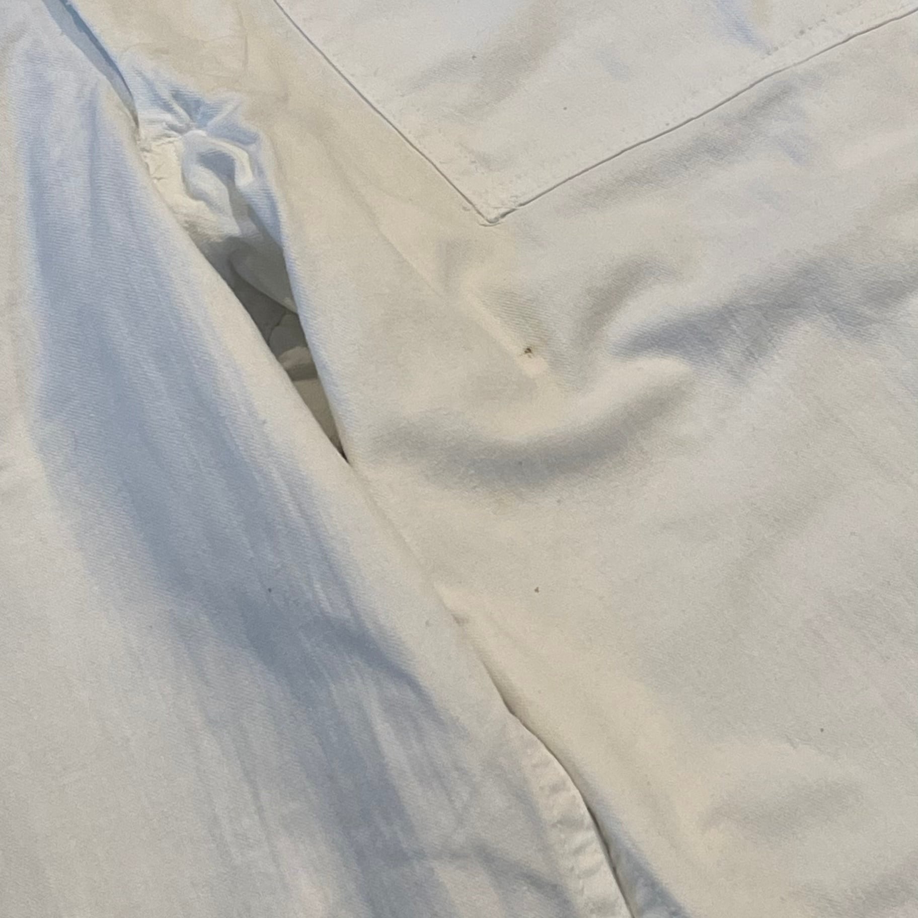 食を担当する兵士が使用していた比較的球数の少ないもので、アメリカ軍のアイテムの中でも人気の高いベイカー型のパンツの白色です。
