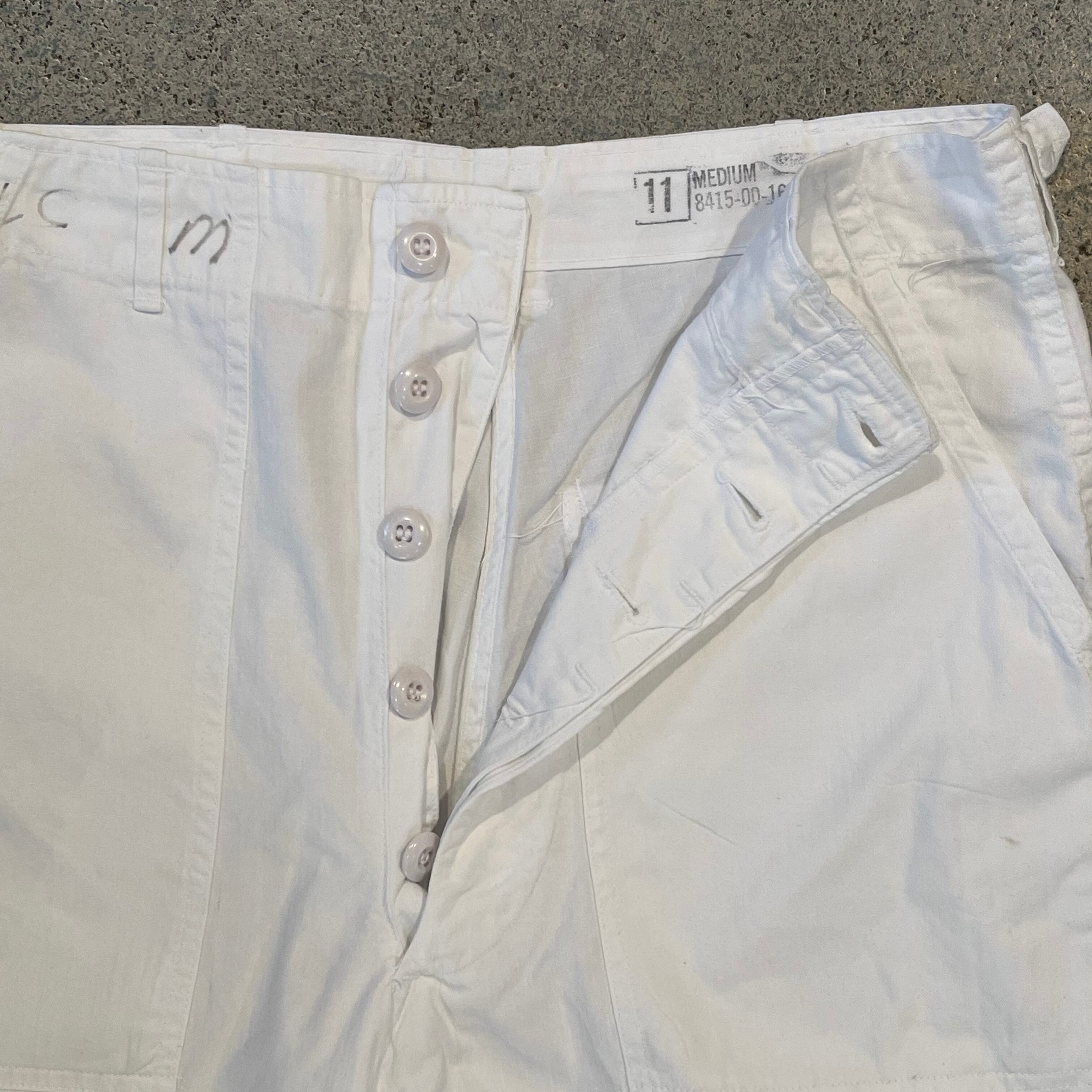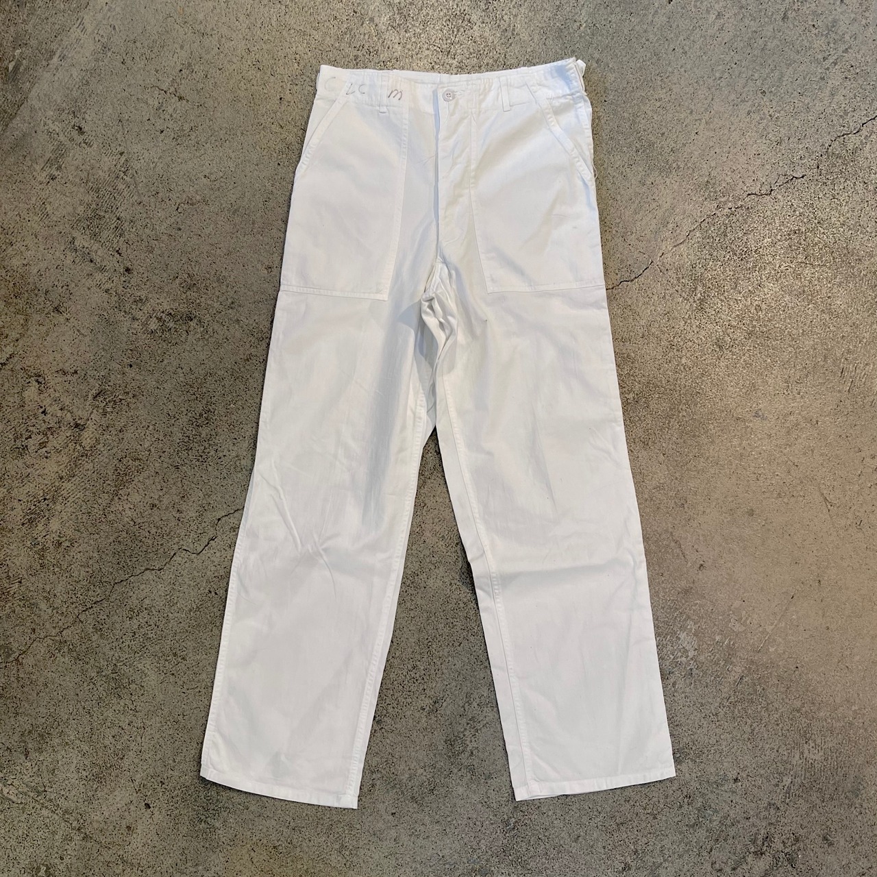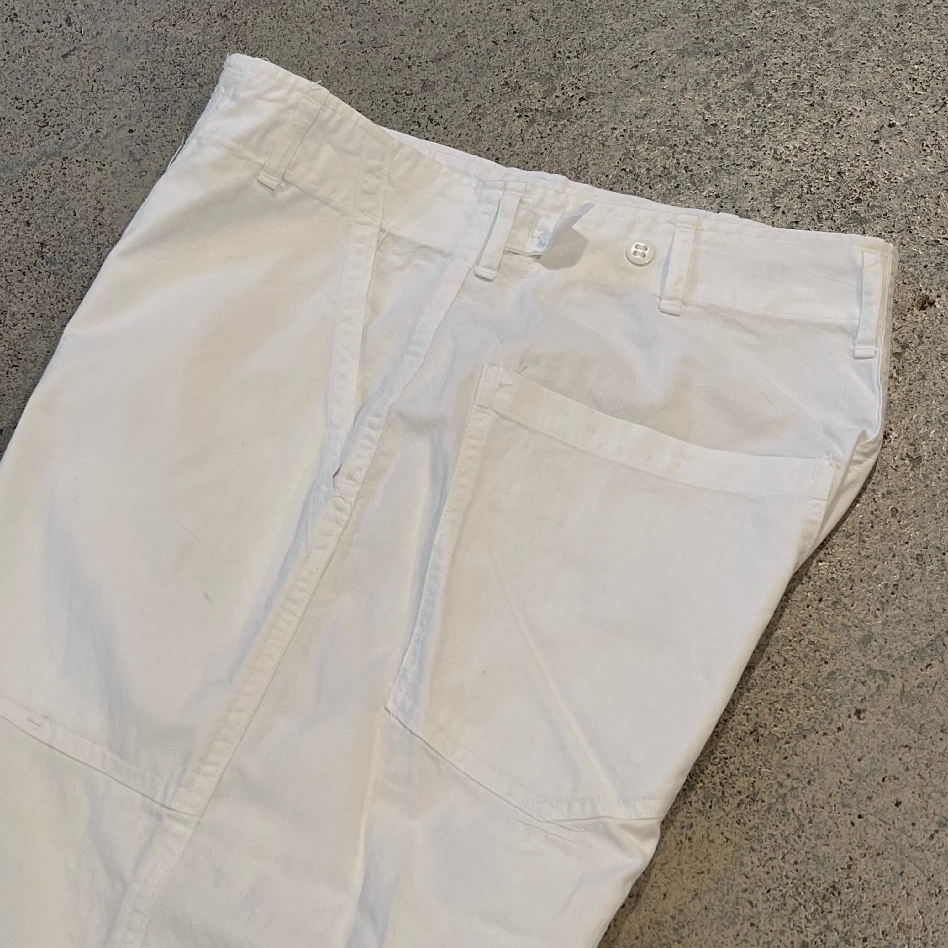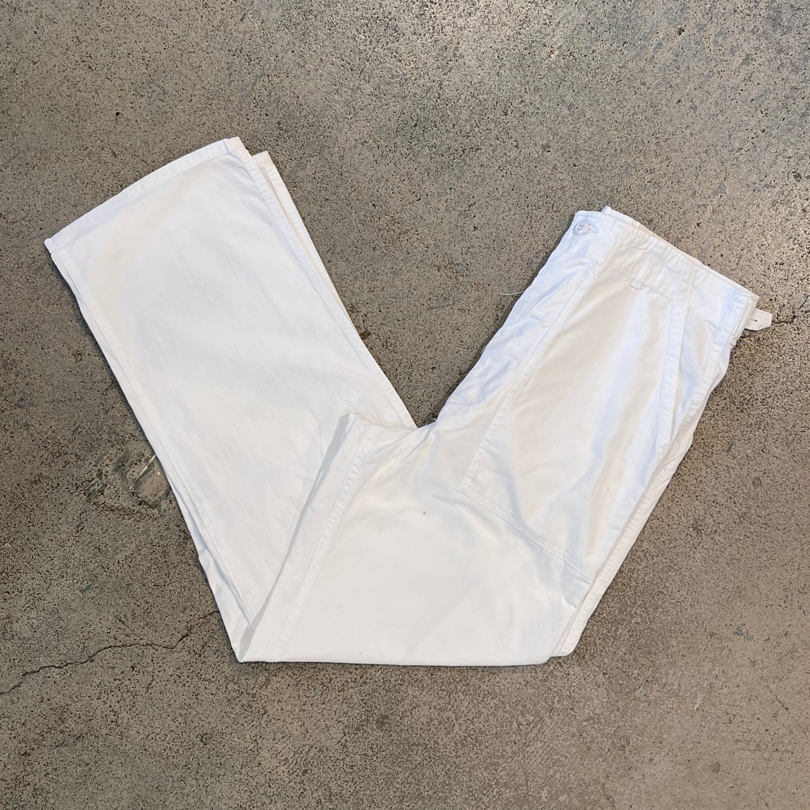 食を担当する兵士が使用していた比較的球数の少ないもので、アメリカ軍のアイテムの中でも人気の高いベイカー型のパンツの白色です。