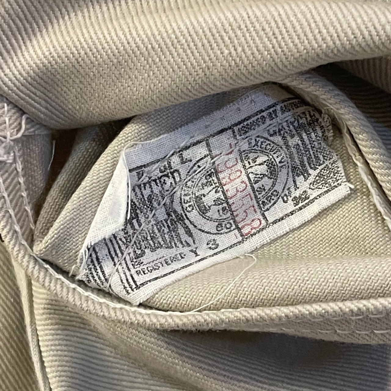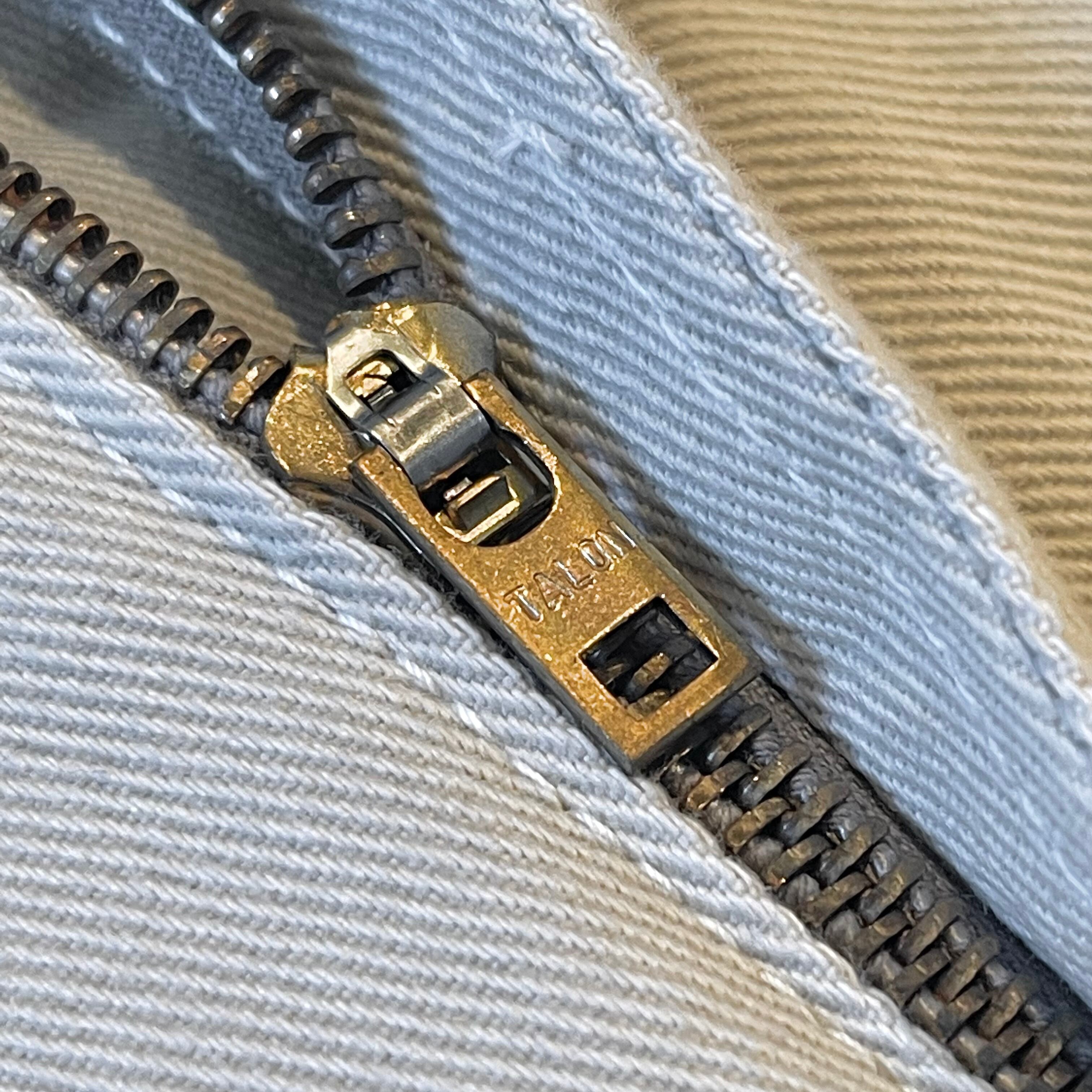 サイド黒タグ、ユニオンチケット付きで、ジップはタロンのセミオートマチック式です。ポケット裏のステッチに当て布はつきません。