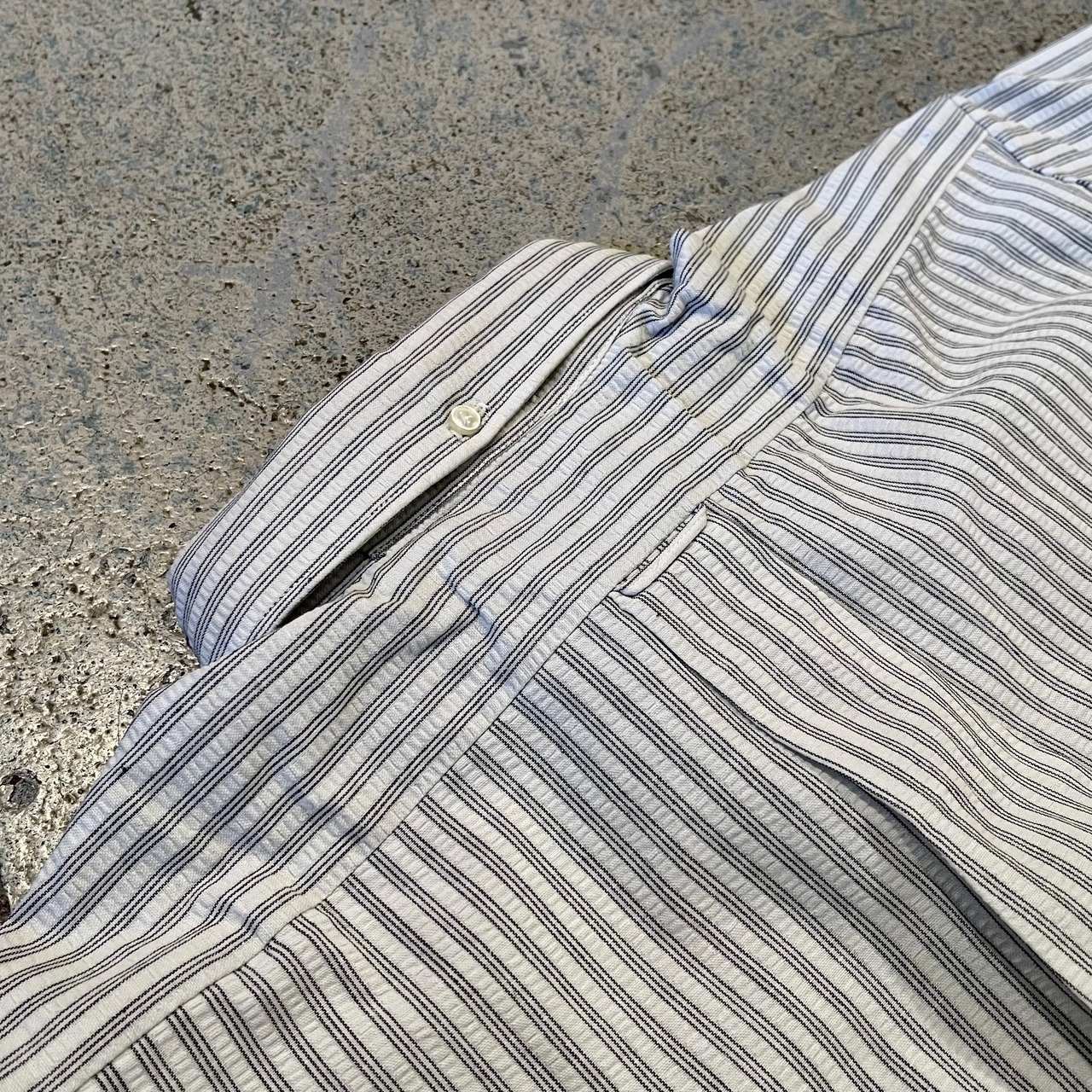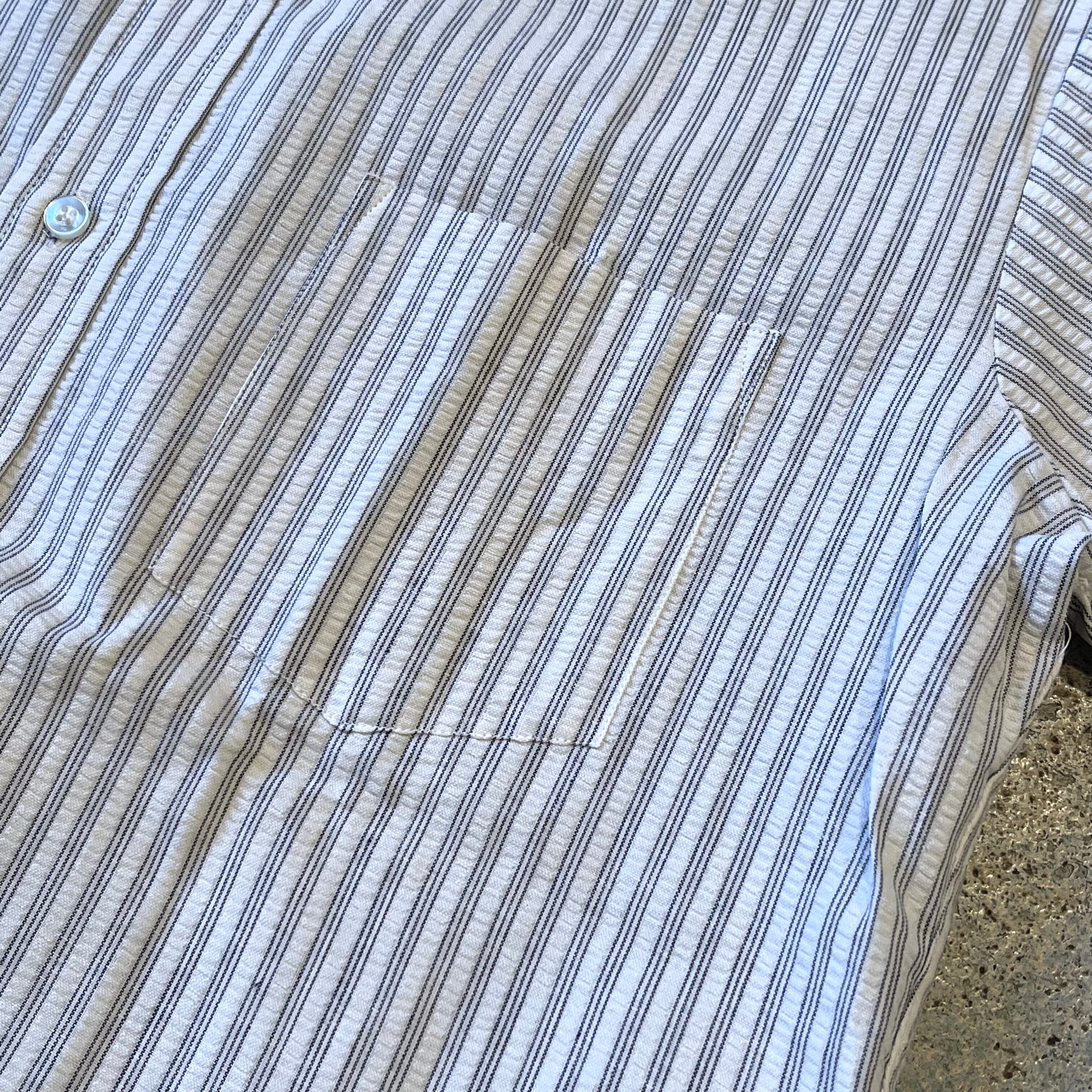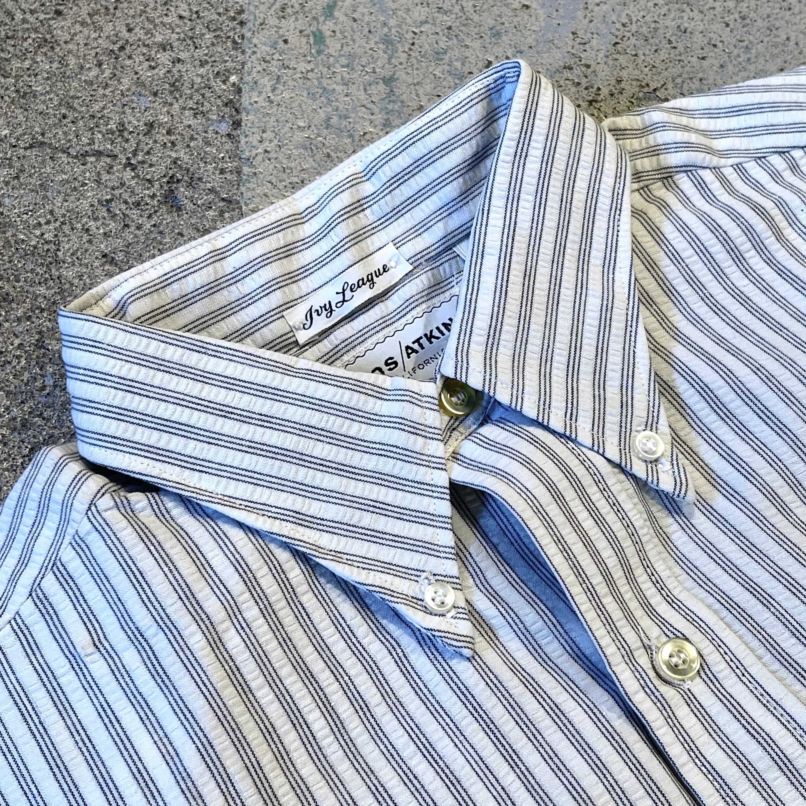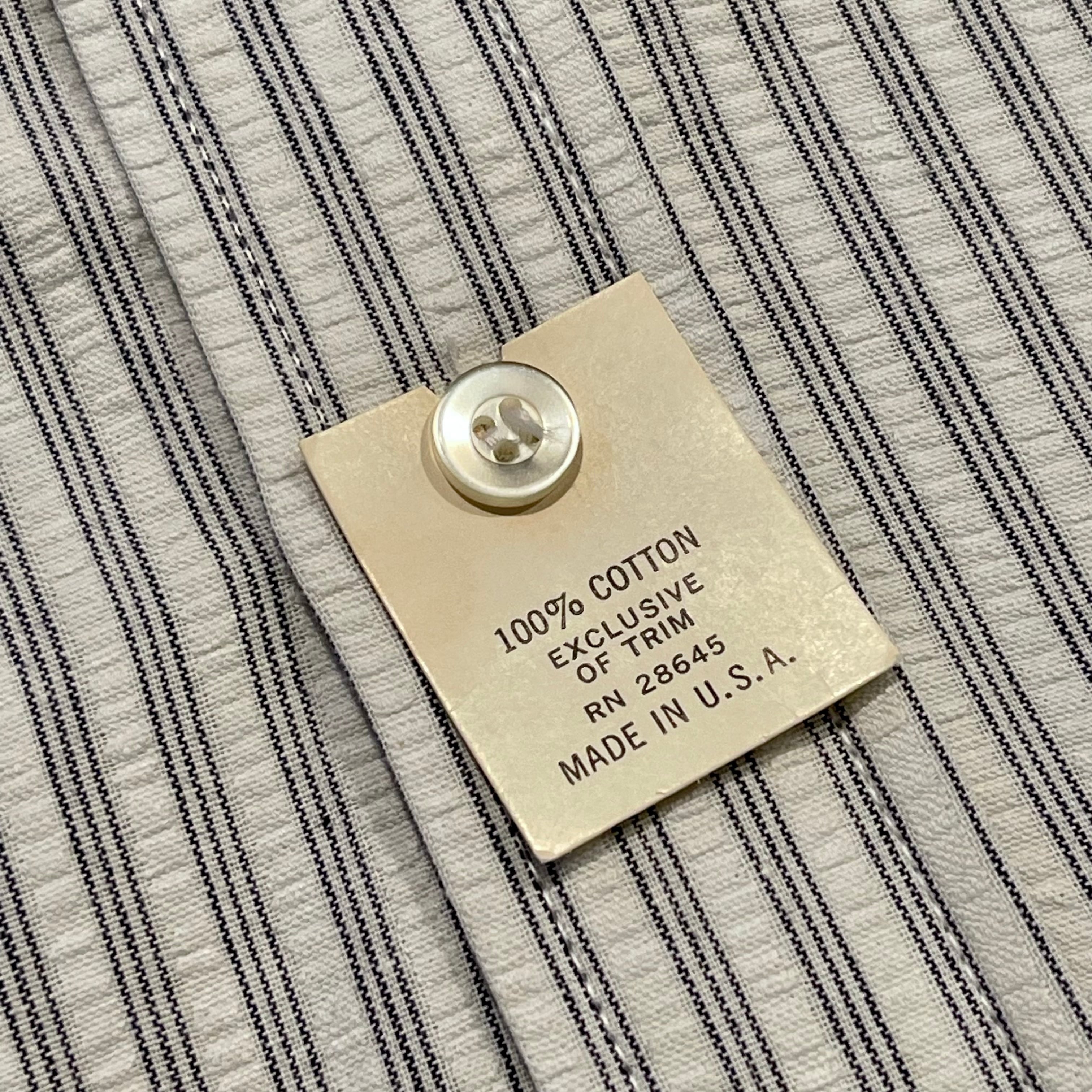 USA製のシアサッカー地で、着心地が良く、夏のコーディネートにも取り入れやすい細めのストライプ柄です。