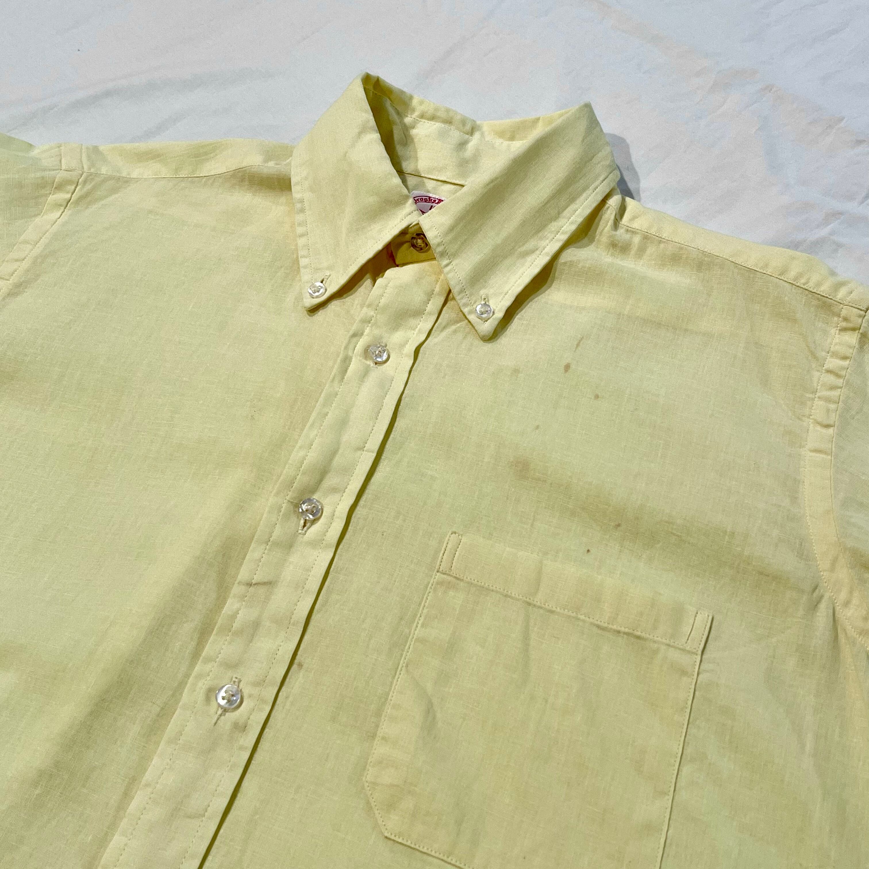 季節感のあるイエローのペールトーンカラーで、ブルックスブラザーズのボタンダウンシャツでは珍しいコットンリネンの素材です。