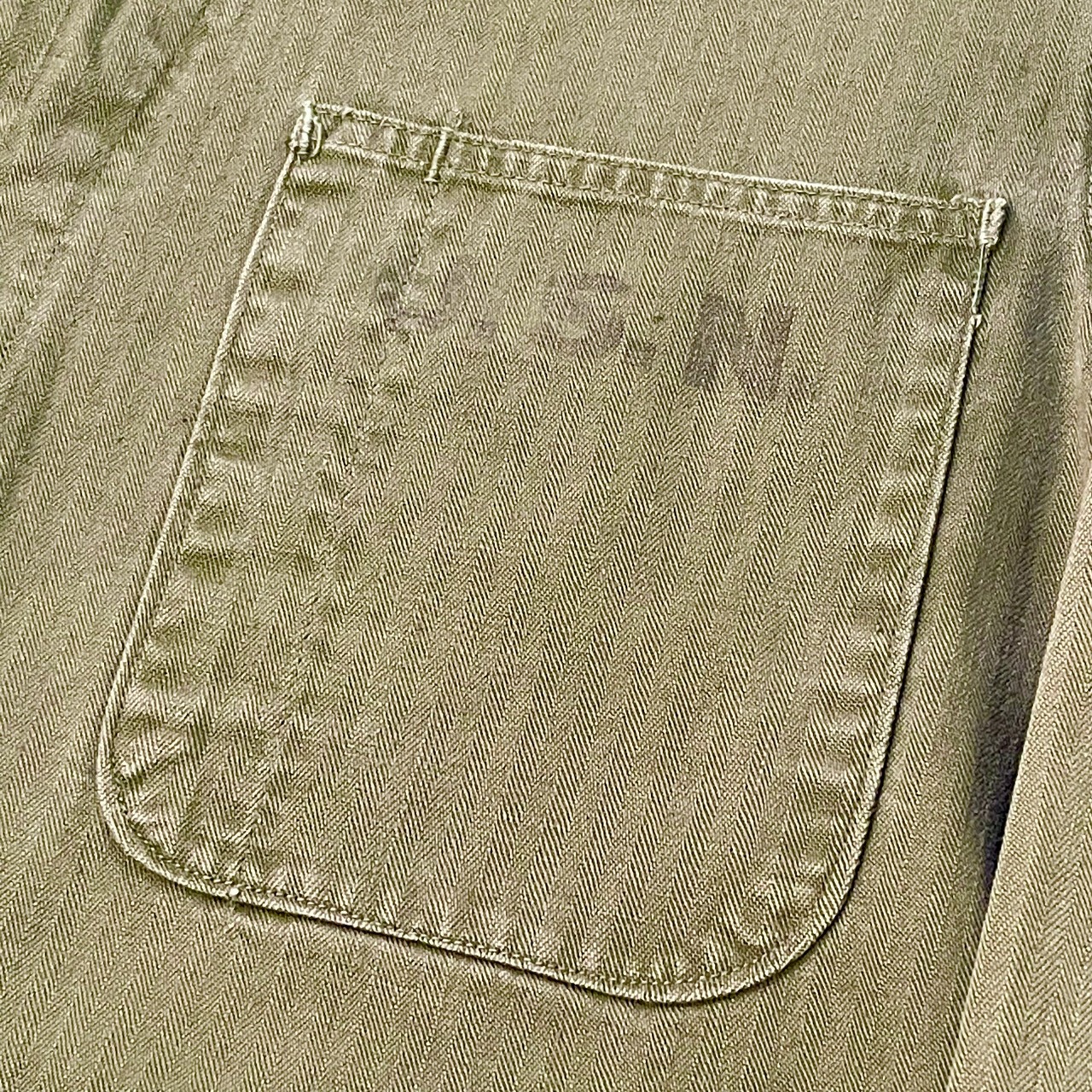 薄手ながら堅牢なつくりであるヘリンボーンツイルの生地は、独特な色落ちとアタリが出ることが特徴で、長く愛用していただけます。