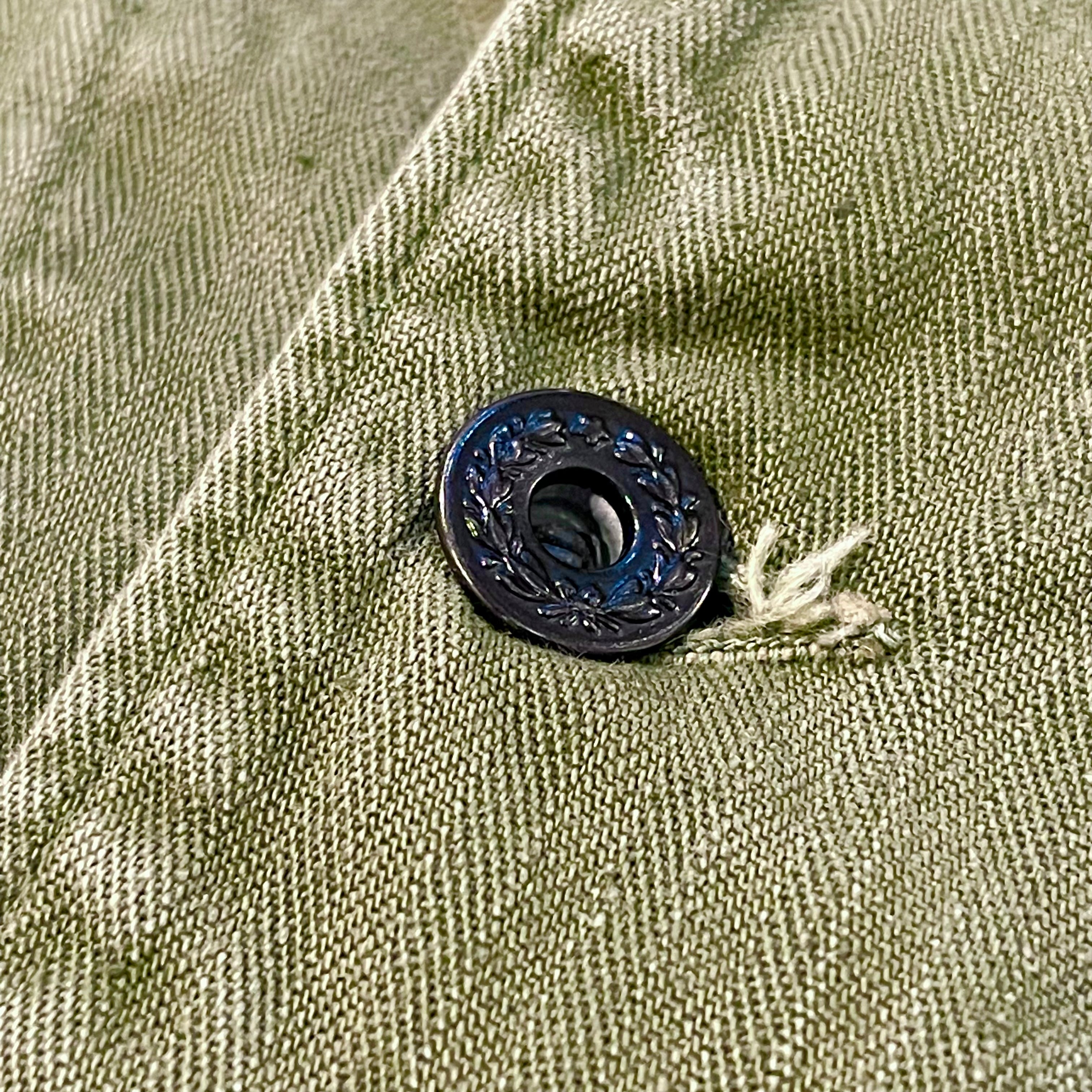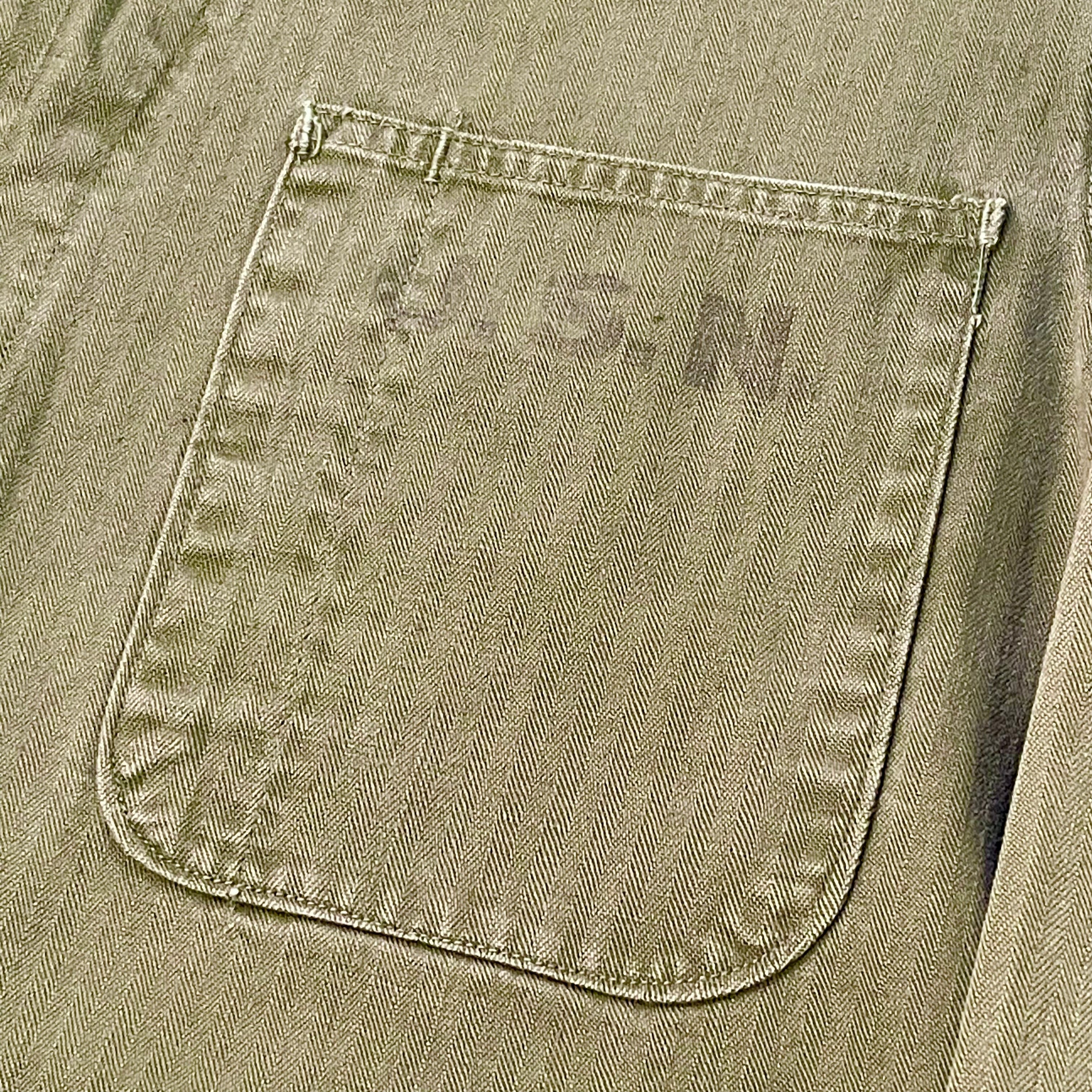 USMCのP41とほぼ同型であるアメリカ海軍のHBTジャケットです。USMCと比べると圧倒的に出にくく、希少なアイテムです。ボタンはブラックラッカー塗りの月桂樹ボタンが使用されいます。