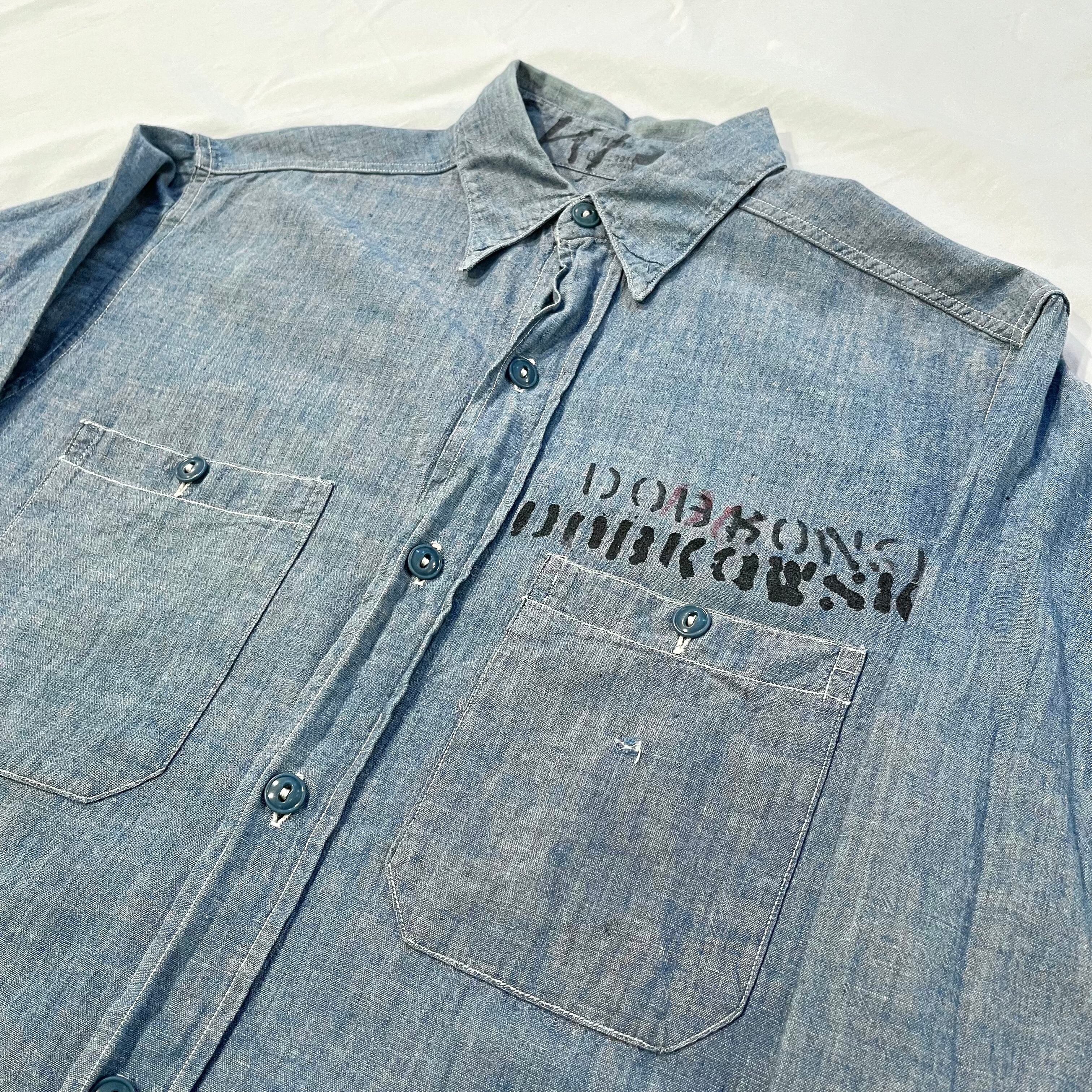 40's〜 U.S.Navy chambray shirt アメリカ軍 シャンブレーシャツ マチ付き