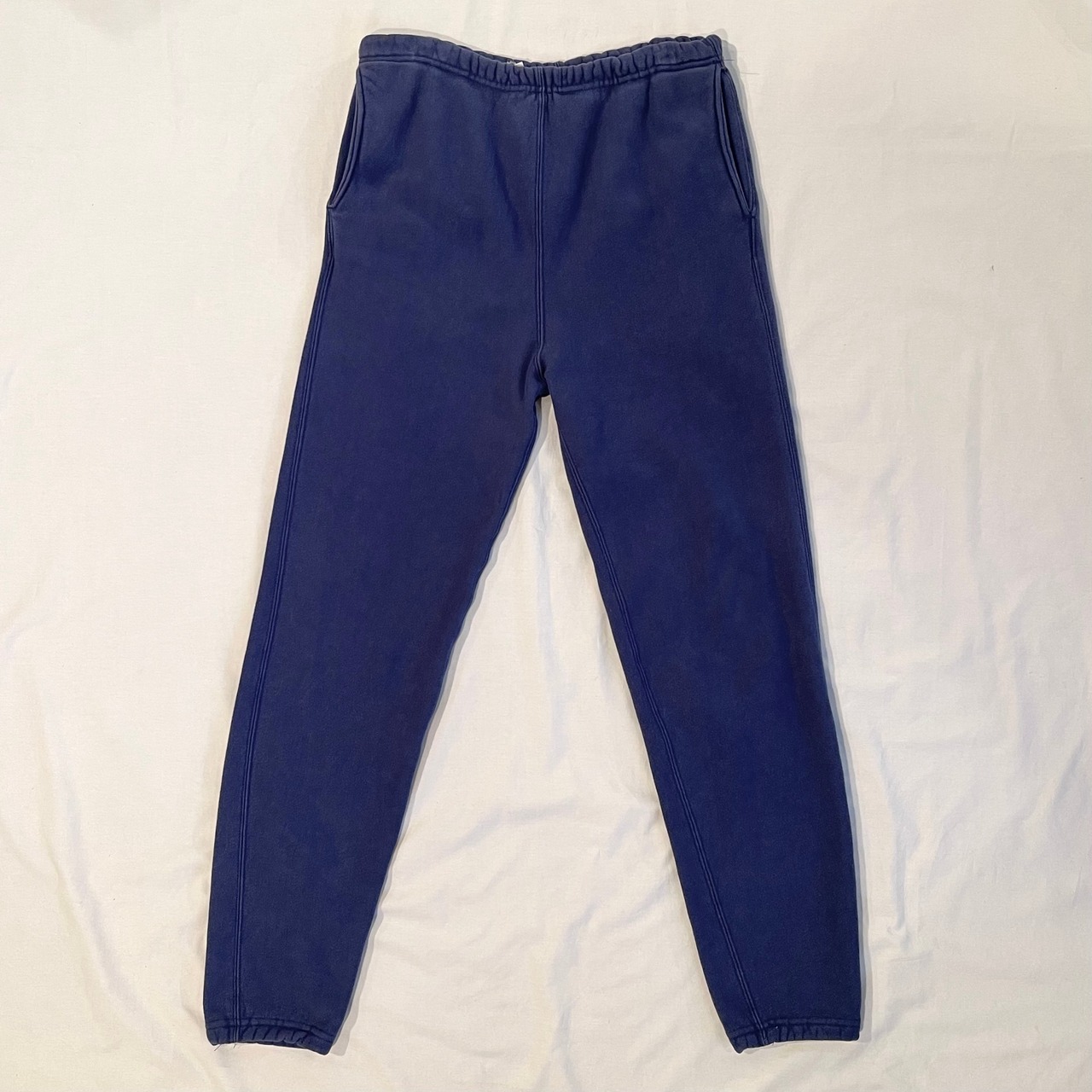 スウェットパンツとしてはかなり希少なポケット付きのモデルで、グレーよりも出にくいネイビーのカラーです。
