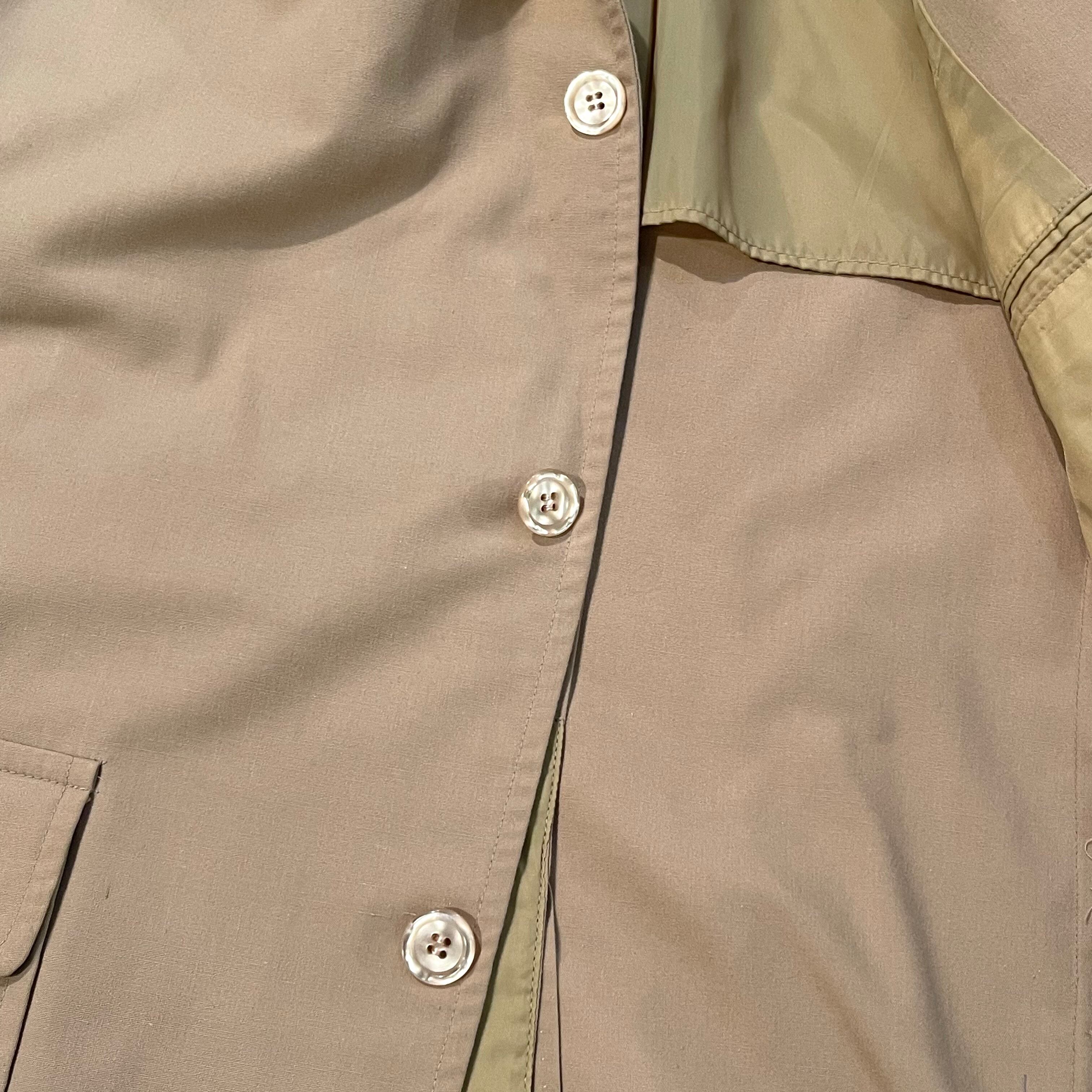 肩パッドが入り、ボディが少しシェイプしていて、襟が大きめの70年代らしいテーラードジャケットです。