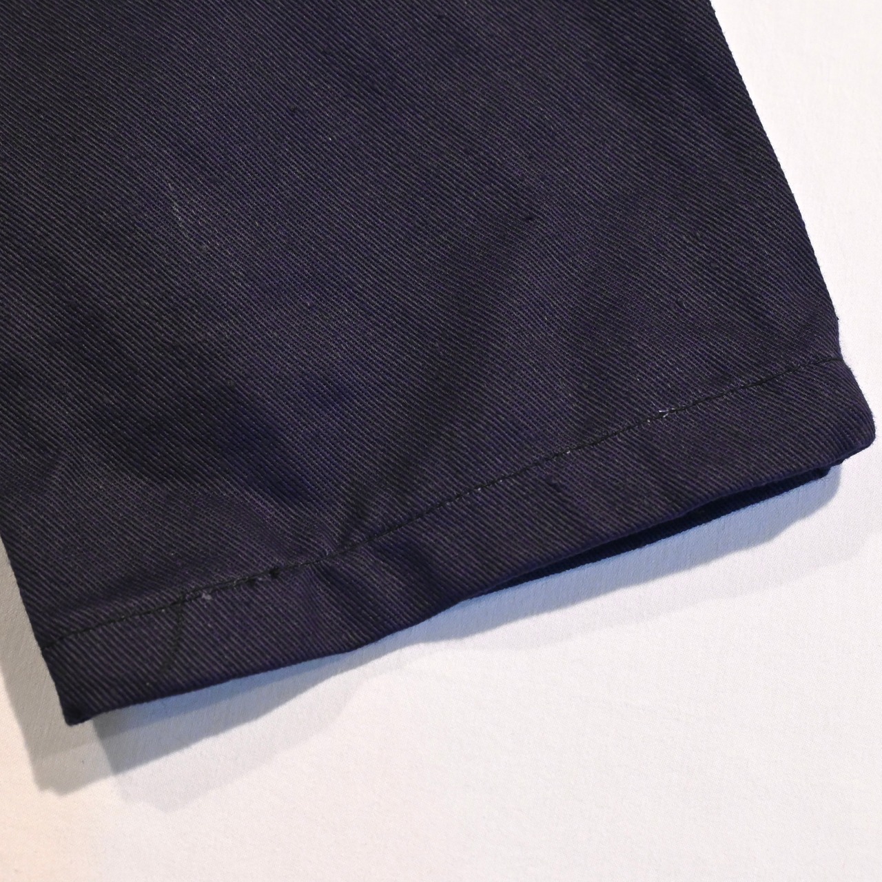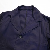 やや紫がかったネイビーのカラーに、薄手でありながら目の詰まったワーク感のある生地です。少し前傾な袖とラペルのデザインがイギリスらしく秀逸です。