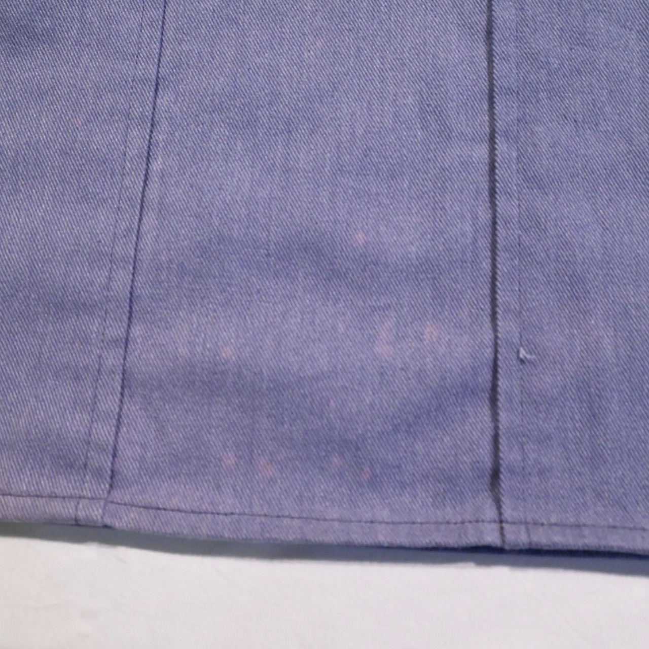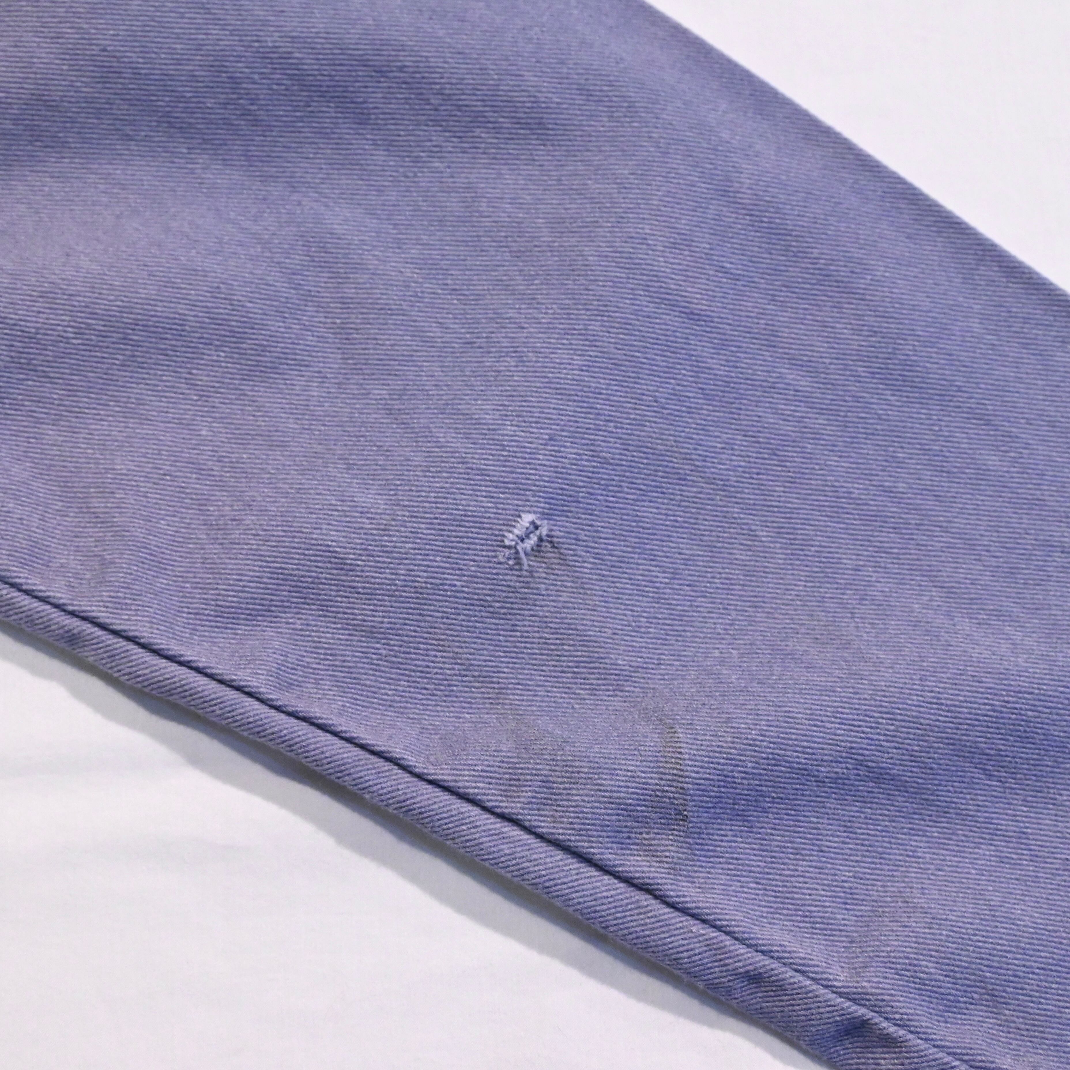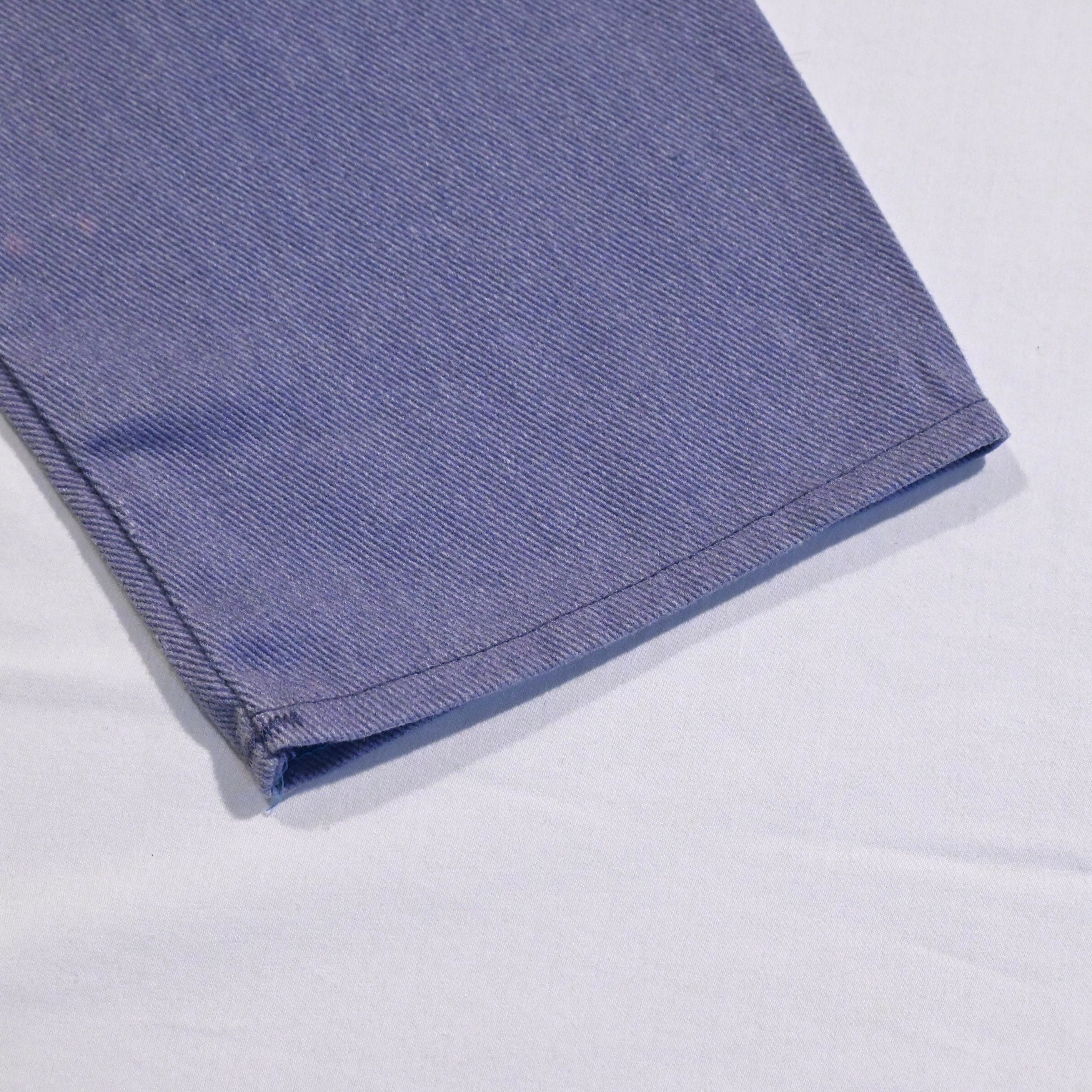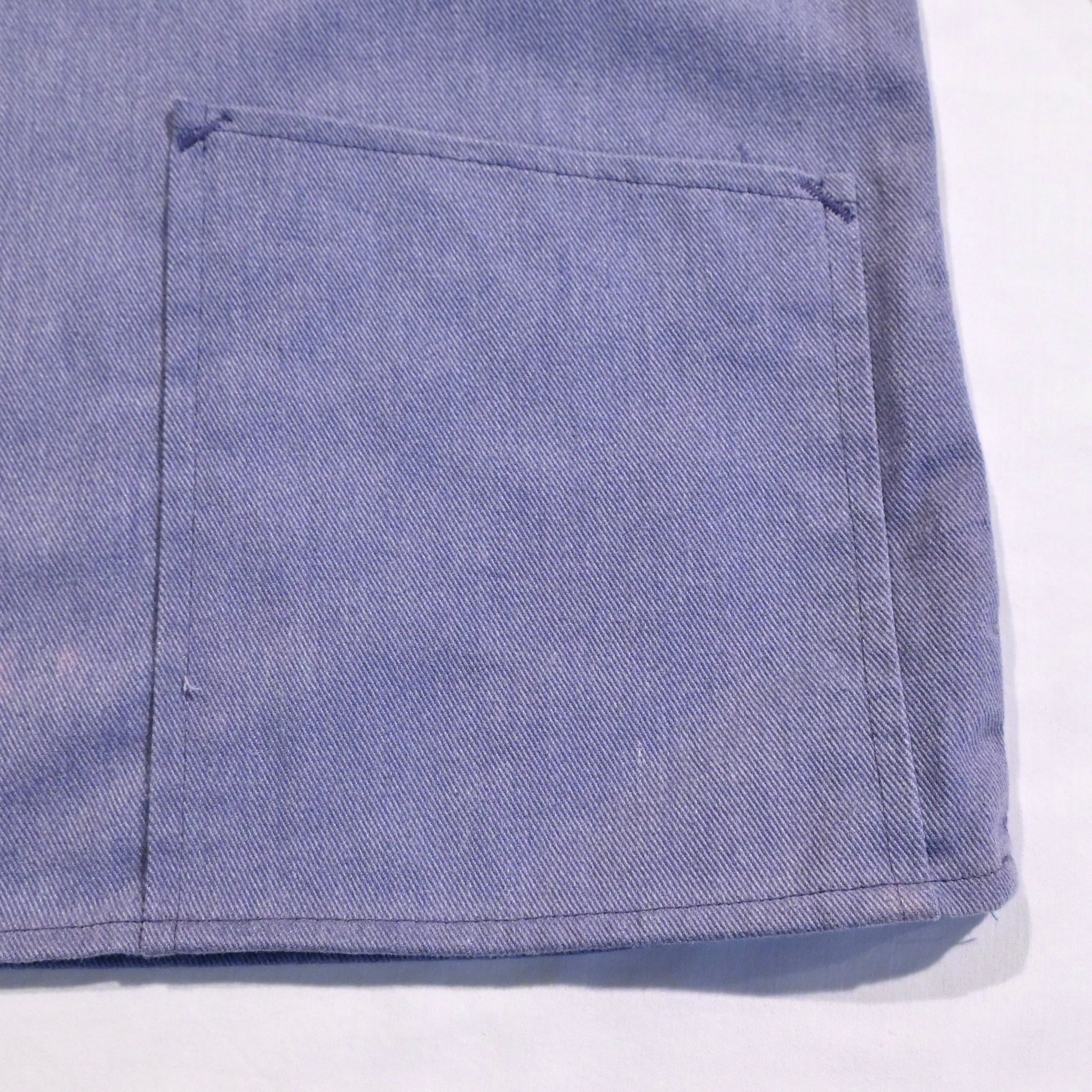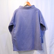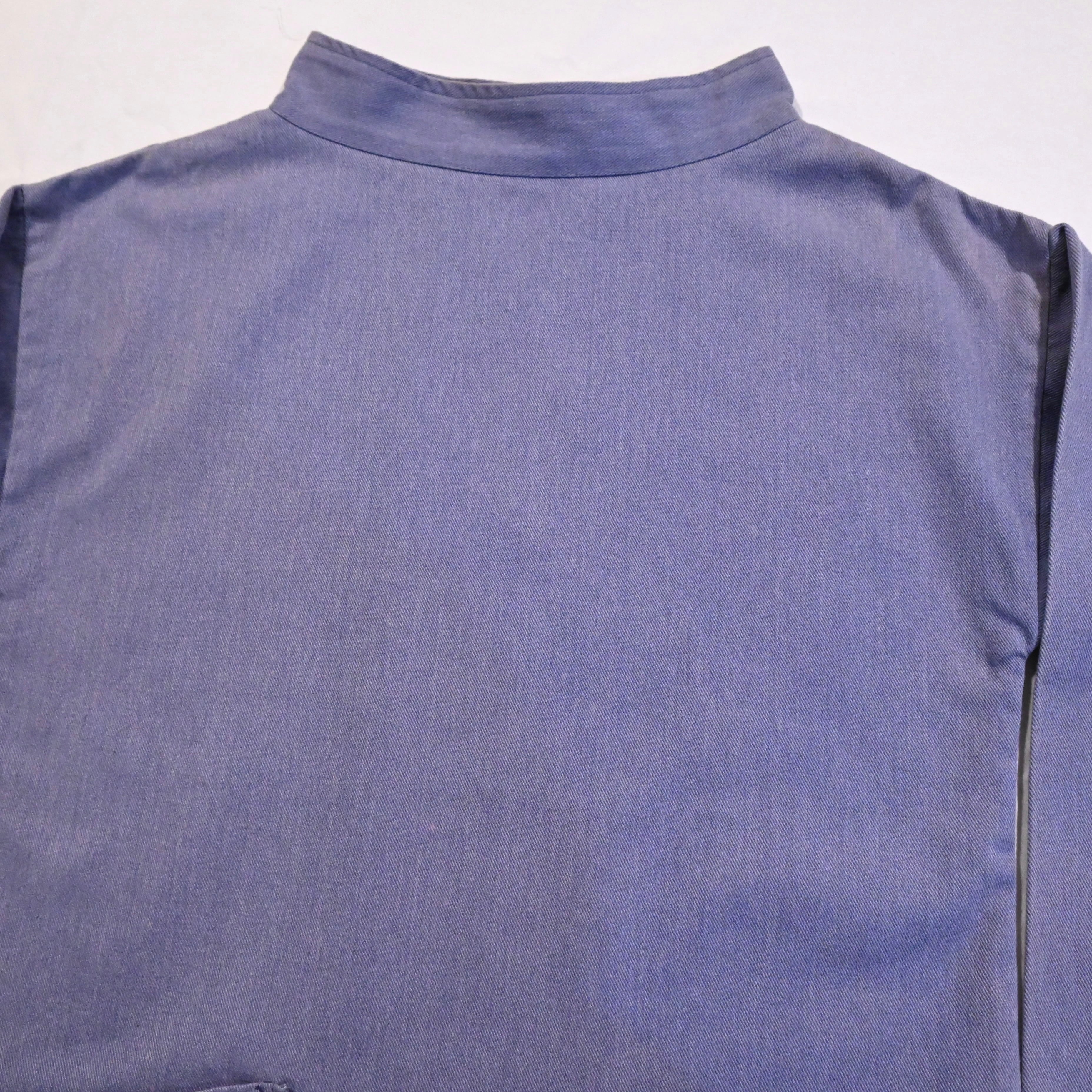 ボトルネックが特徴的な漁師用の作業着です。少し紫がかったライトブルーのカラーが魅力的なアイテムです。