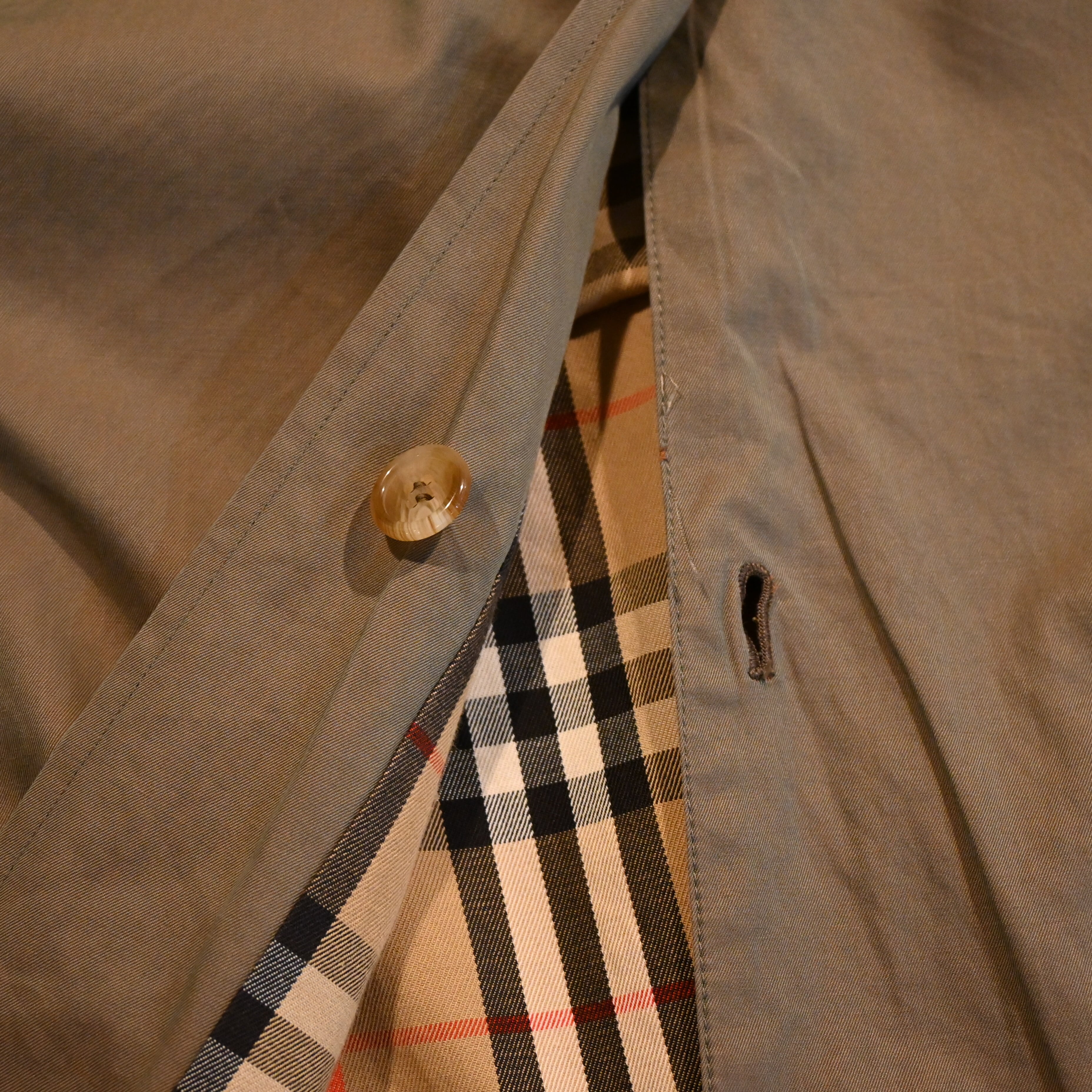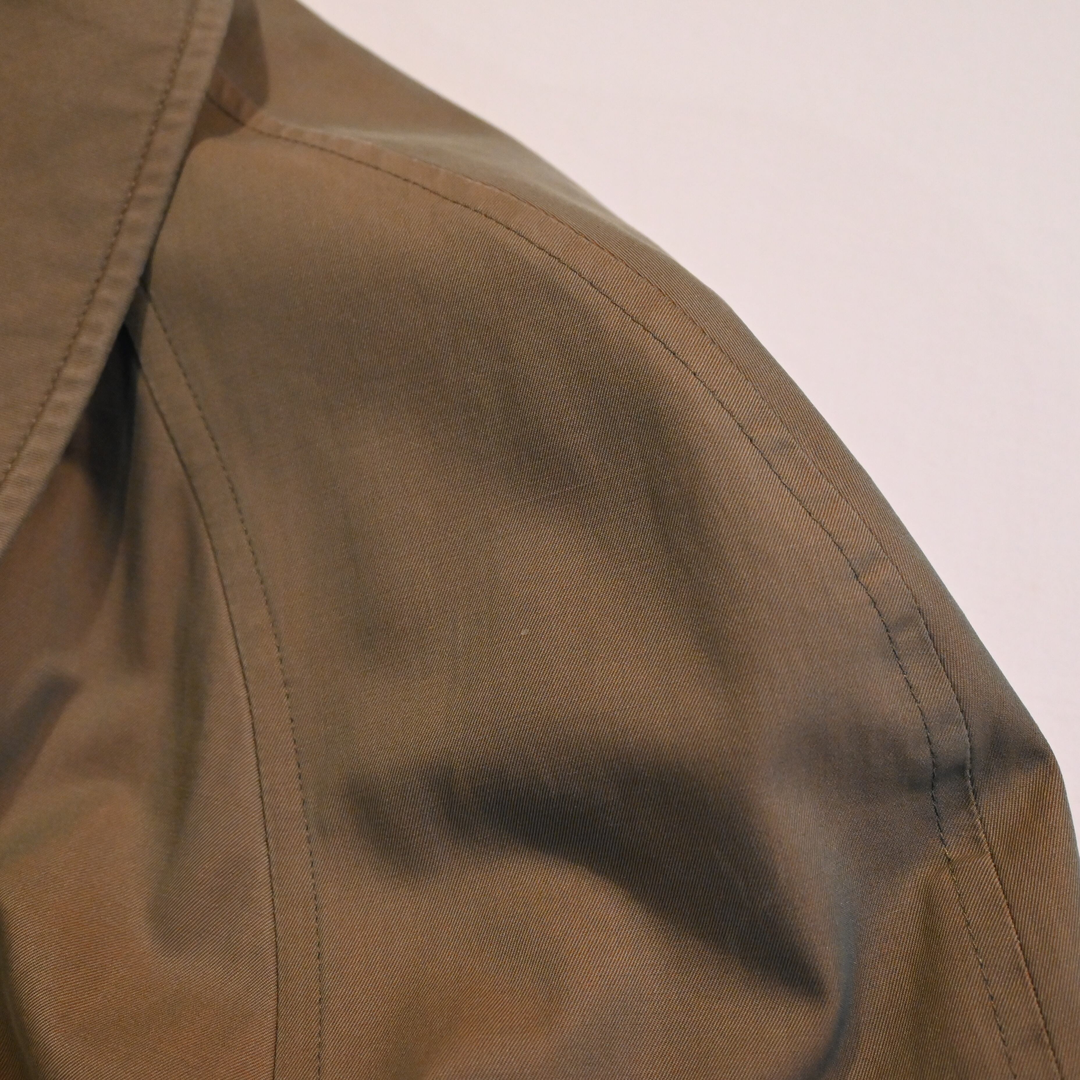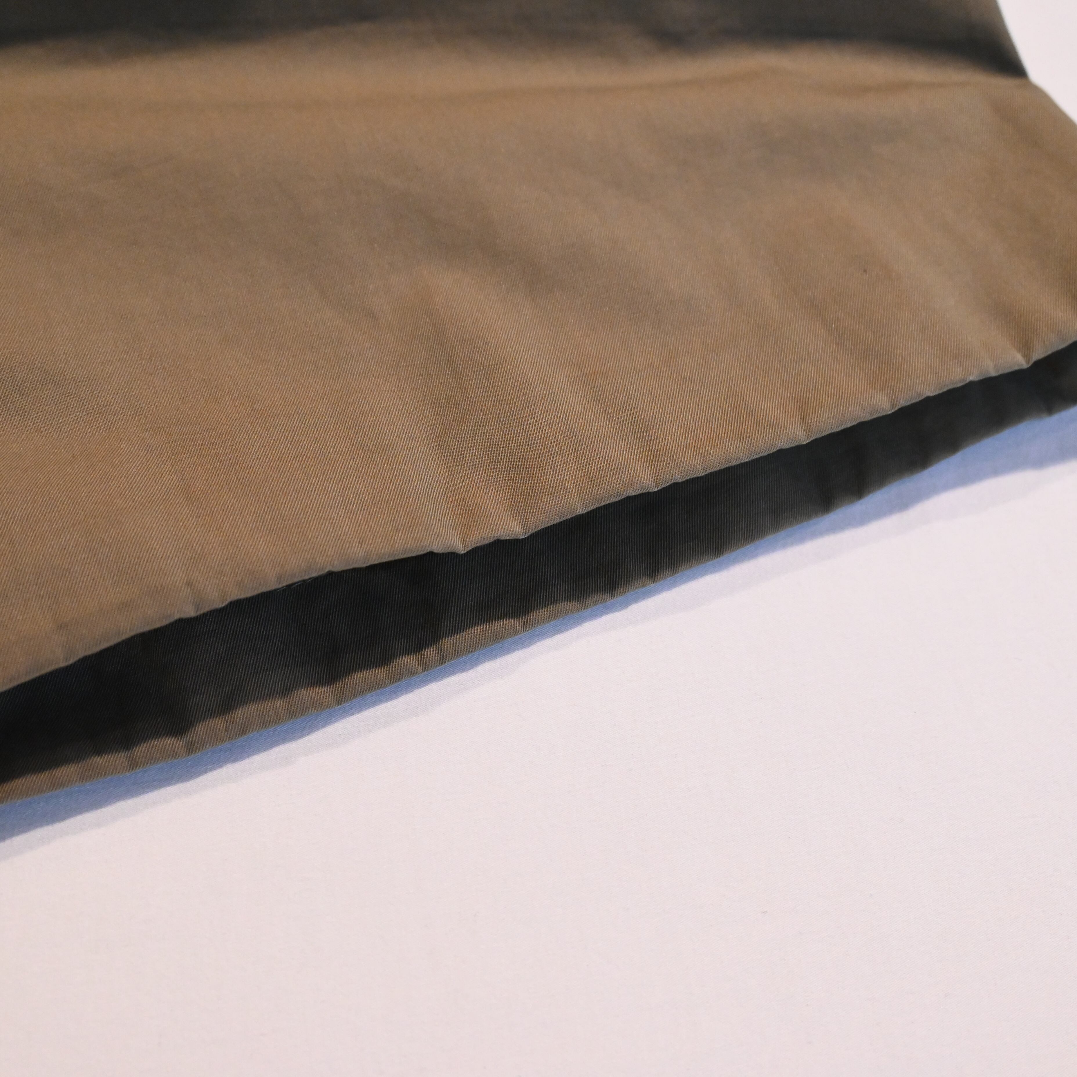お探しの方の多い、本来のバーバリークロスであるコットン100%の生地です。最近ではあまり見かけない通称"玉虫"色のもので独特な光沢感があります。