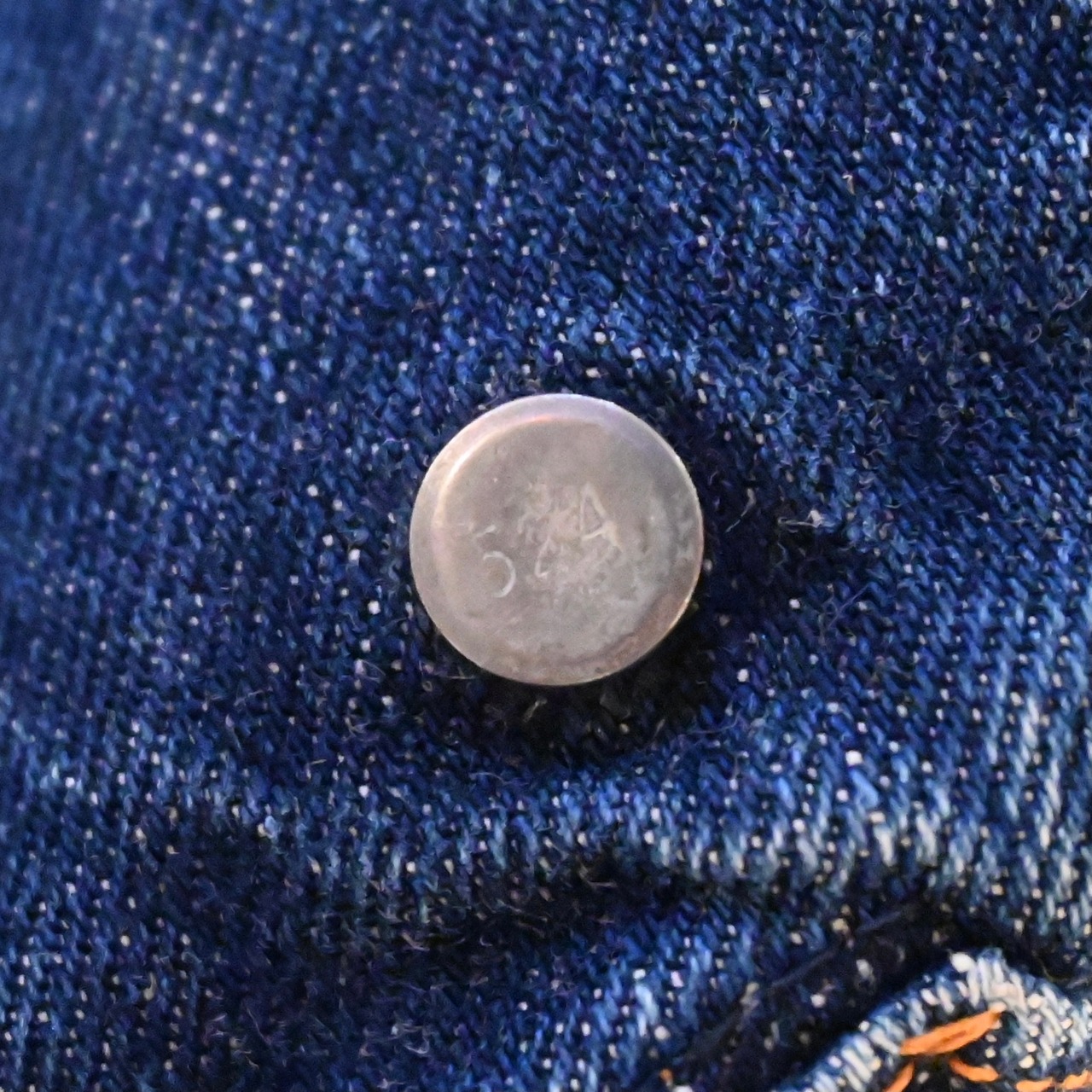 ゴールデンサイズの40で、オレンジのステッチと濃いインディゴの色のバランスが魅力的なアイテムです。