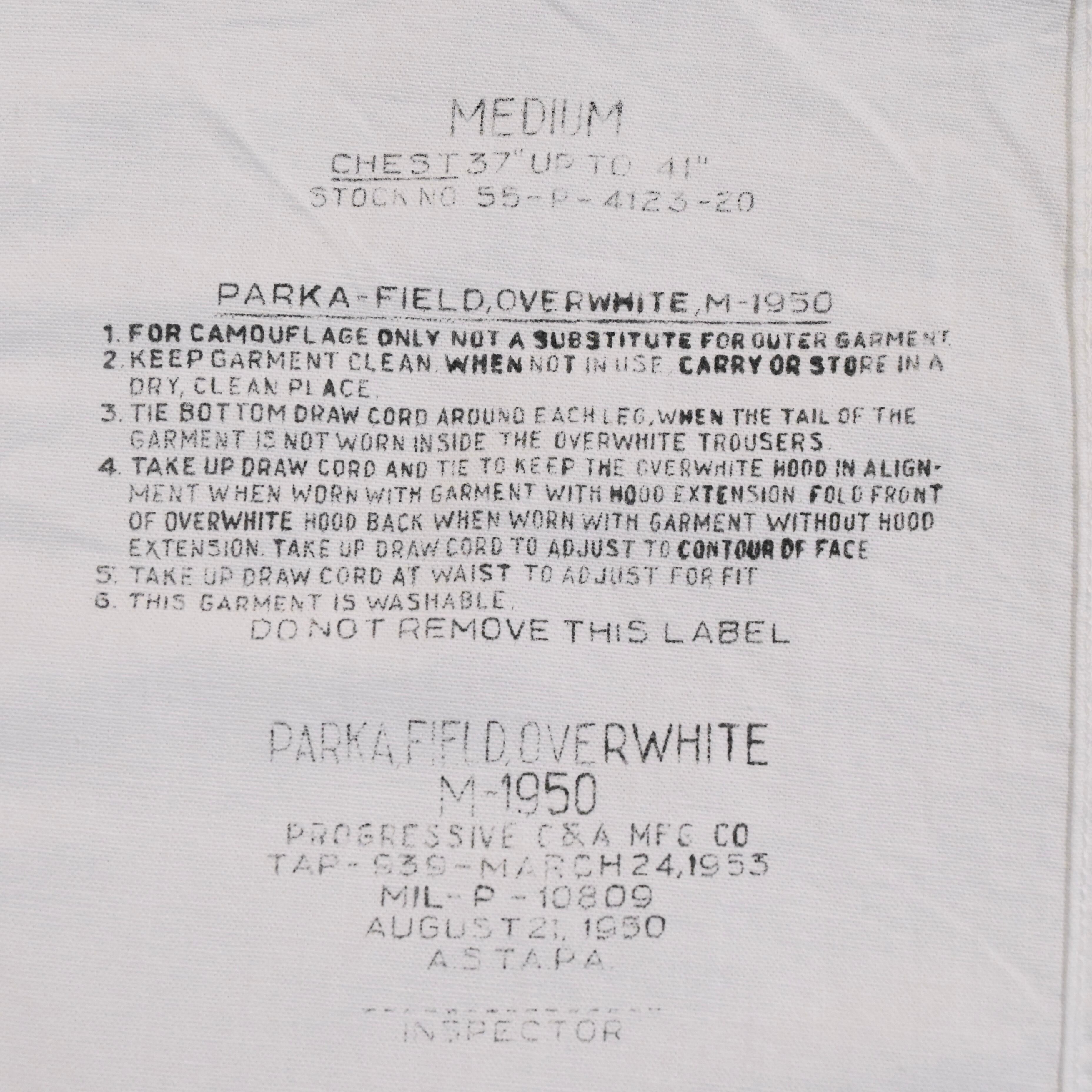 1950年代、アメリカ軍のM-1950スノーパーカーのワンウォッシュです。