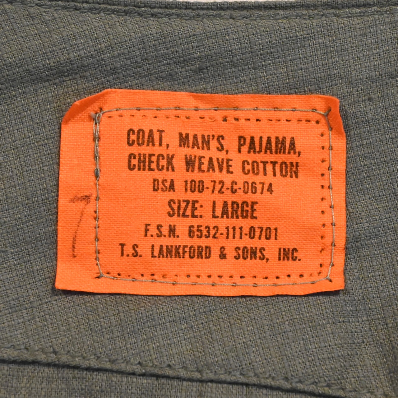 70's Deadstock U.S.Army sleeping shirt overdyed olive アメリカ軍 スリーピングシャツ デッドストック
