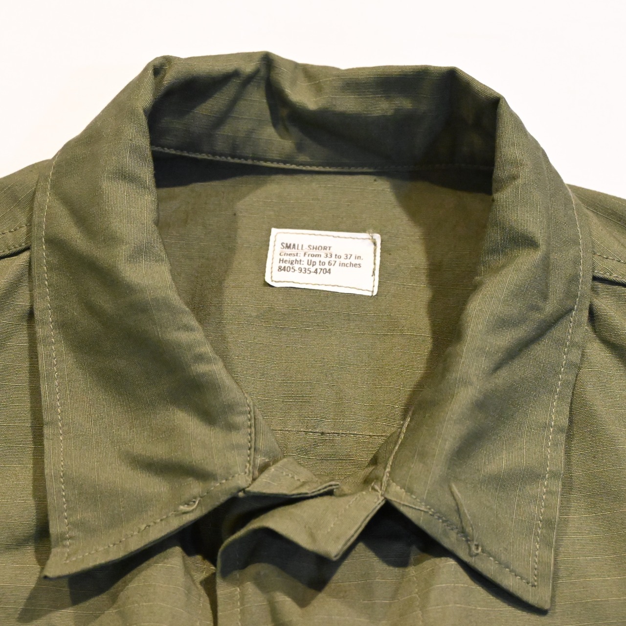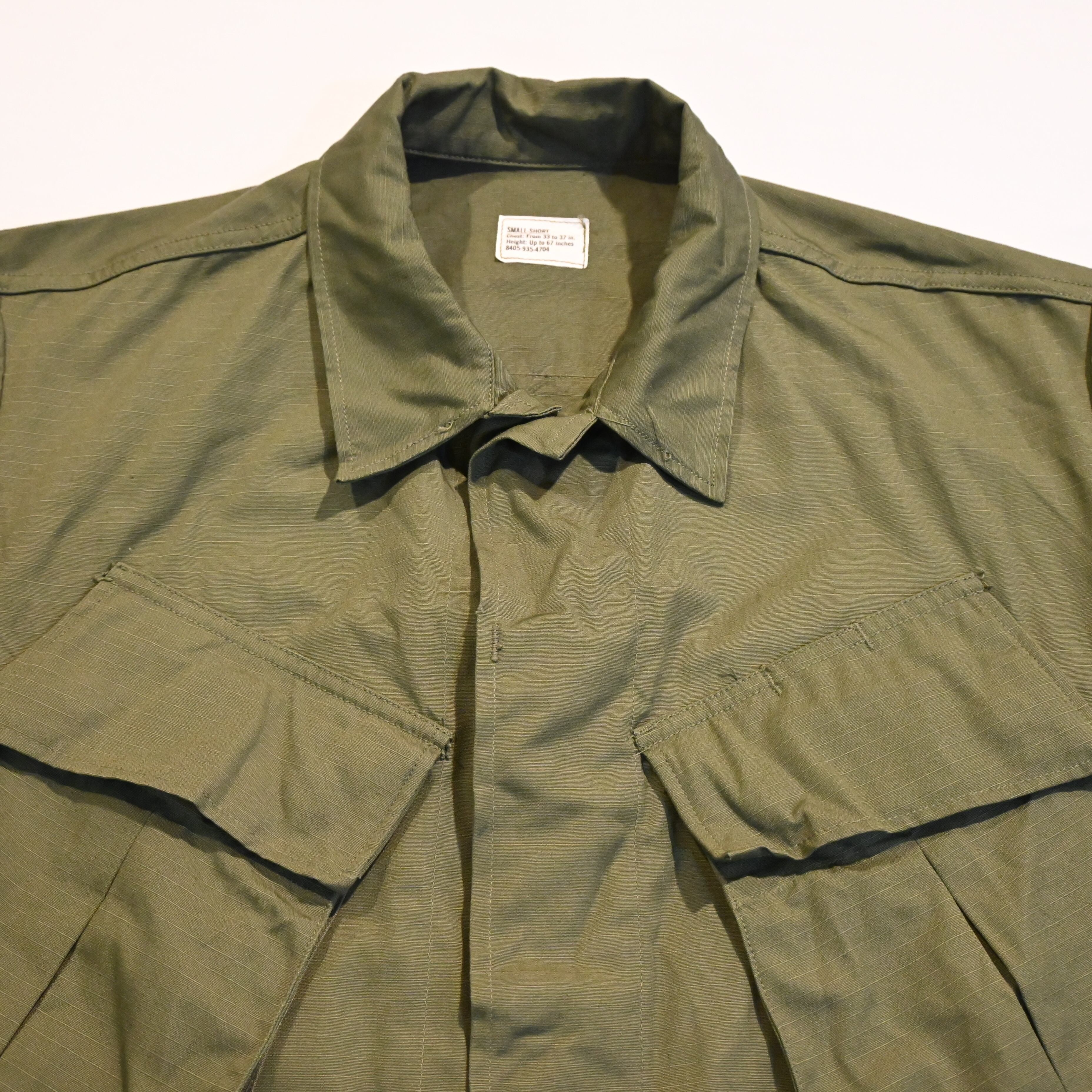 ミリタリーアイテムの中でも人気の高いジャングルファティーグの見つかりにくいショートのサイズです。色残りもよく、程度の良い個体です。