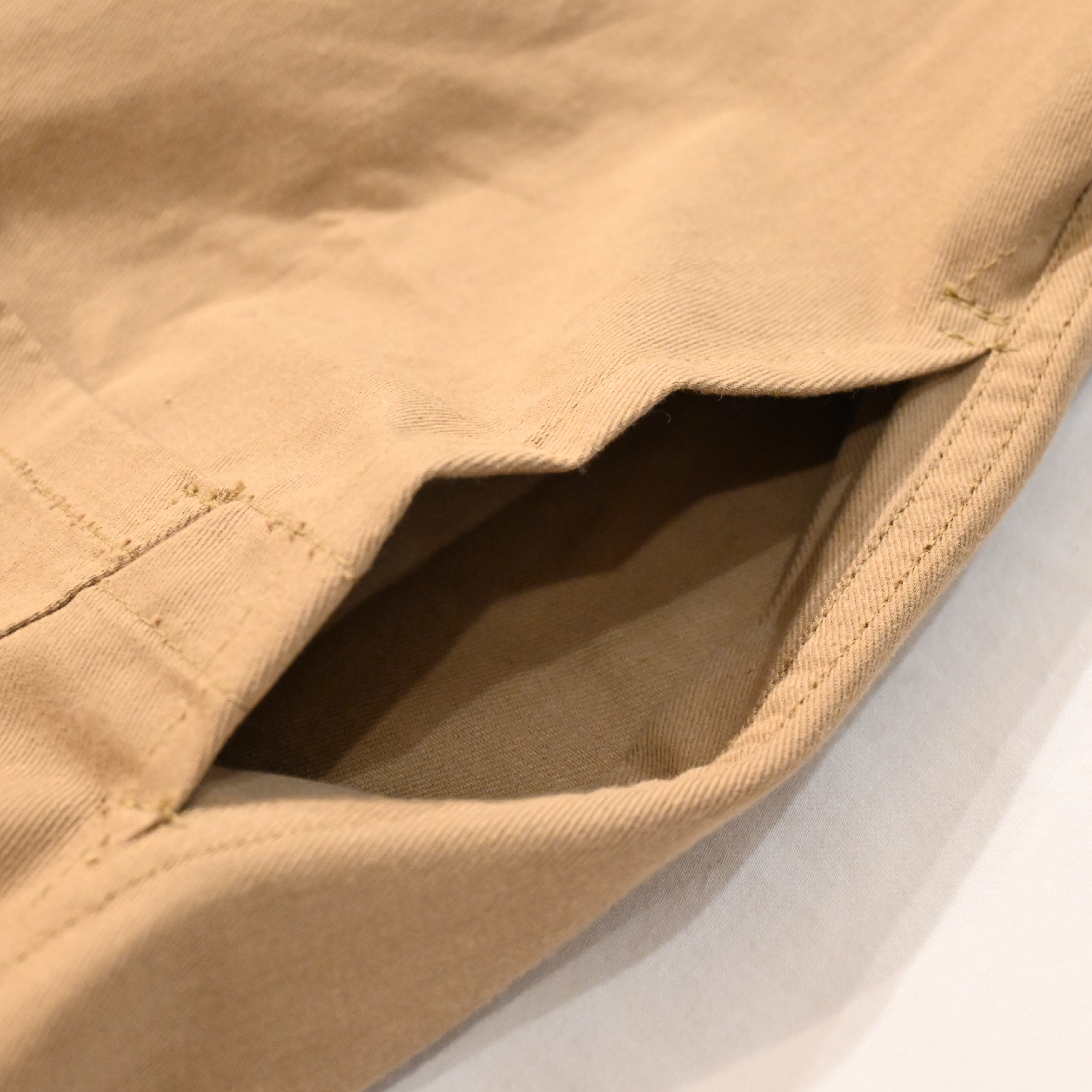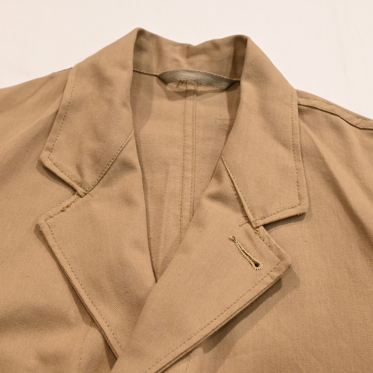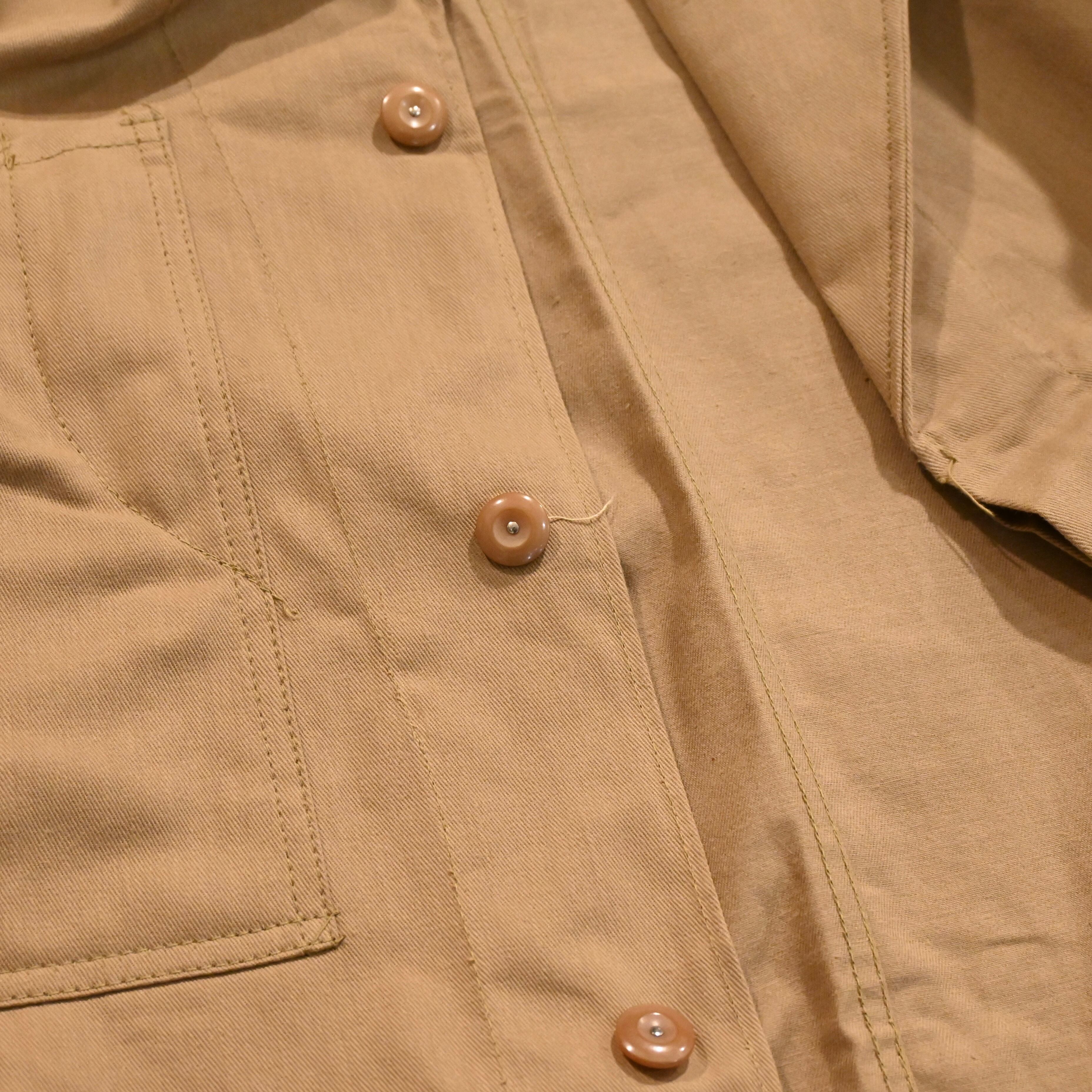 しっかりとしたコットンドリルの生地感で、少し前傾な袖とチェンジボタンのディティールのイギリスらしさが魅力的なアイテムです。
