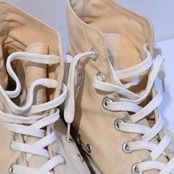 キャップは大きくなる以前の物で、サイドに当て布のステッチが入ります。シューレースはナイロン製です。