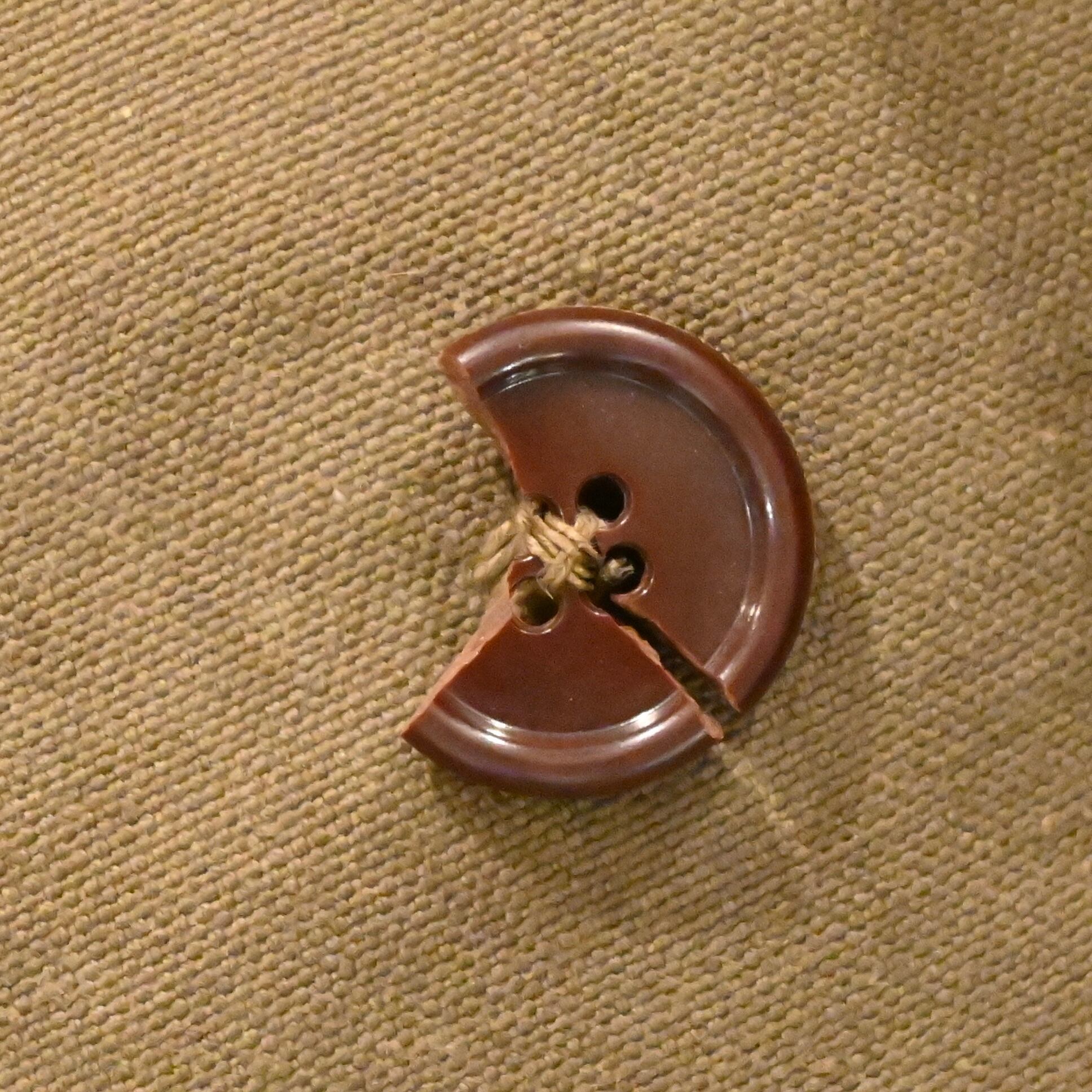 状態:デッドストックですが、首周辺部分に保管時の薄い汚れがあり、内側のライナー用のボタンが1つ割れています。