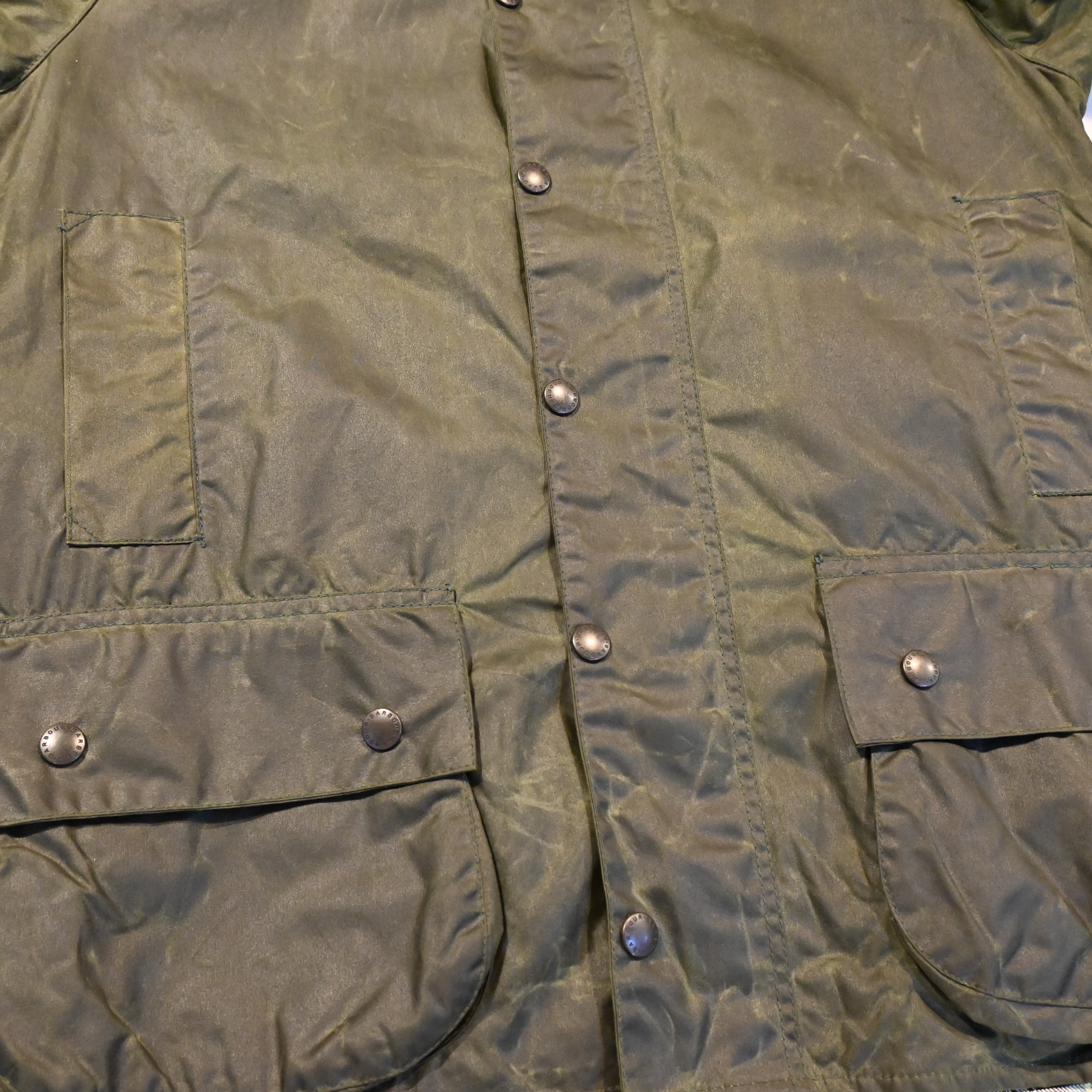 アウトドアユースのアイテムとして比較的コンディションの悪いものが多いオールドのバブアーですが、かなり色も残っており汚れも少ない一枚です。