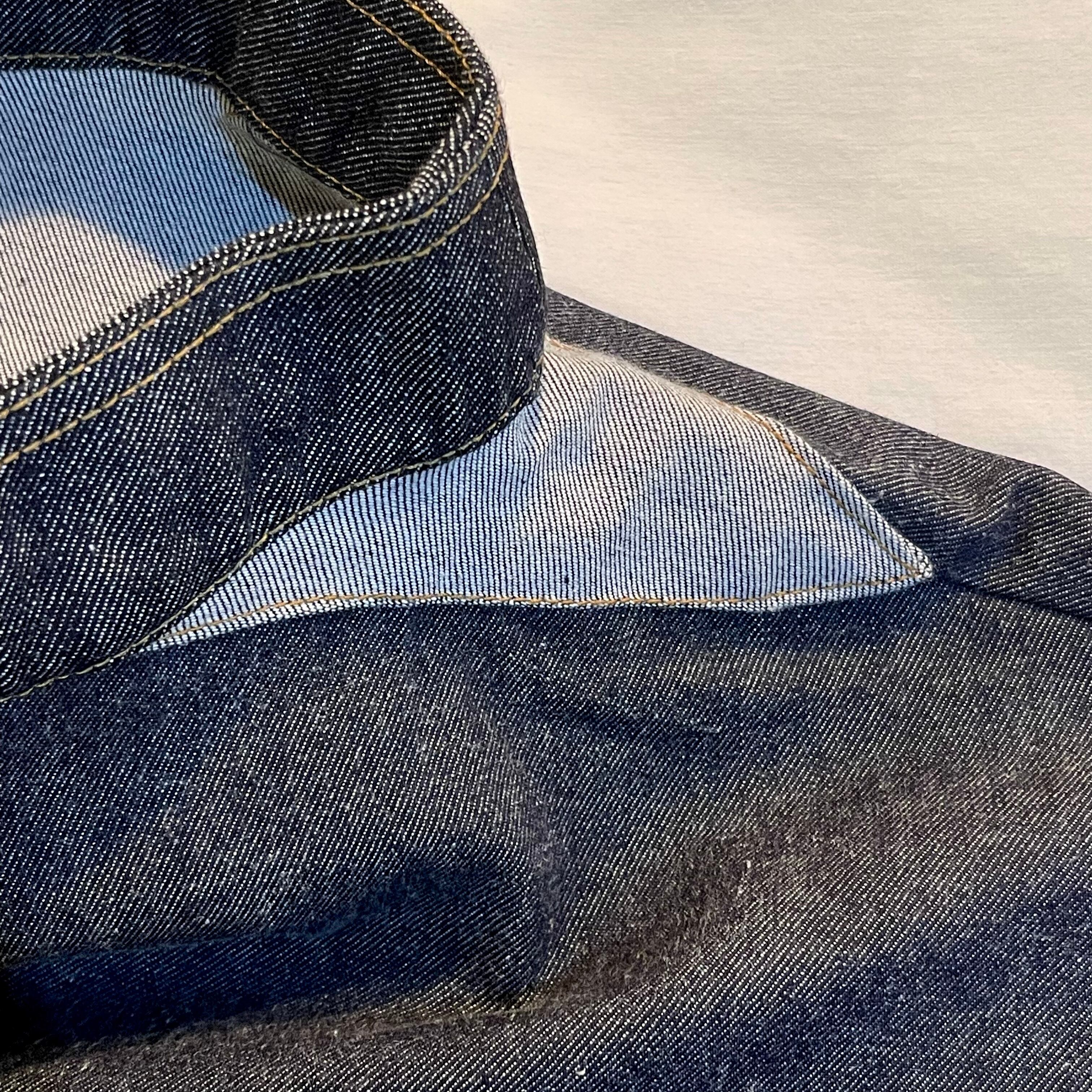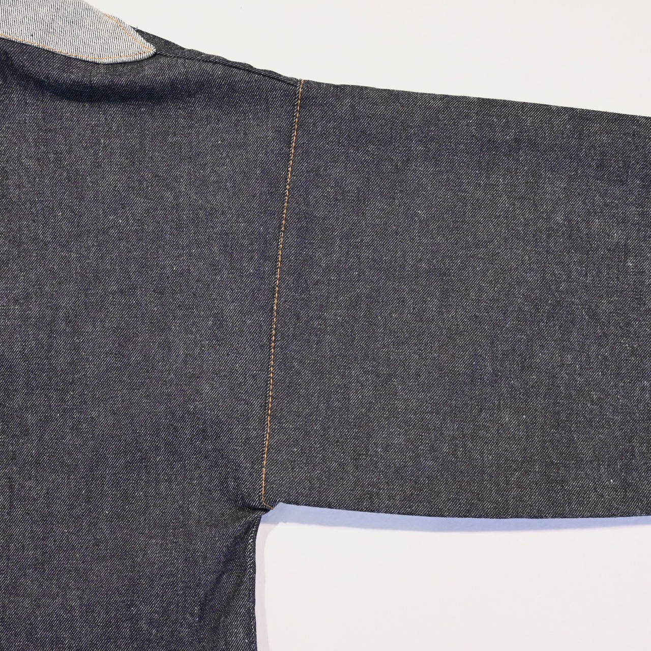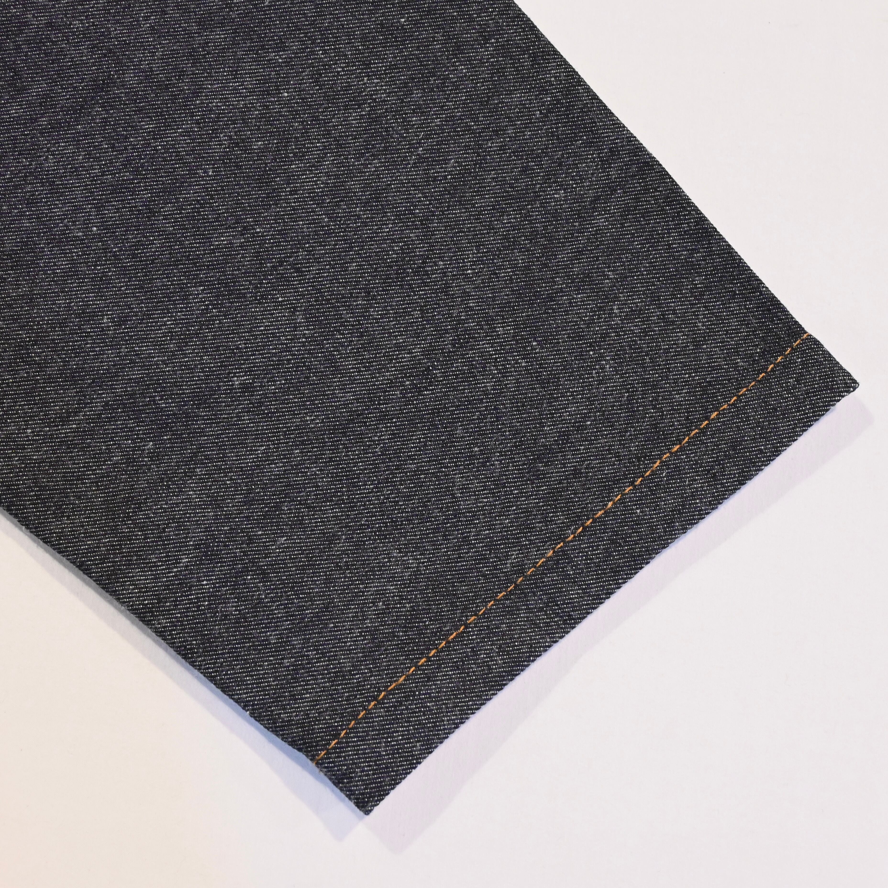 ドリル地の物が多いですがこちらはデニムで作られたもので、直線的でシンプルなデザインとのバランスが魅力的なアイテムです。