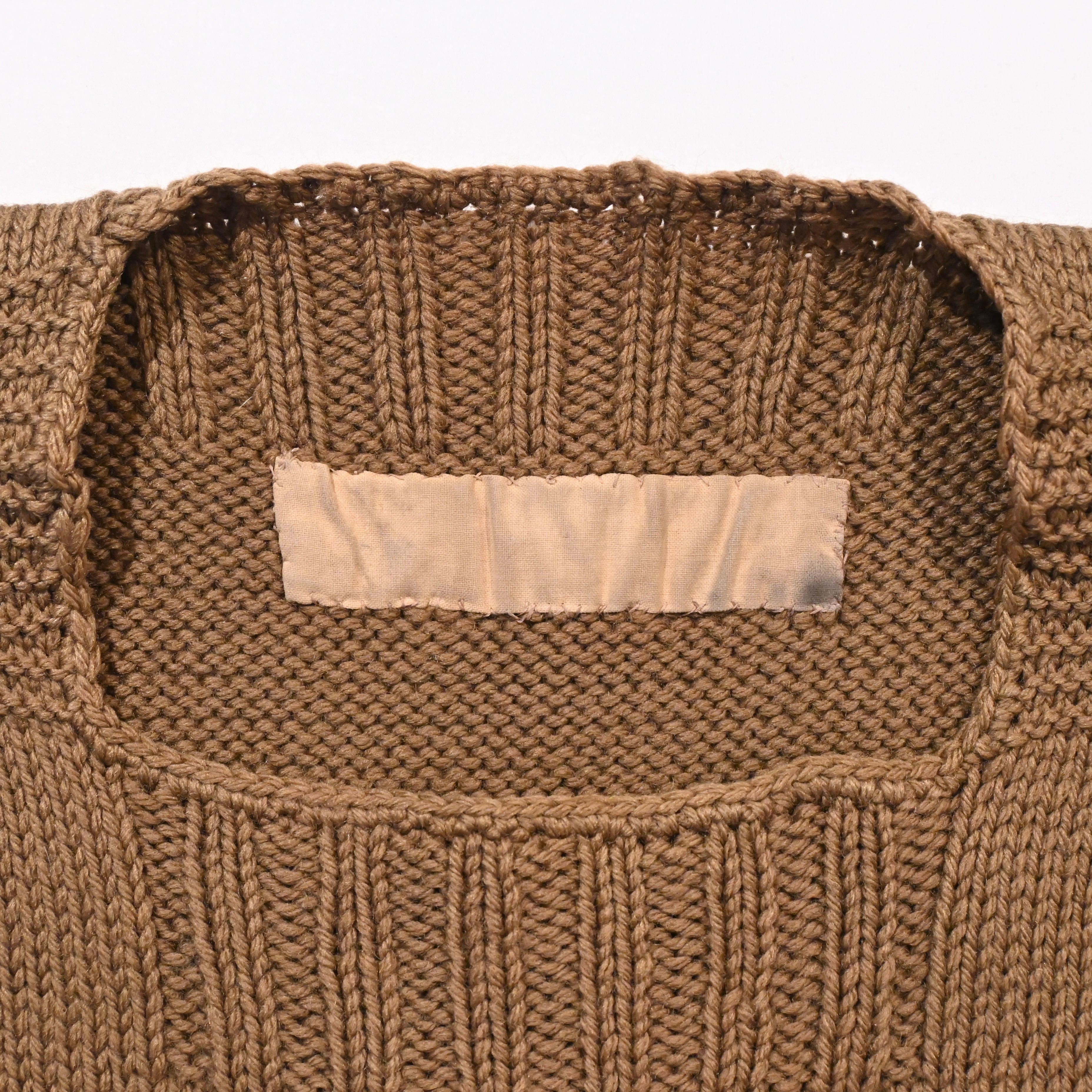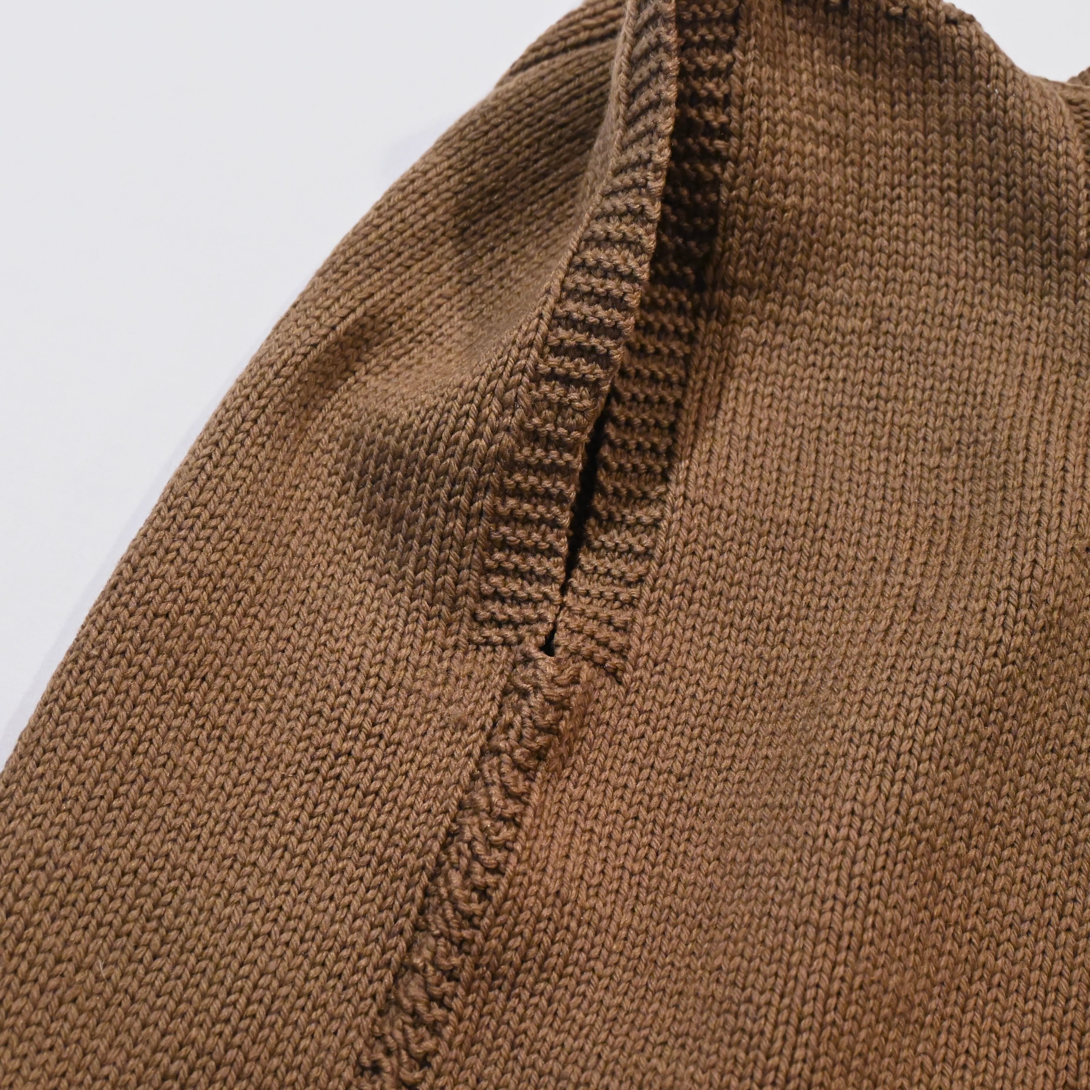 ざっくりとした硬めのウールの生地感とリブ部分の独特な編み方が魅力的なアイテムです。