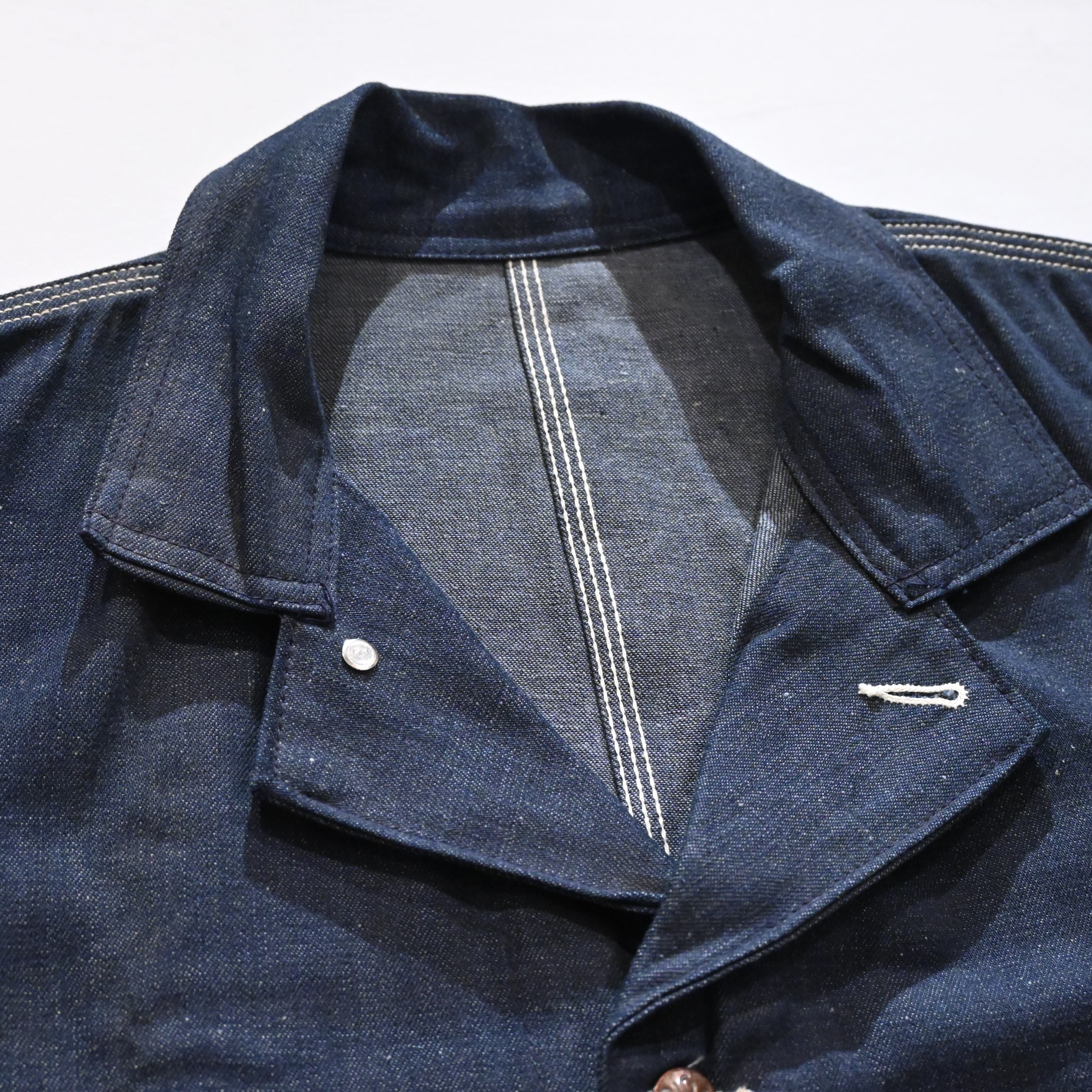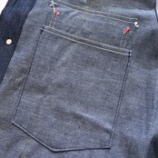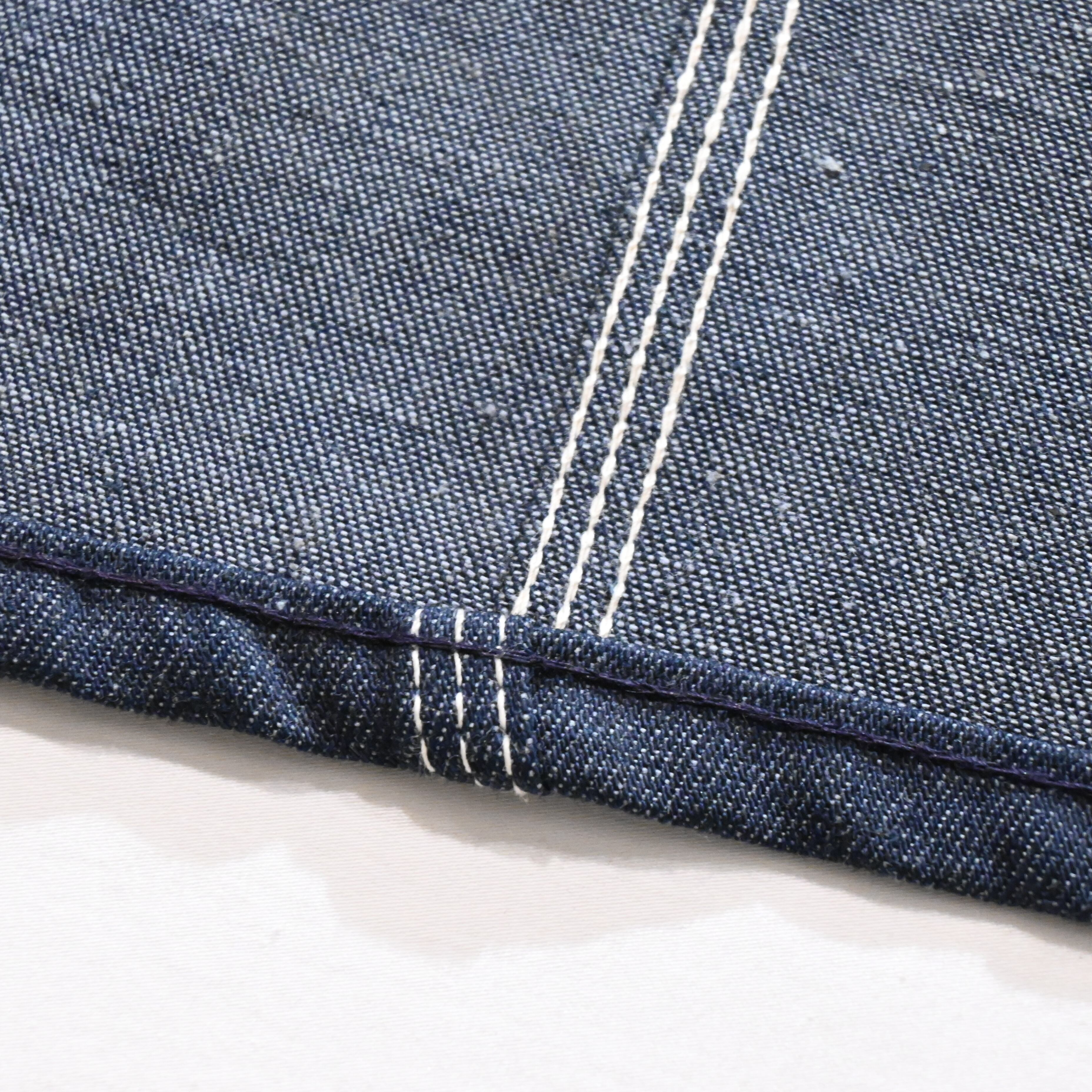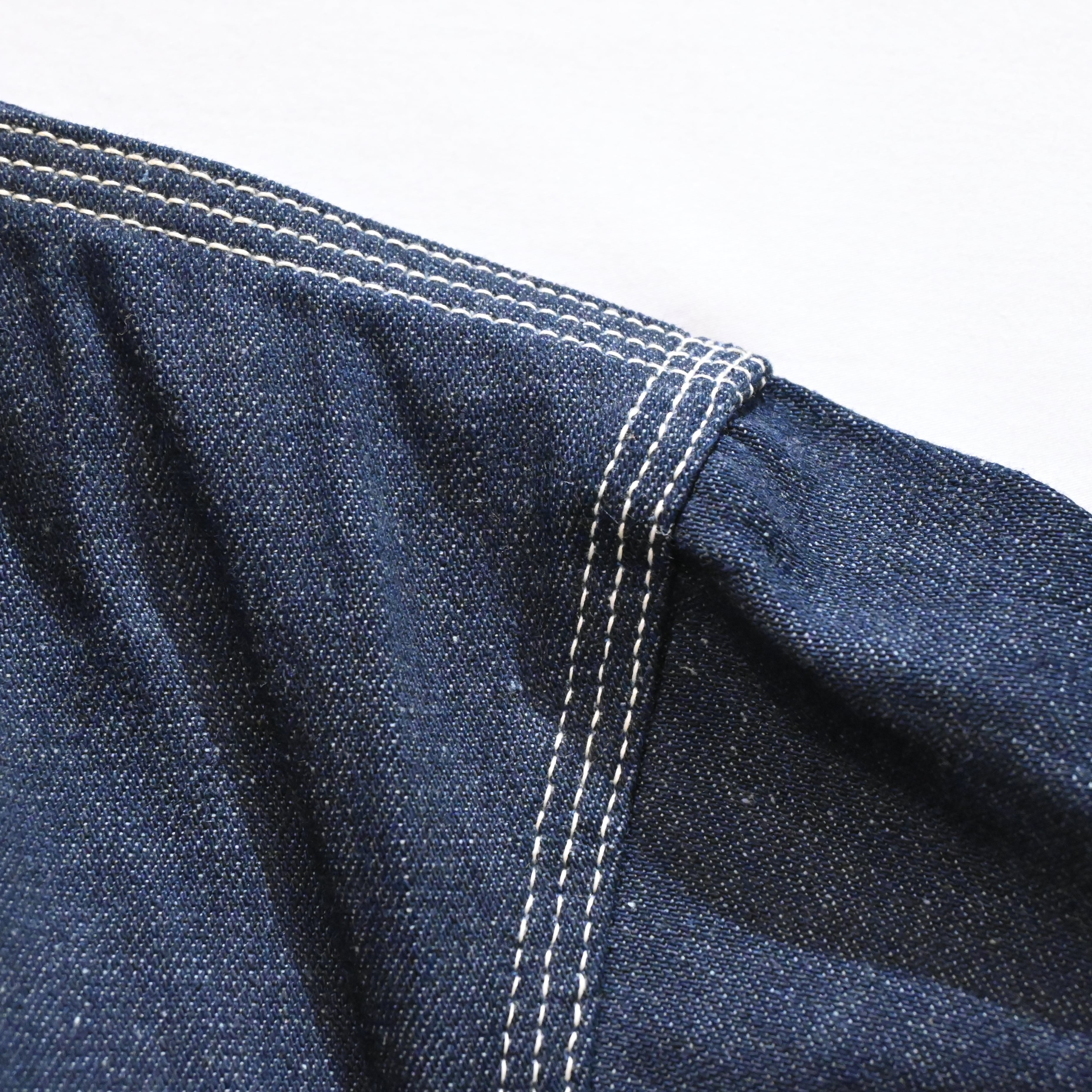 重すぎない程度の薄さと、粗さのある生地感と堅牢なつくりが魅力的なアイテムで、デニムの色落ちを楽しみながら長くお使いいただけます。