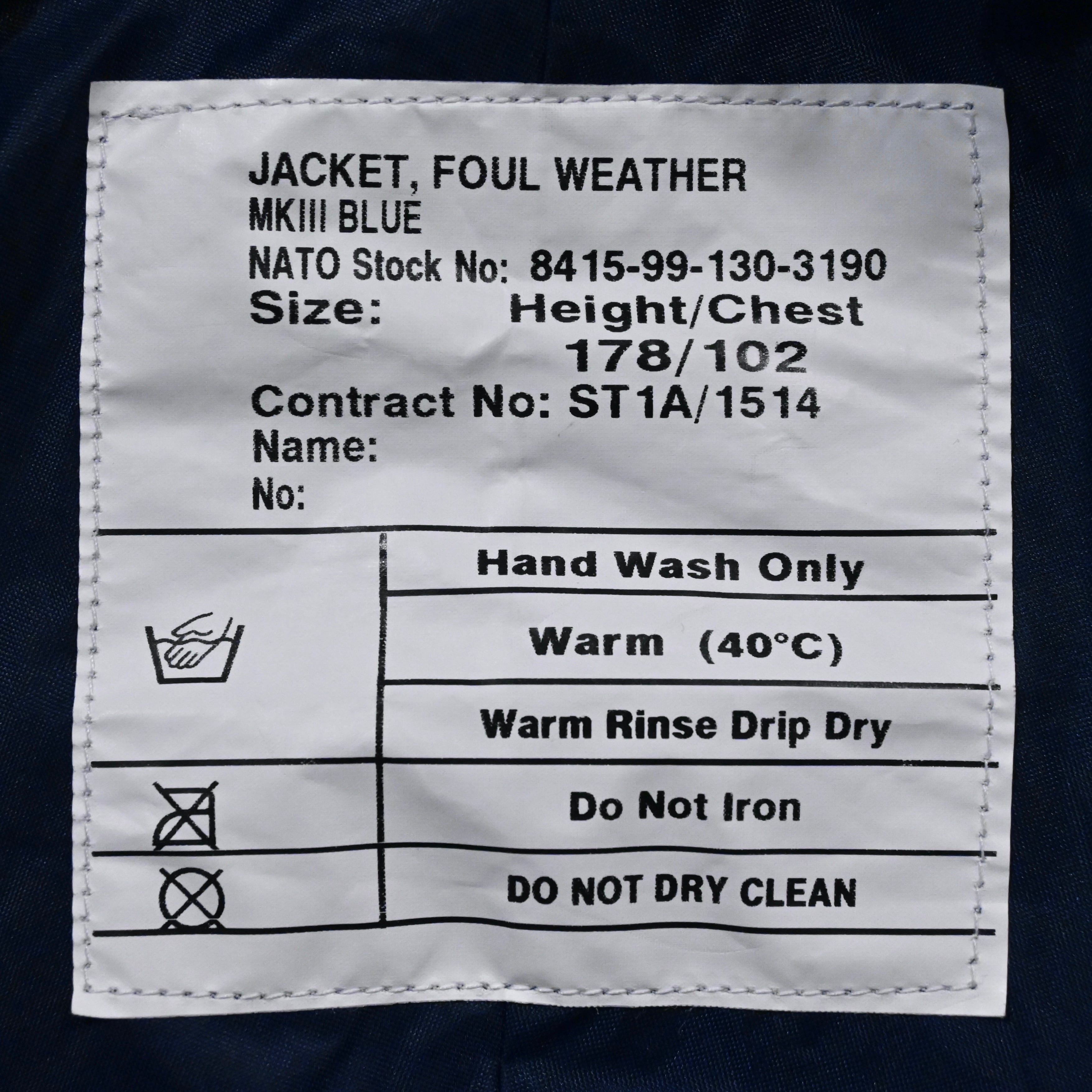 イギリス海軍の悪天候用のアイテムで、ナイロンのオックスフォード生地が使用されています。RAFのMk1とはディティールが変更されています。