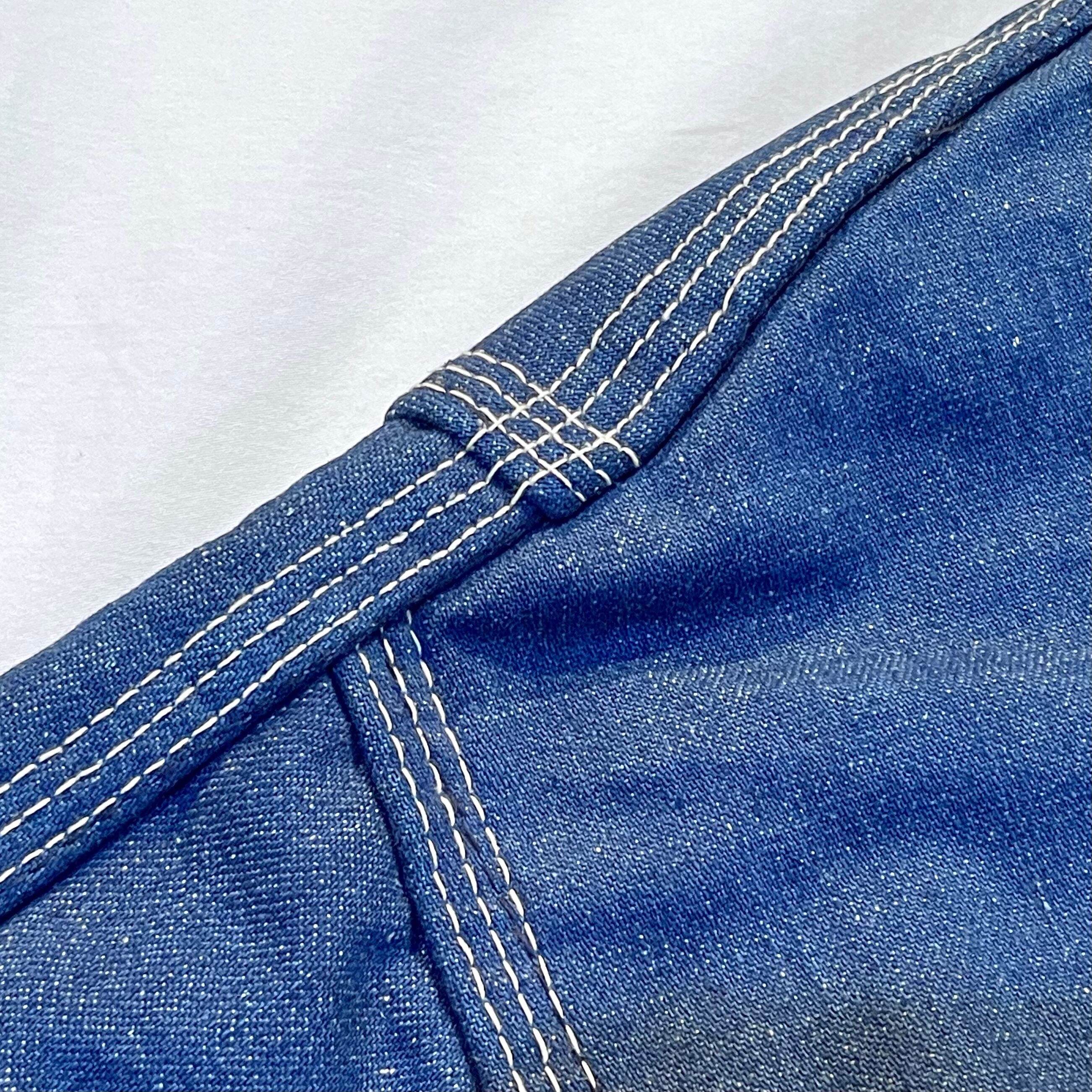 ポケット内側にユニオンチケットがついており、台襟なしでシームはトリプルステッチです。イレギュラー品で、左肩のシームにズレがございます。