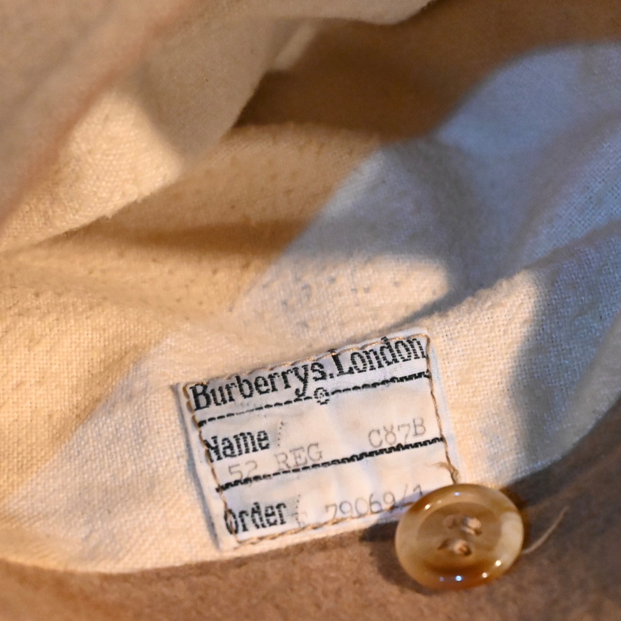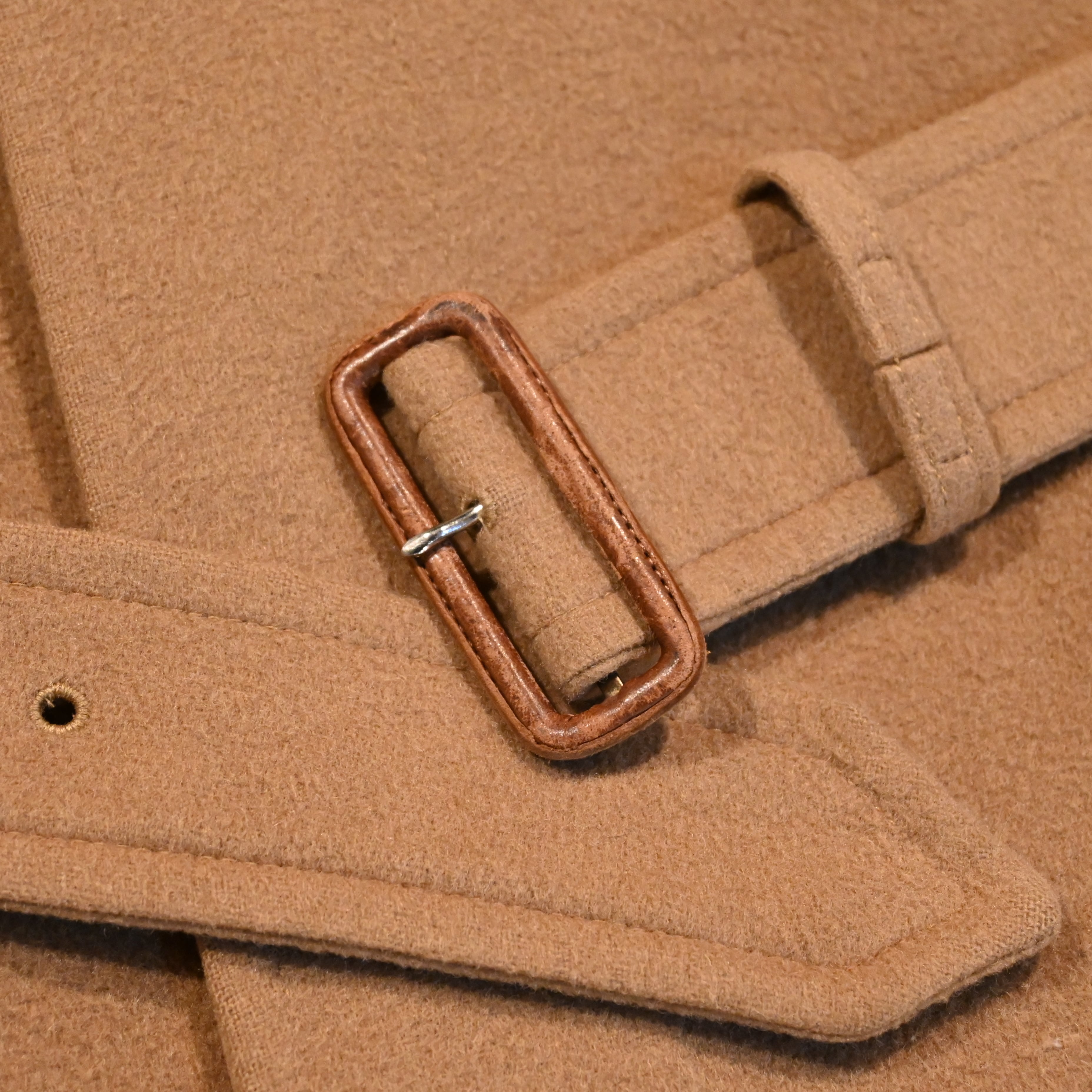 バーバリーでは珍しいウールとアルパカの混紡で、かつシングルでベルト付きのタイプです。ボタンは少し曇りのかかったボタンでポケットは独立しています。