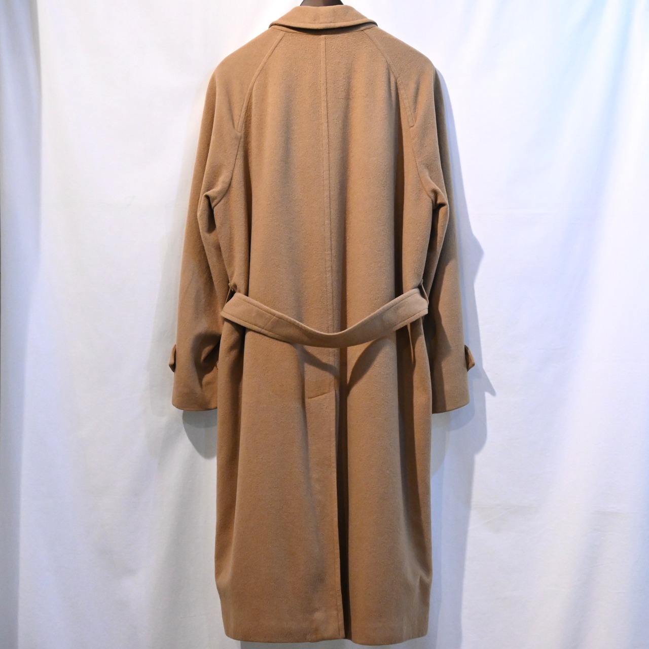 キャメルのカラーと長めの毛足のバランスが魅力的なアイテムです。一般的なバーバリーに比べると肩の張りは気になりにくいシルエットです。
