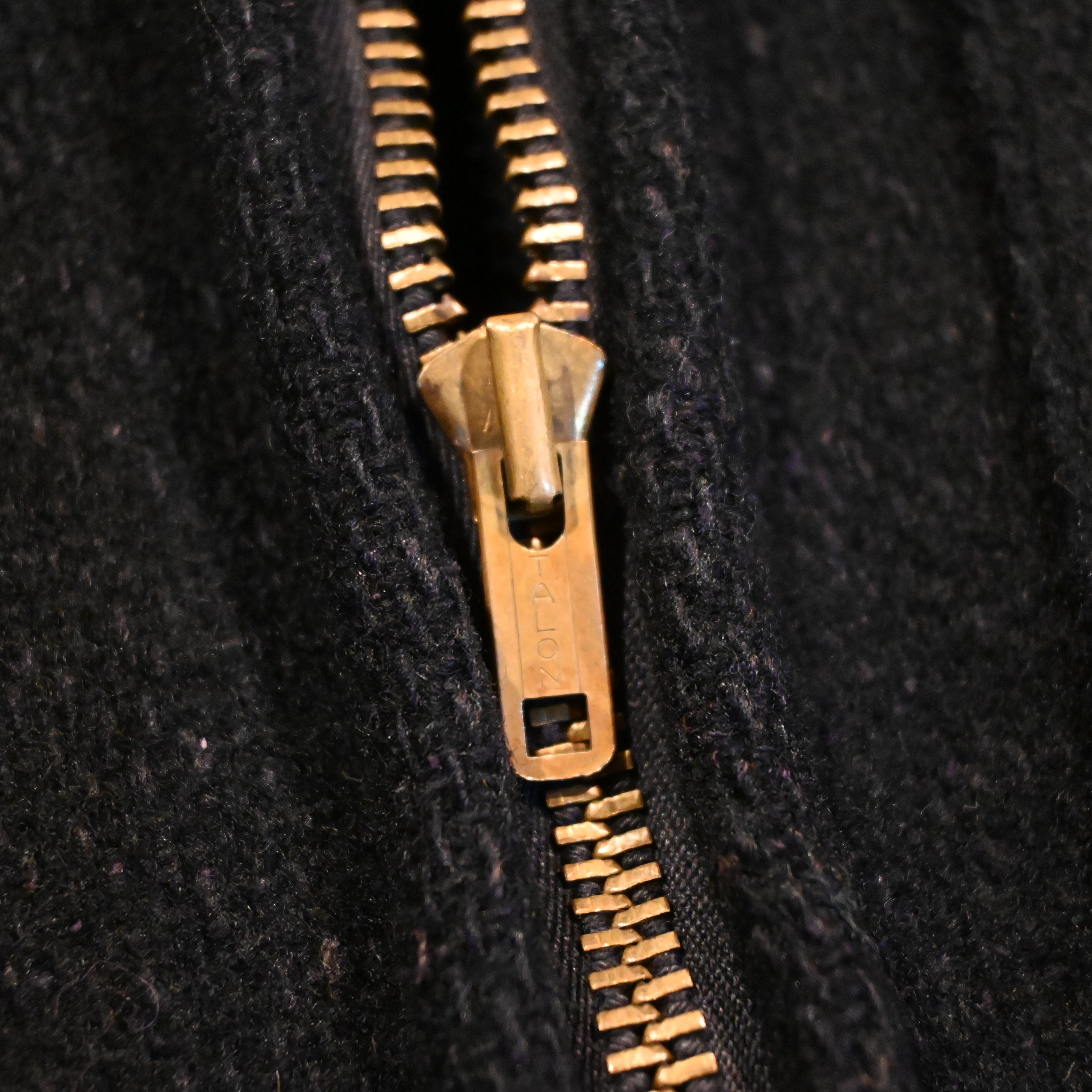 フロントジップはタロン社製で、ポケット無しのタイプです。サイズの表記はありませんが、着用していただきやすい小ぶりなサイズ感です。