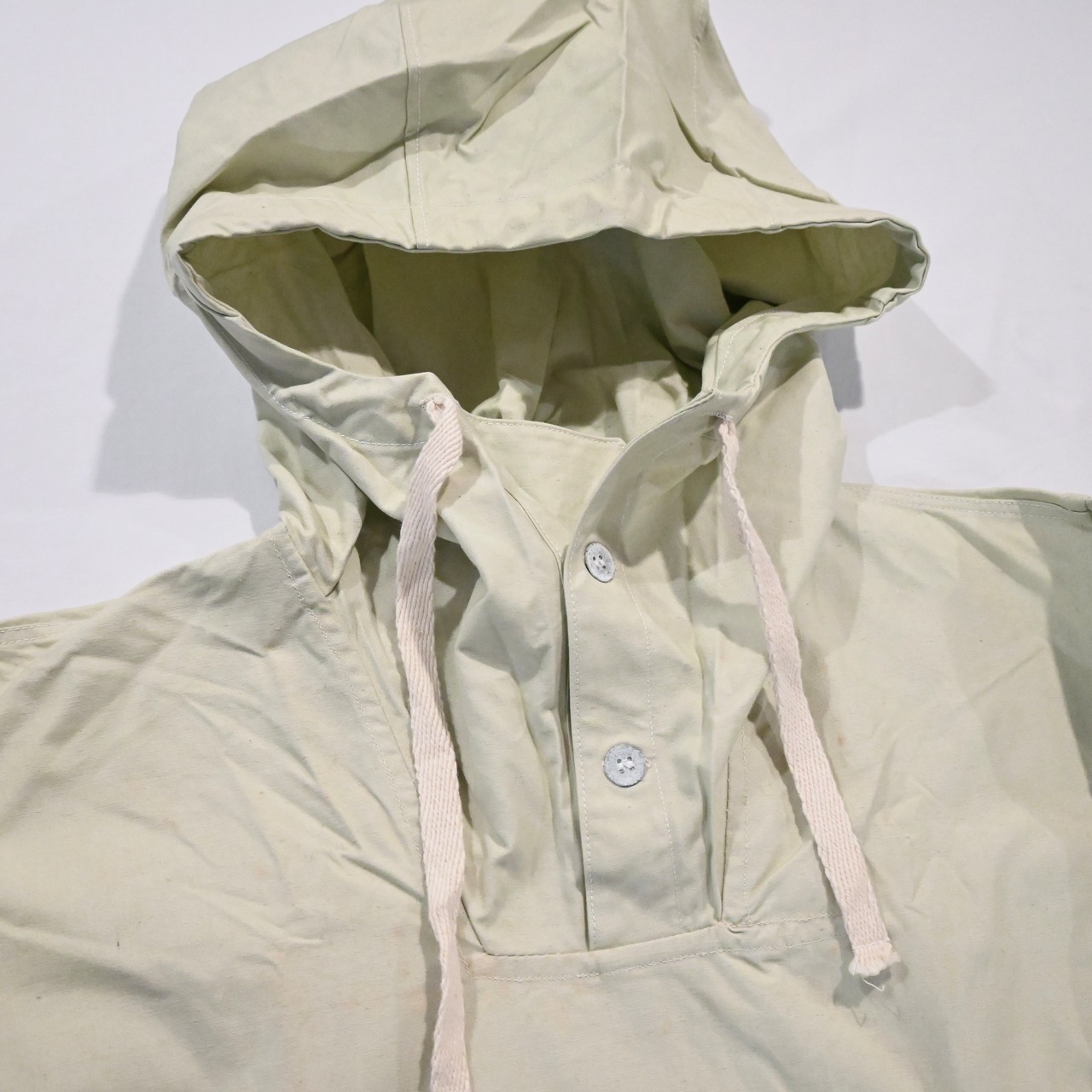60年代に前開きに仕様変更となる以前のアノラック型のスノーパーカーです。スウェーデン軍ならではの3つボタンで横に広いポケットが特徴的なアイテムです。