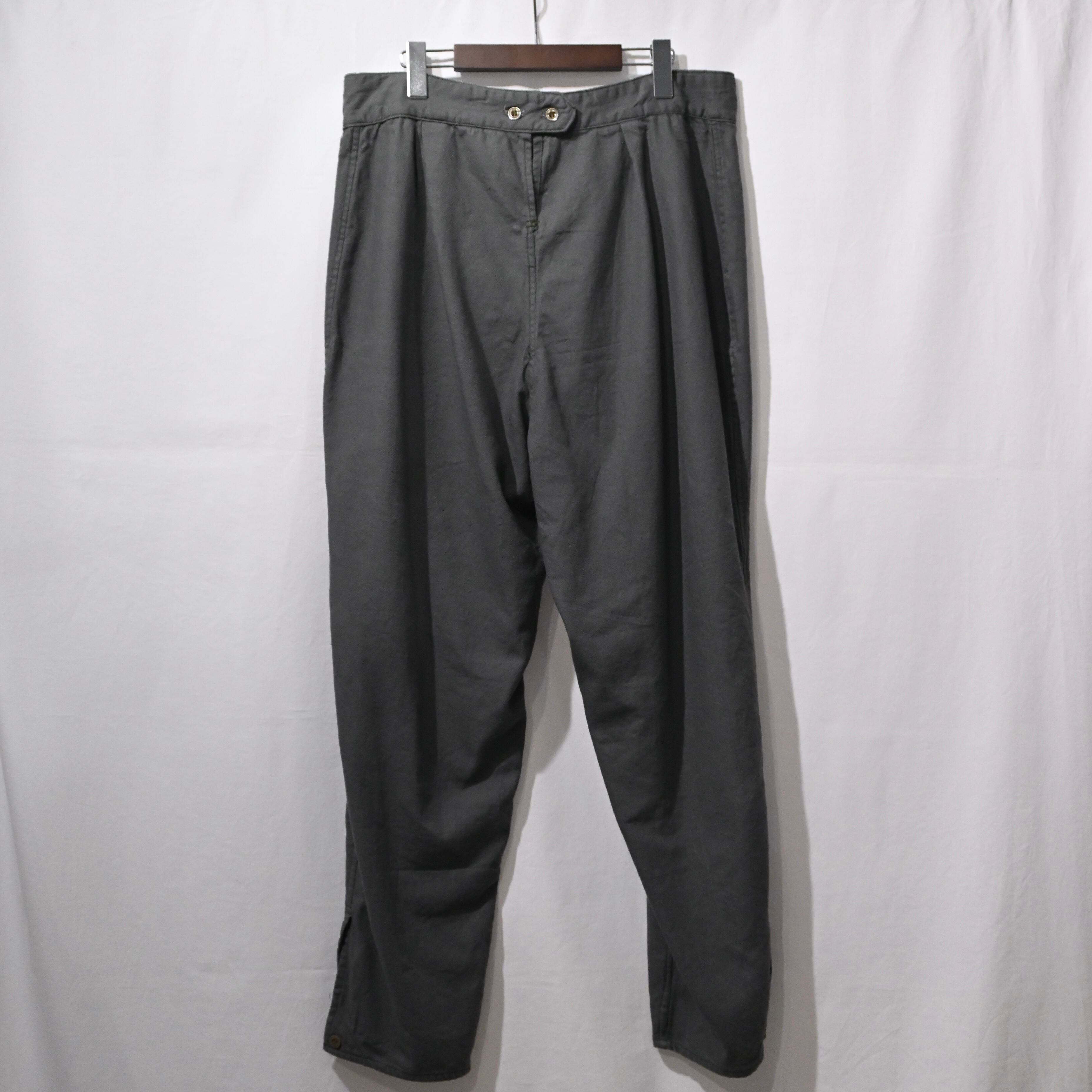 パンツはベルトループがなく、ウエスト調整は基本的にはできません。ボタンの位置を若干ずらすか、サスペンダーにてご対応ください。