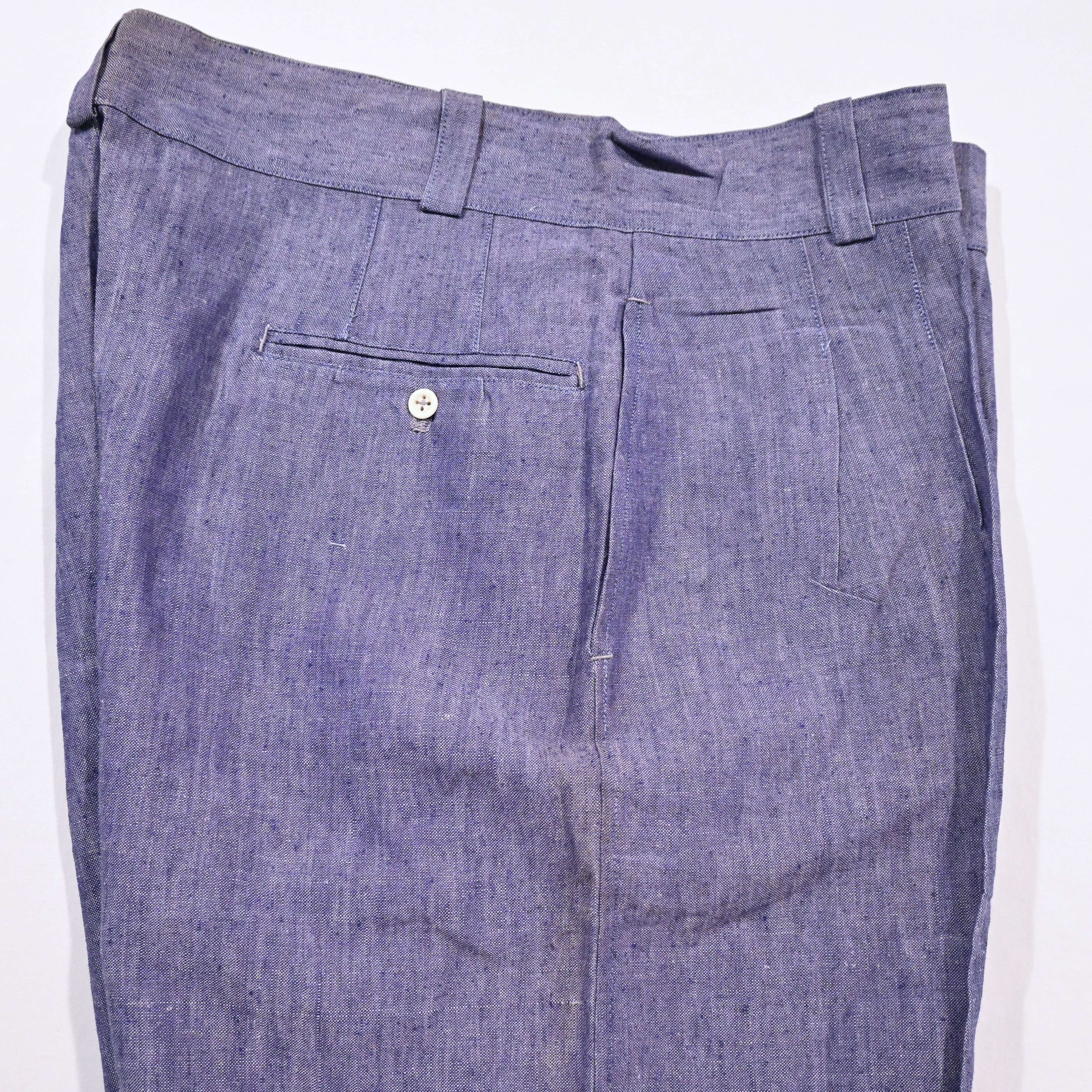 太めの綺麗なシルエットに対し、ネップのような粗さのある硬めのリネン素材のバランスがフランス軍らしく、かなり雰囲気のあるアイテムです。