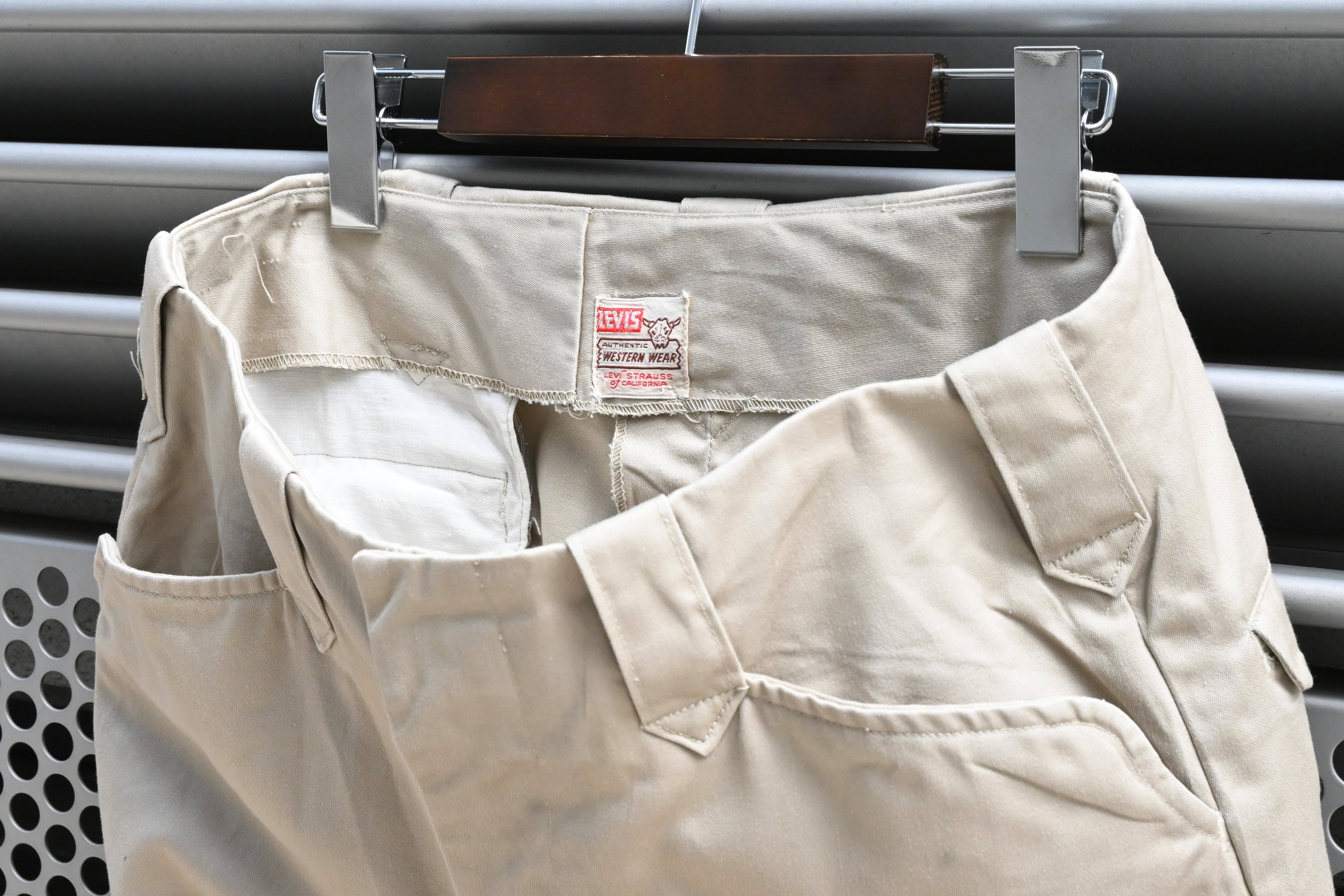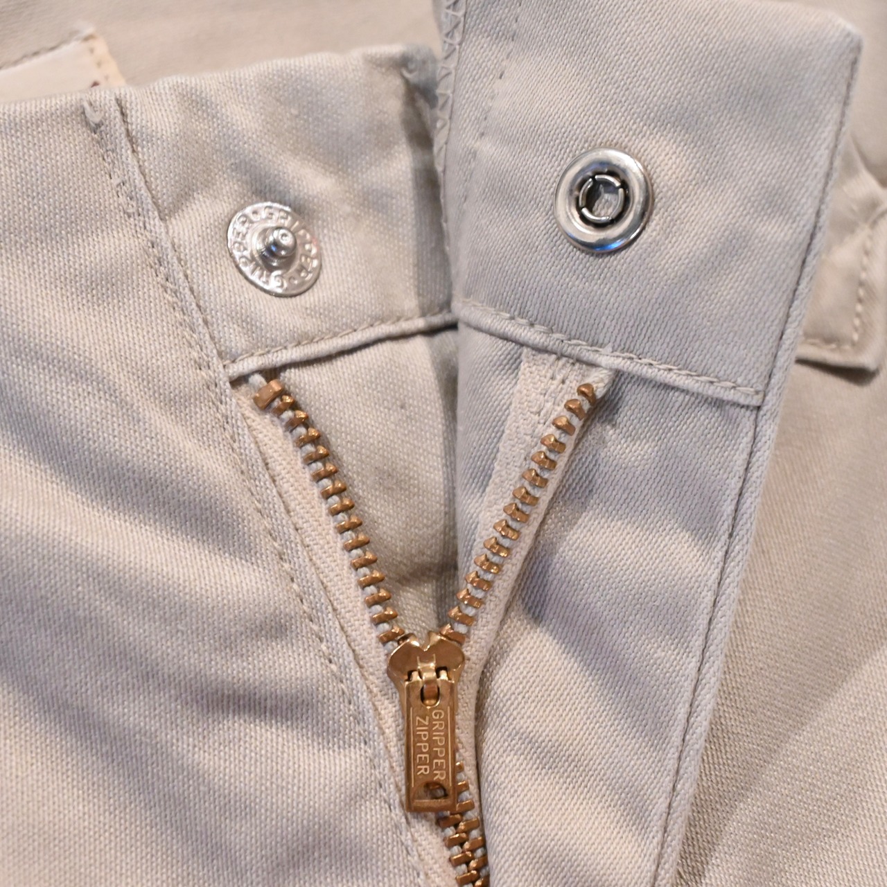 フロントジップ、フロントボタンはグリッパー社のものが使用されています。裾は当時直されています。